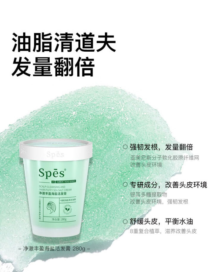 诗裴丝净澈丰盈海盐洗头膏控油绿色款280g 去屑控油净澈丰盈洗头膏持久滋润蓬松