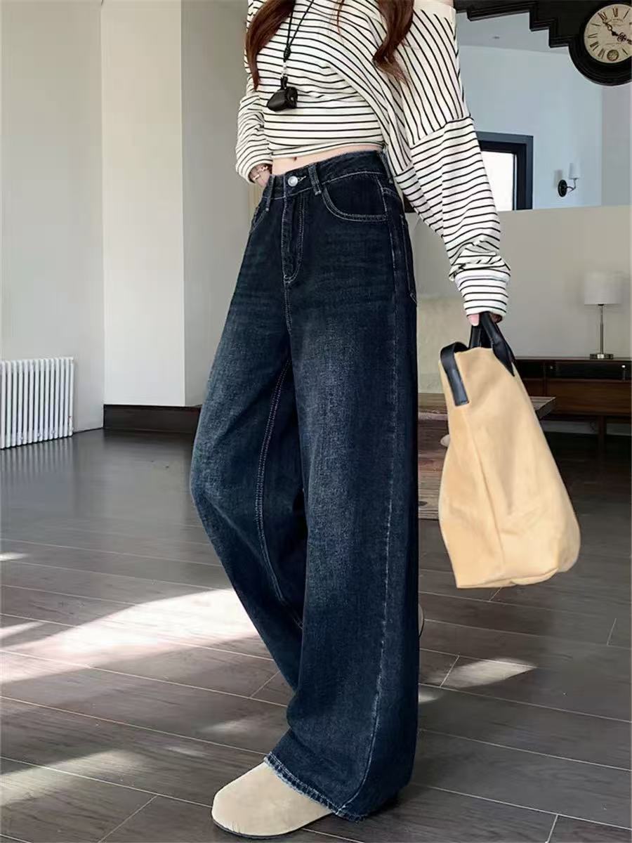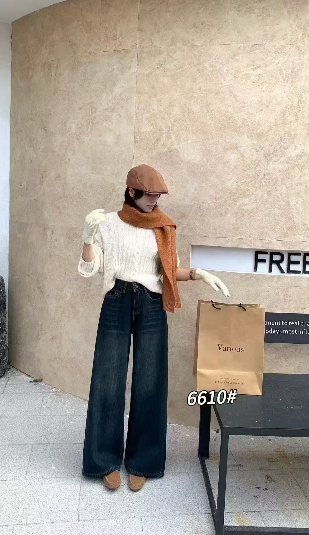 🔥🔥【2025爆款牛仔】软料加绒厚笑脸款~86205/6610复合一体360立体弹力阔腿裤直筒裤-喜出