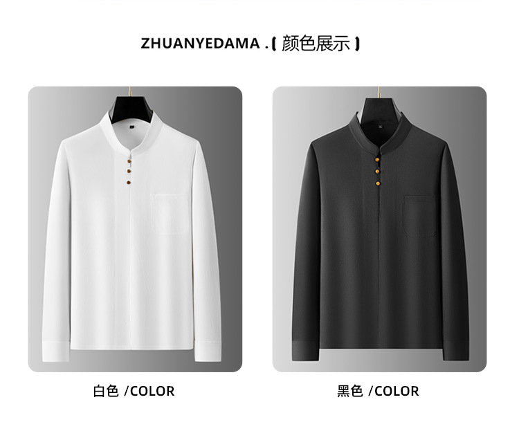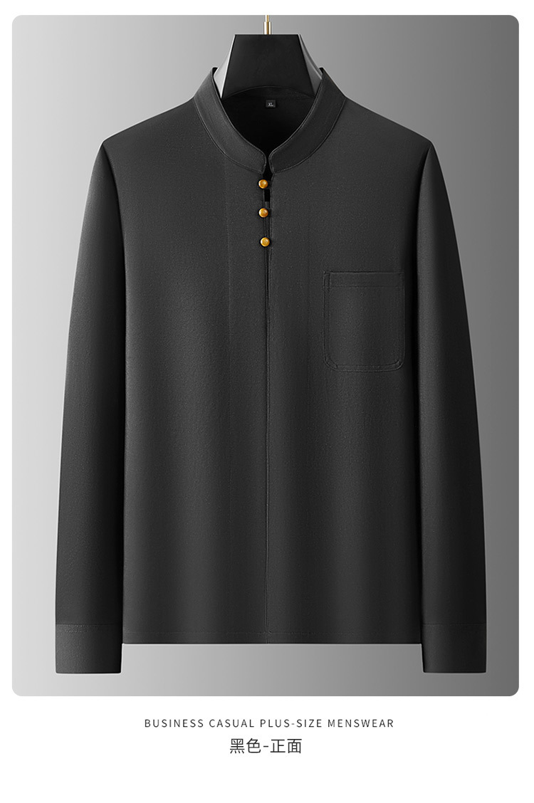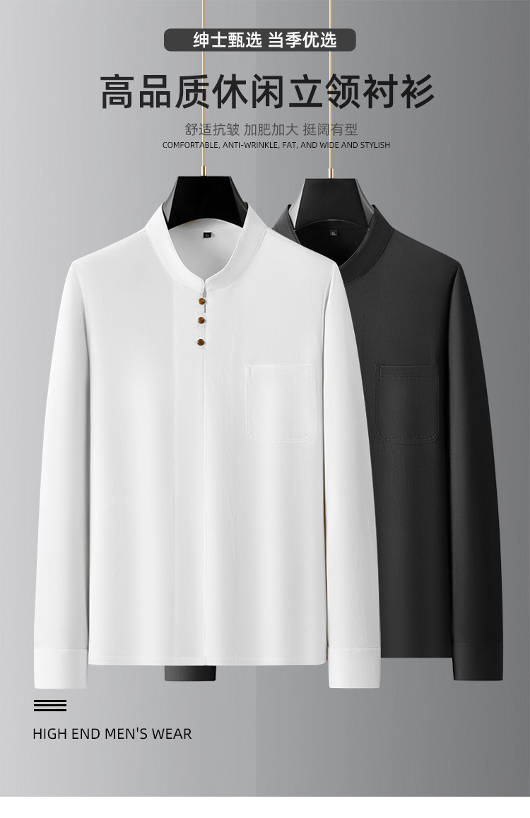 【DDA】大依优型大码男装立领衬衫加肥加大码时尚休闲立领盘扣长袖衬衫男