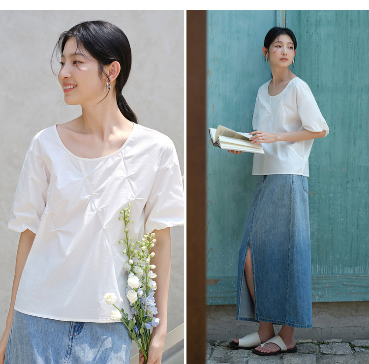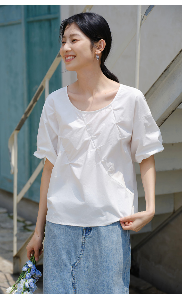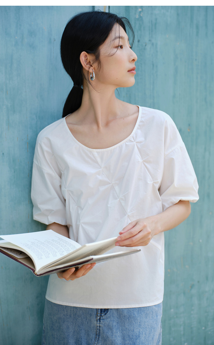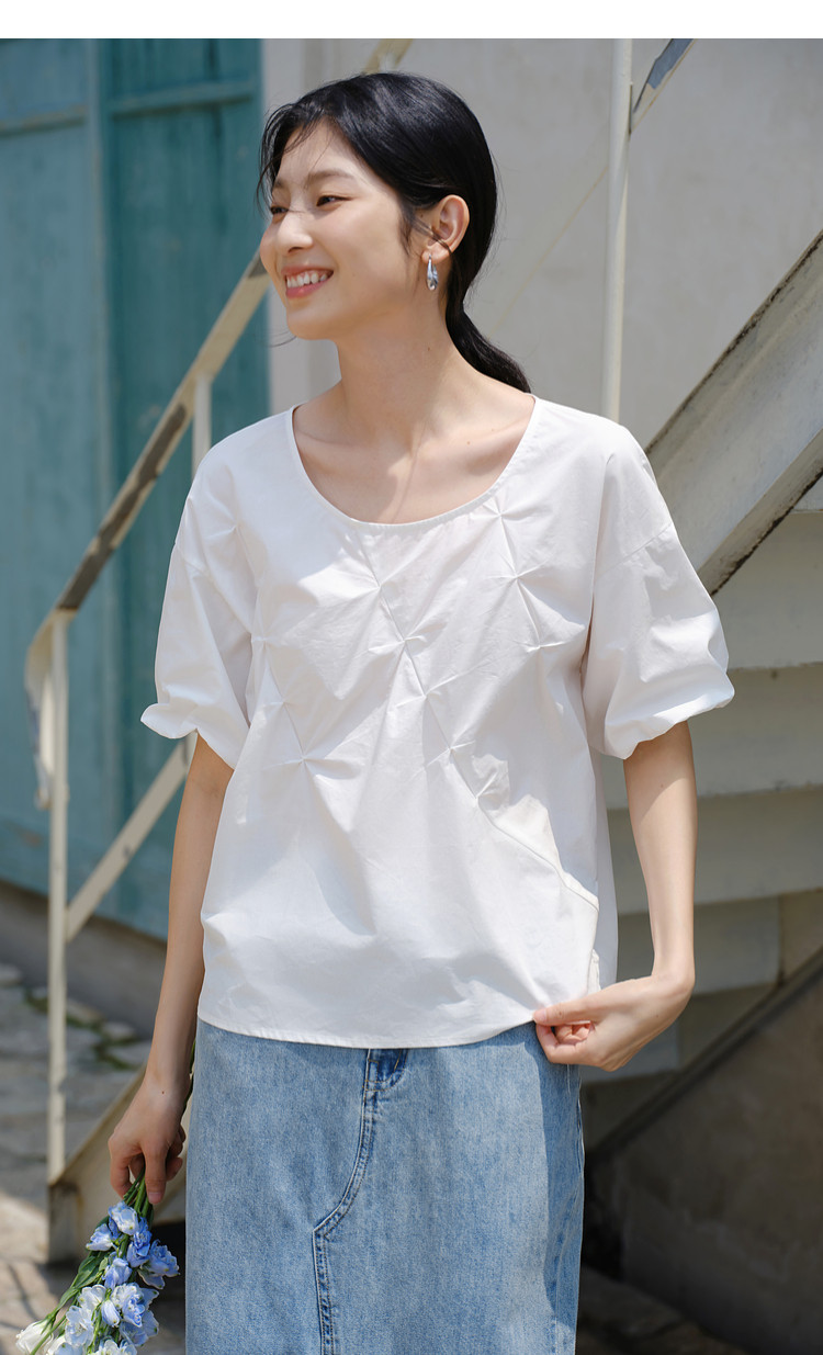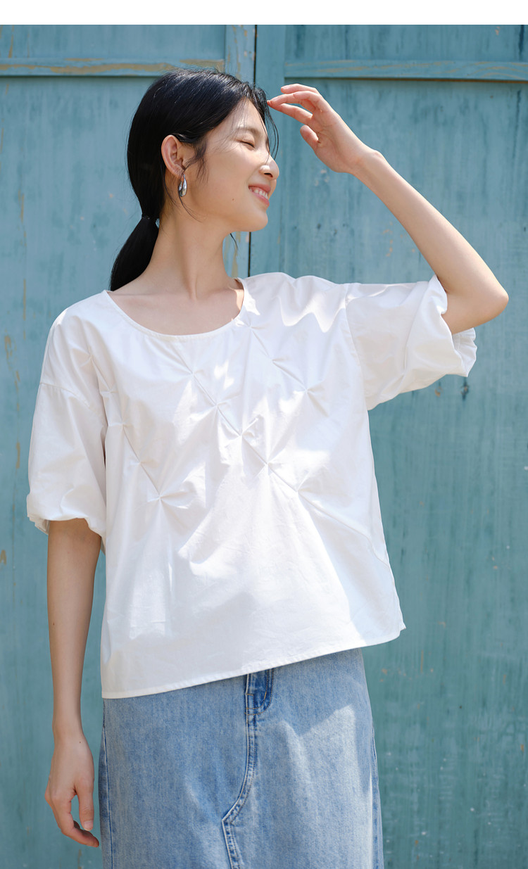 【亦谷品牌】高品质捏褶工艺100%棉小衫-喜出