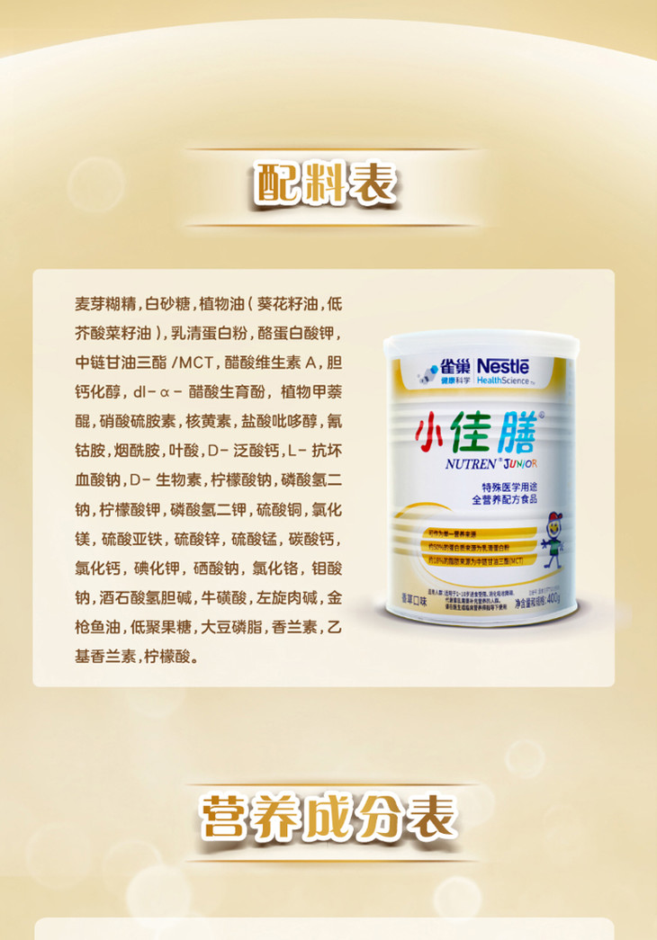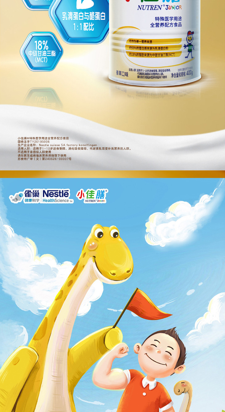 雀巢小佳膳 儿童全营养配方奶粉400g 挑食偏食儿童1-10岁蛋白粉维生素奶粉