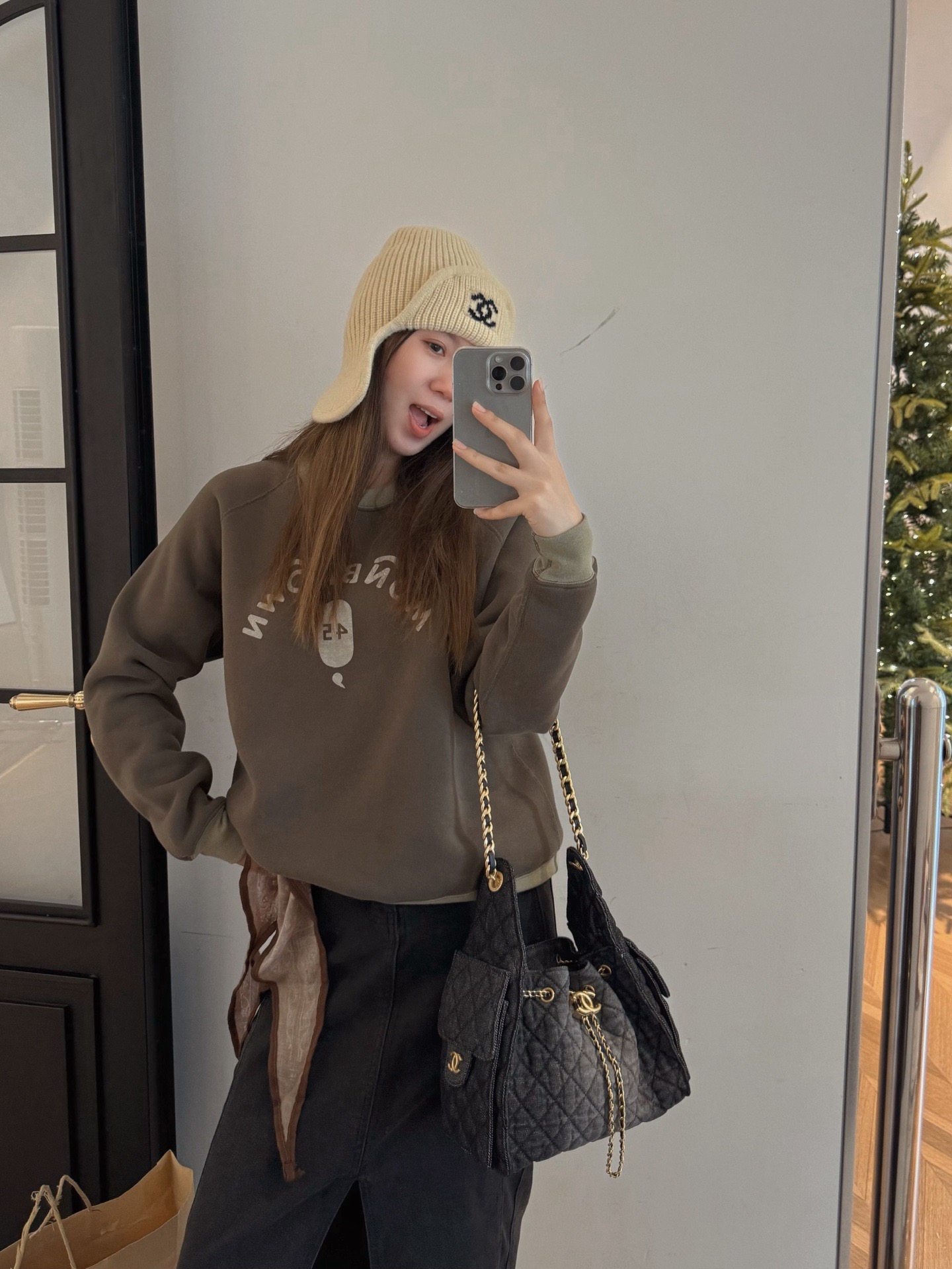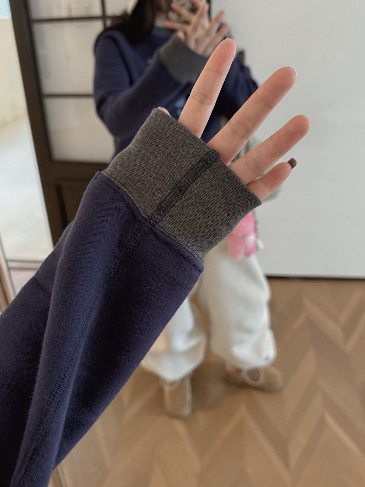 肉眼可见厚墩墩的哈哈哈!属于加厚但不压身的加绒卫衣哦!