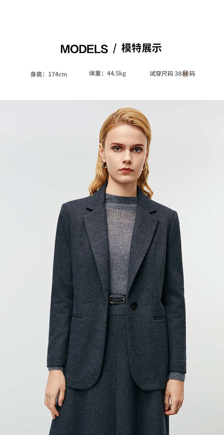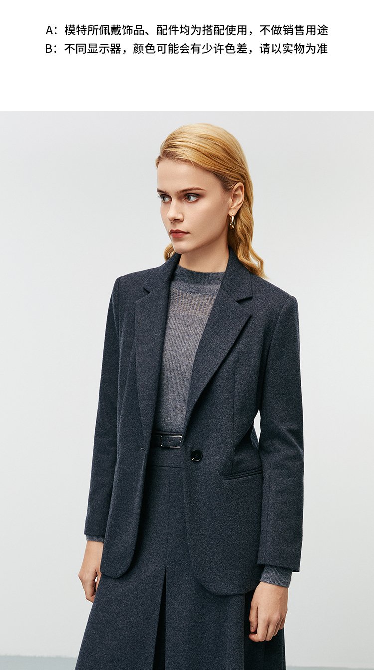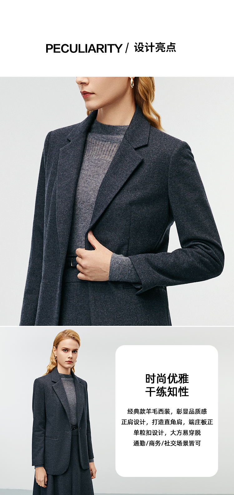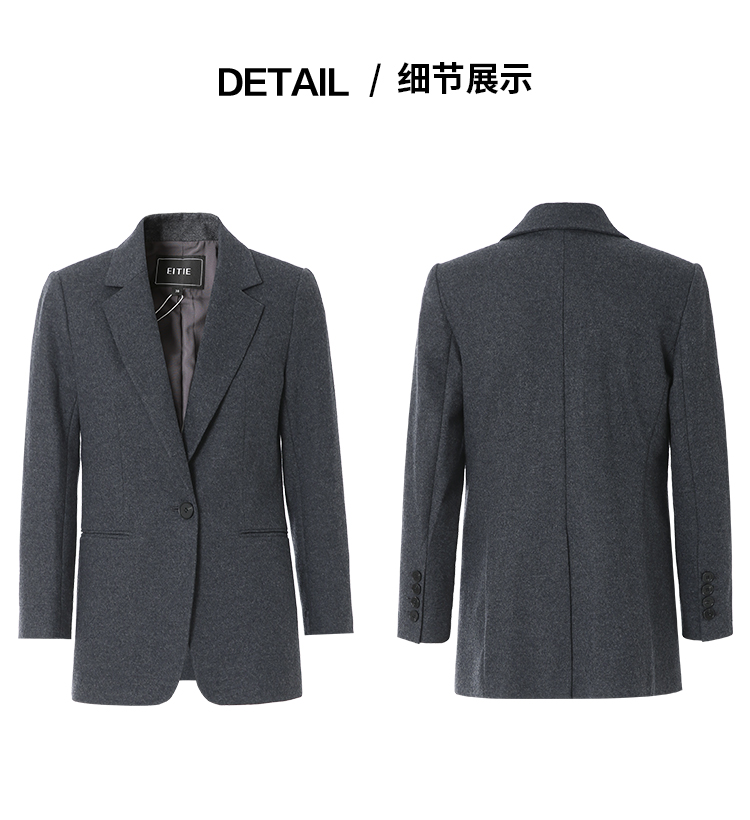 EITIE爱特爱气质通勤修身显瘦深灰色干练毛呢西装外套冬季新款8003704