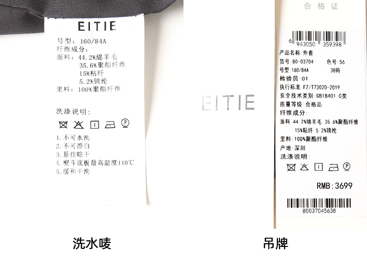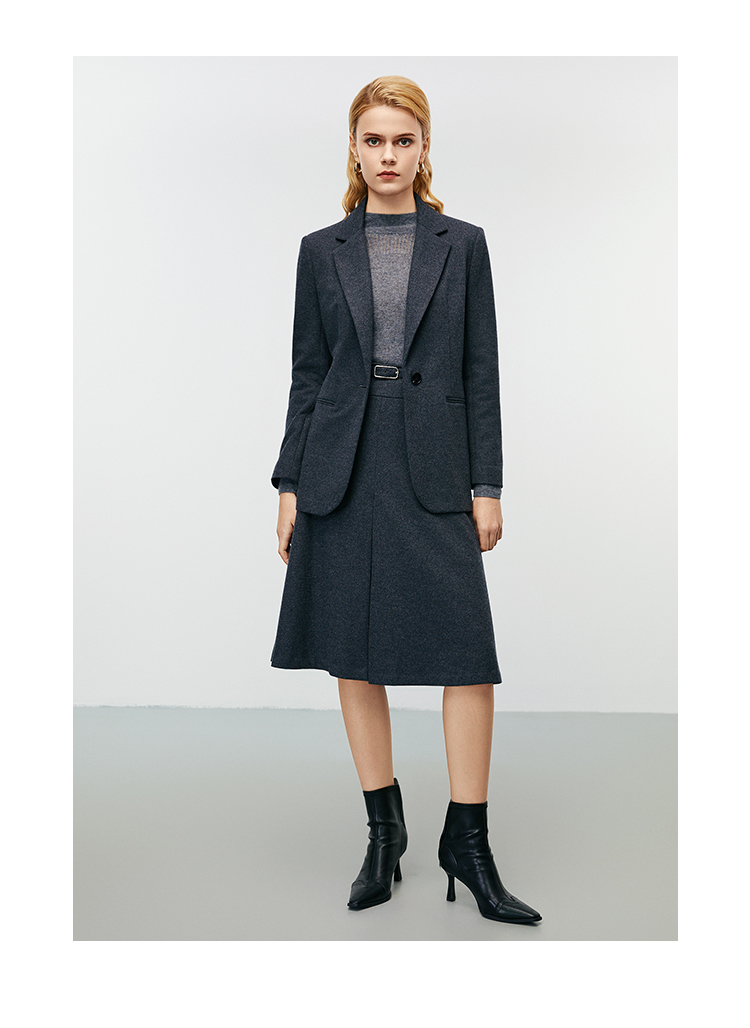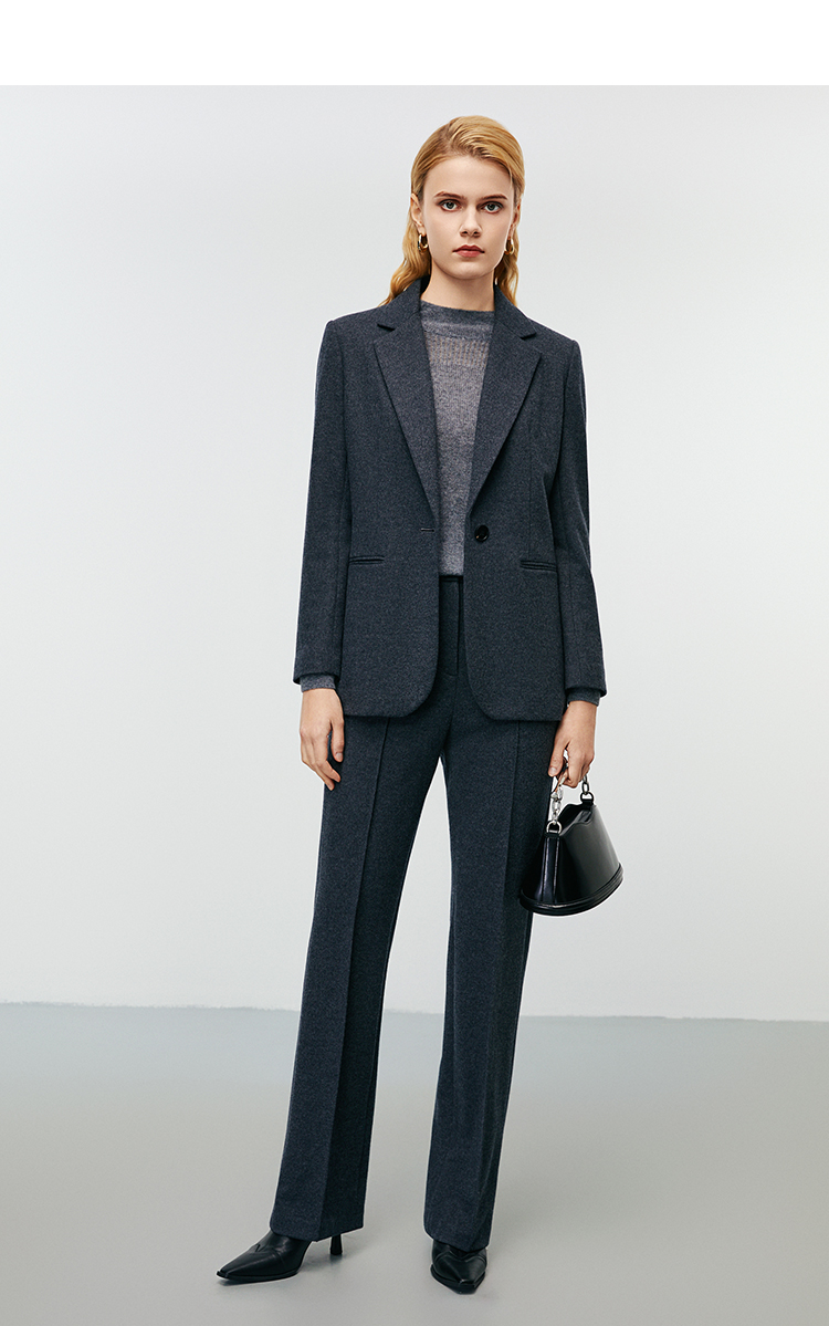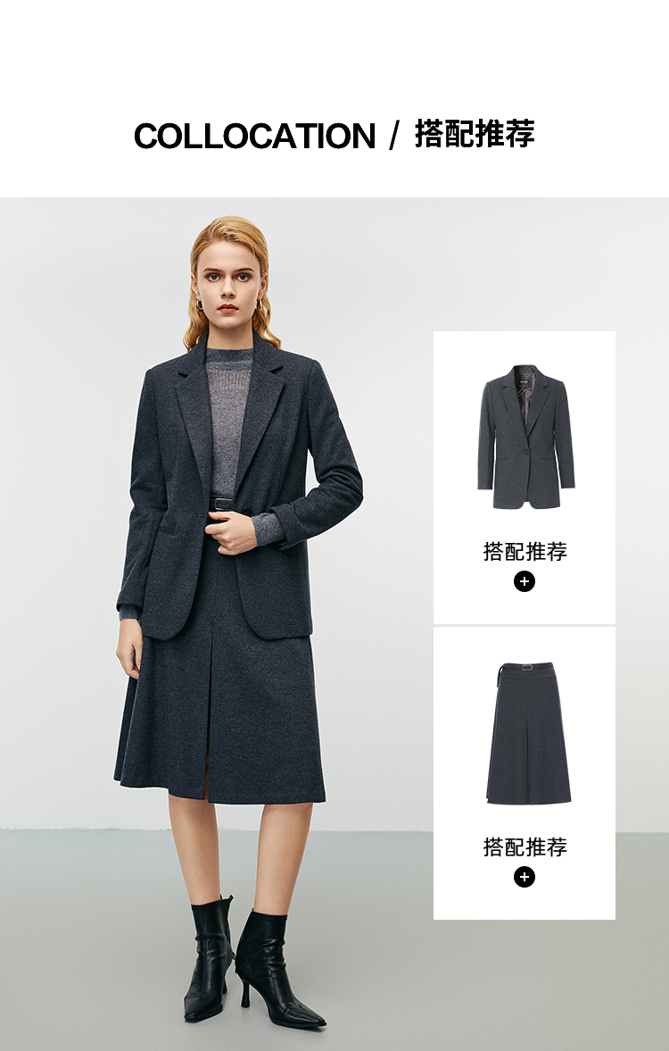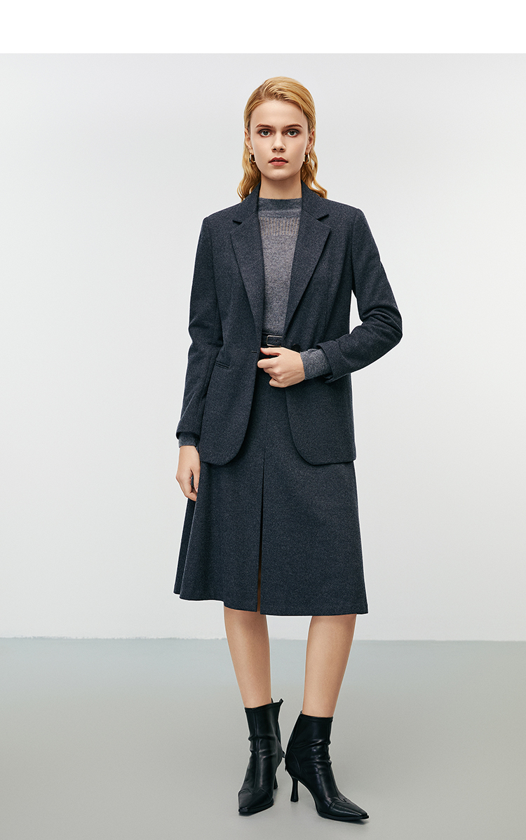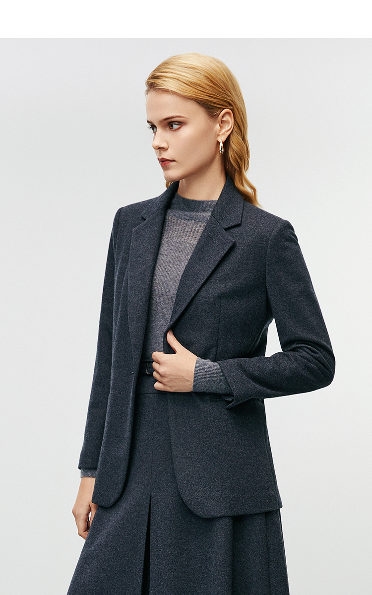 EITIE爱特爱气质通勤修身显瘦深灰色干练毛呢西装外套冬季新款8003704