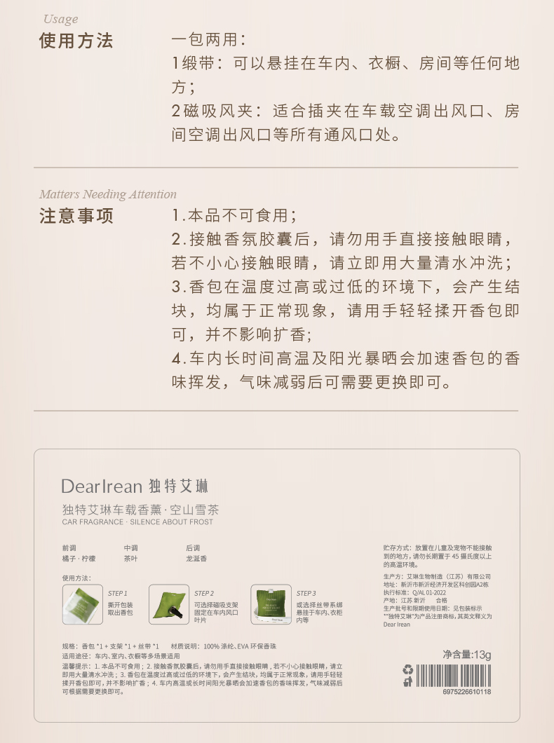 【品牌直发】独特艾琳 车载香薰 家用卧室高级汽车香水车内出风装饰