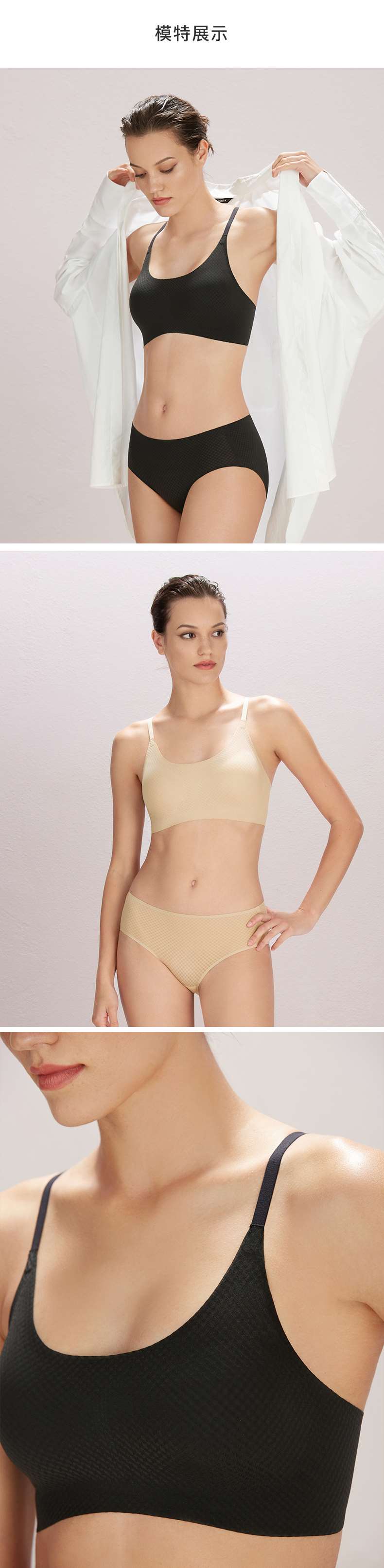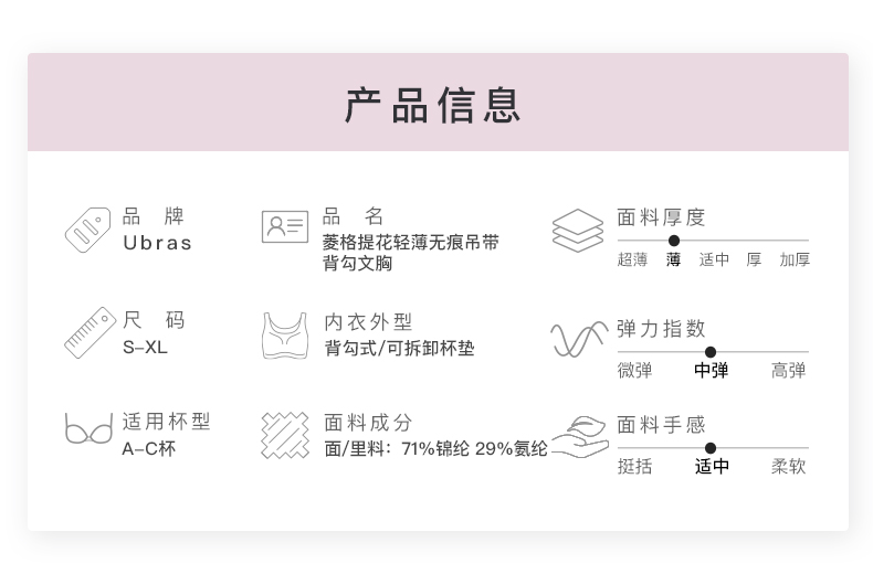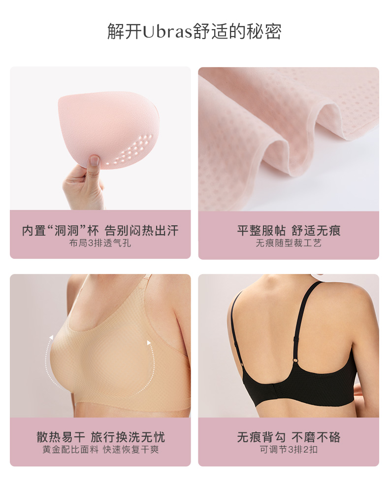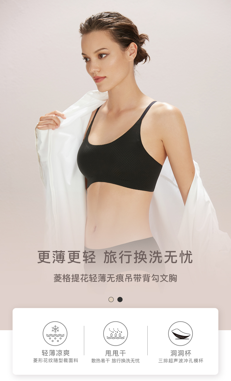 Ubras菱格提花轻薄无痕吊带背勾文胸内衣款 聚拢舒适透气