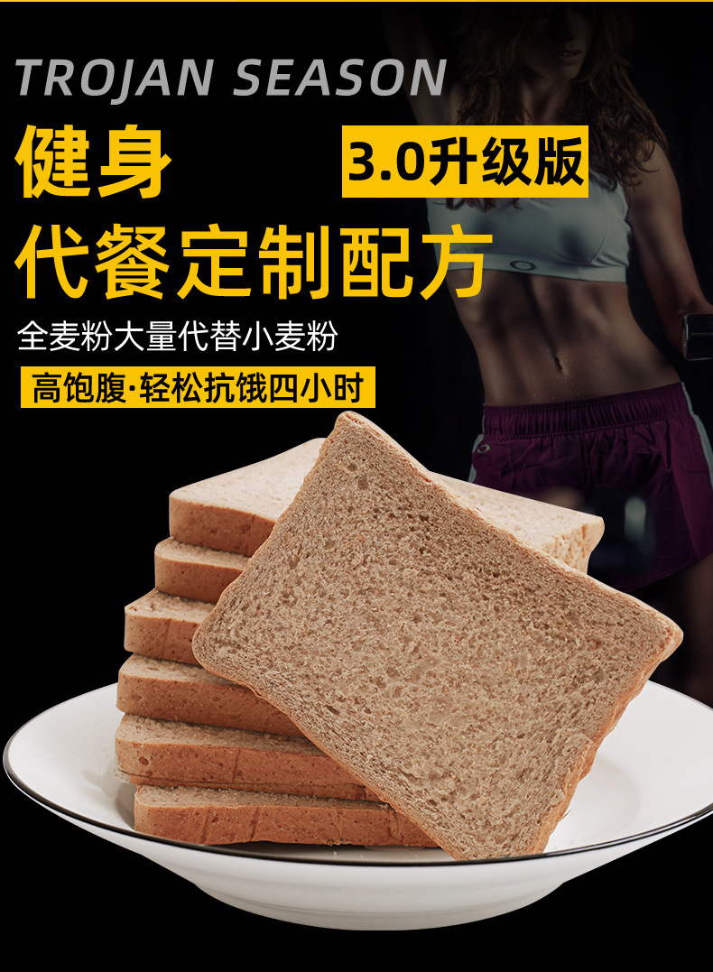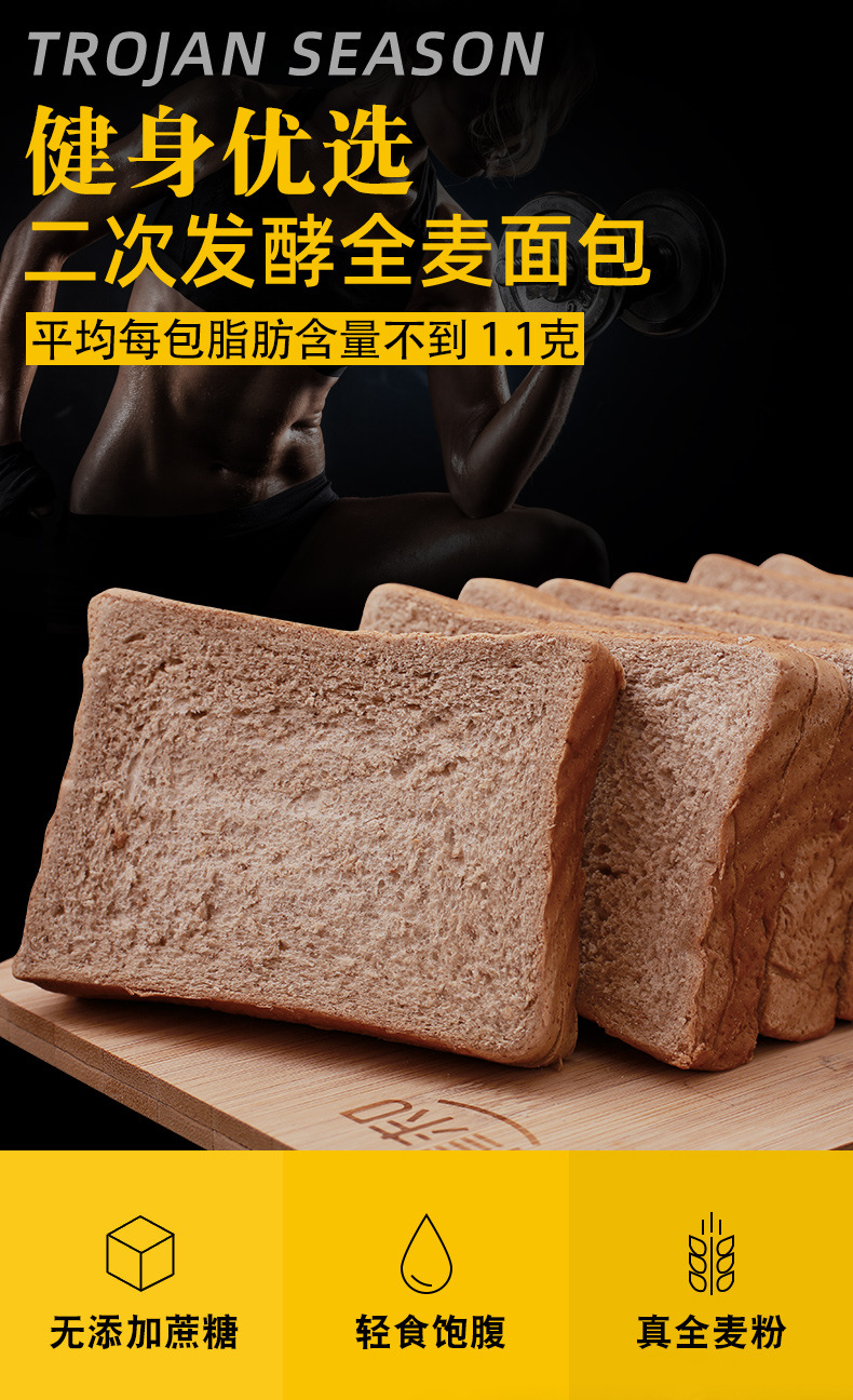【健身优选,二次发酵全麦面包】0脂肪黑麦全麦面包无蔗糖 整箱粗粮代餐 饱腹食品 低脂早餐吐司片-QQ