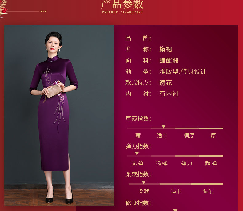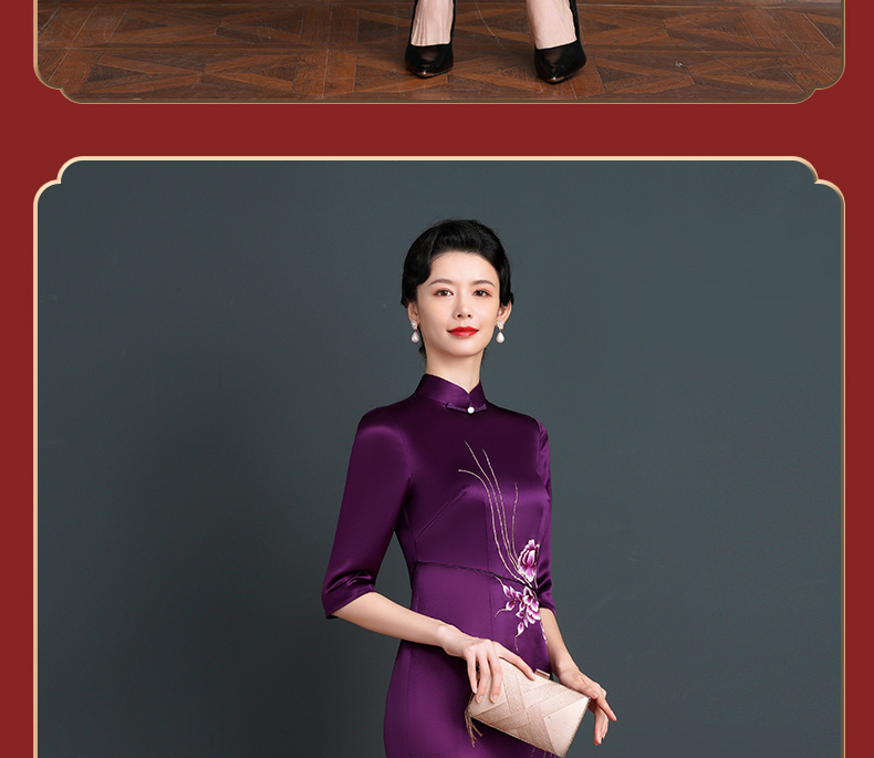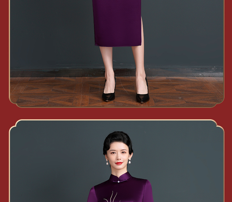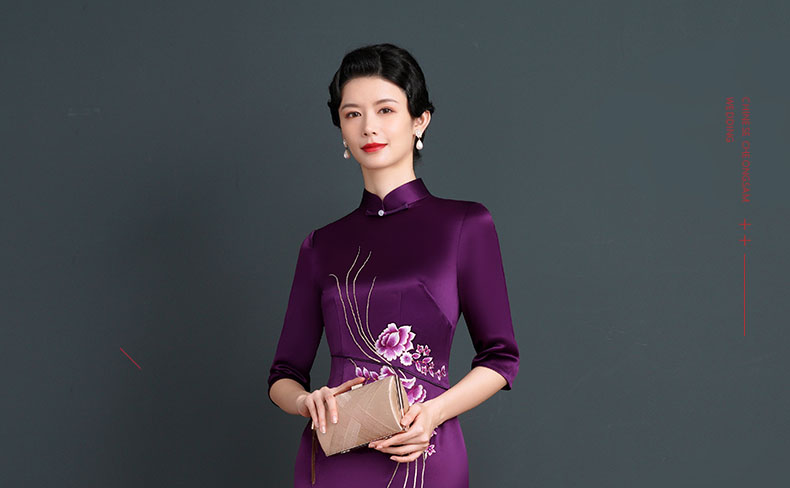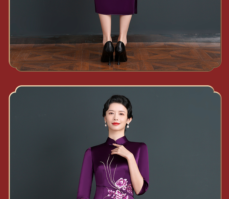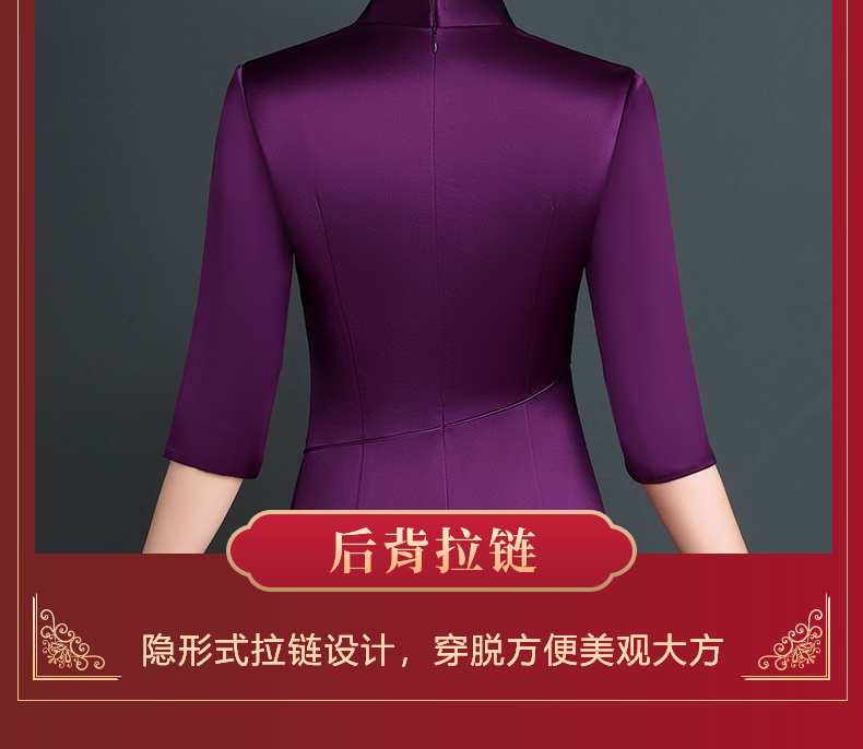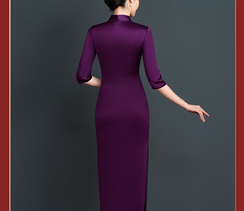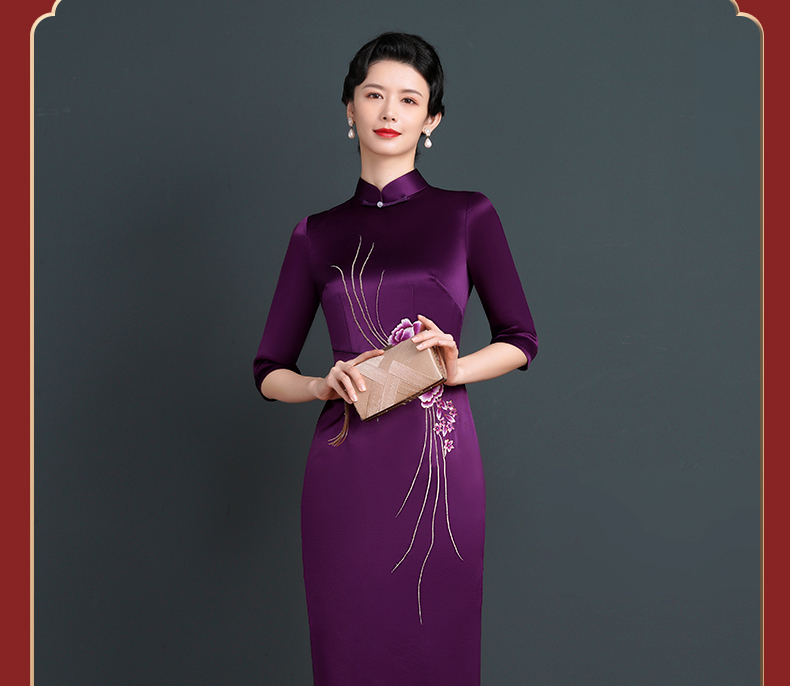 上海旗袍厂NBL-NC20254 紫色醋酸旗袍高贵年轻婚宴装婚宴喜宴喜婆婆参加婚礼礼服秋款