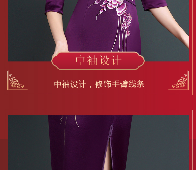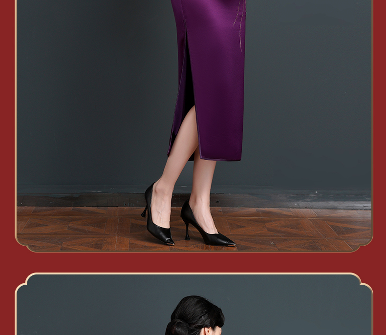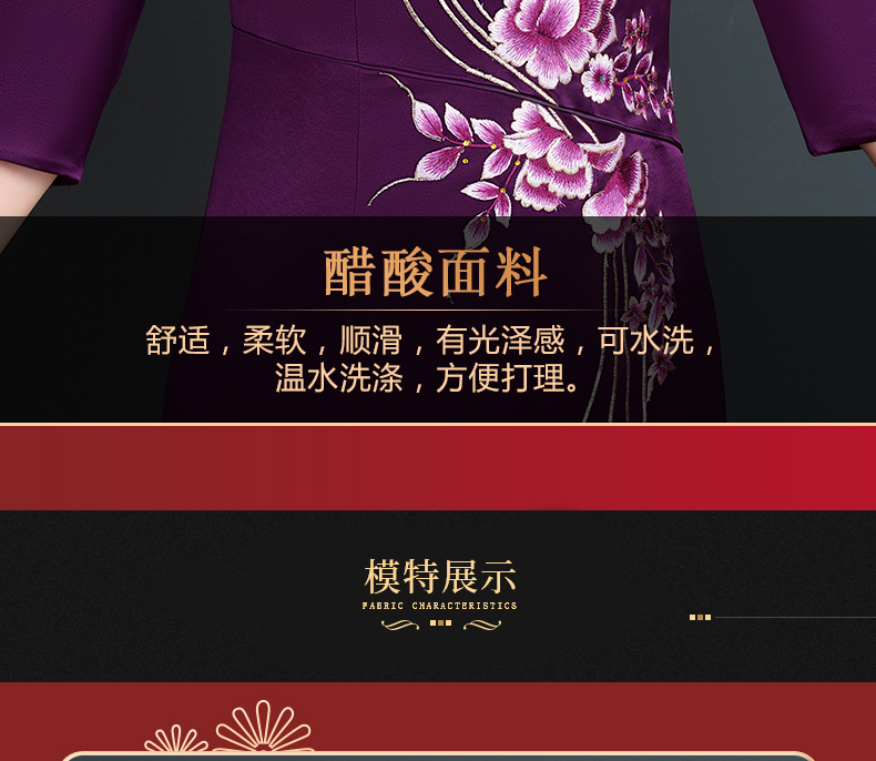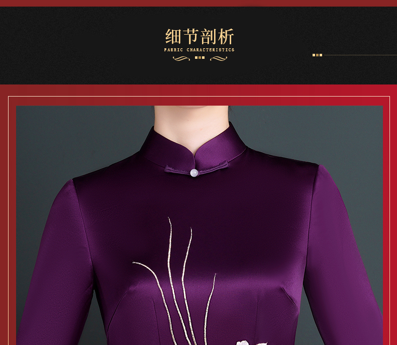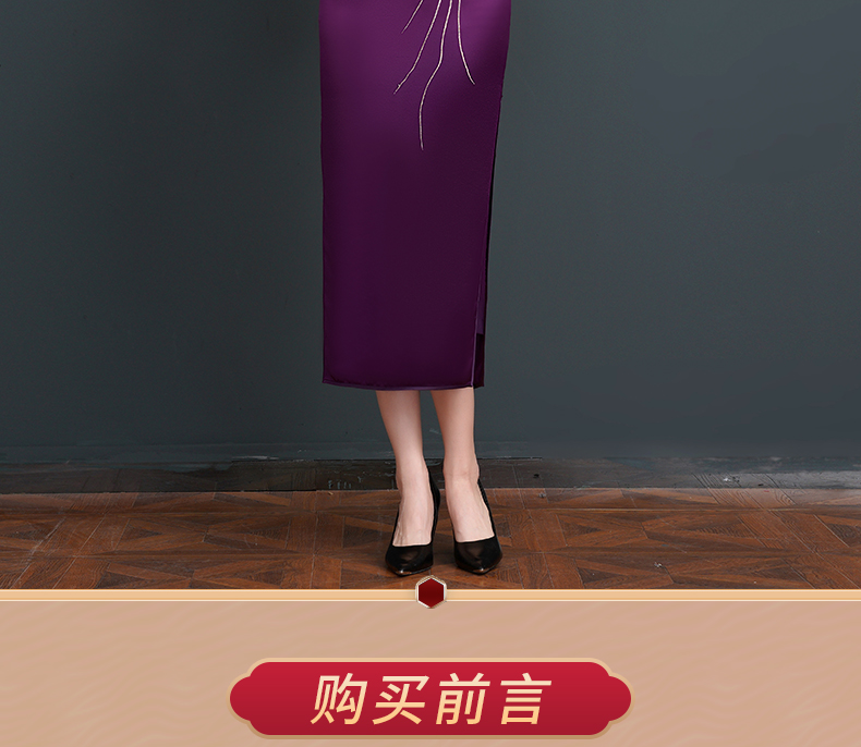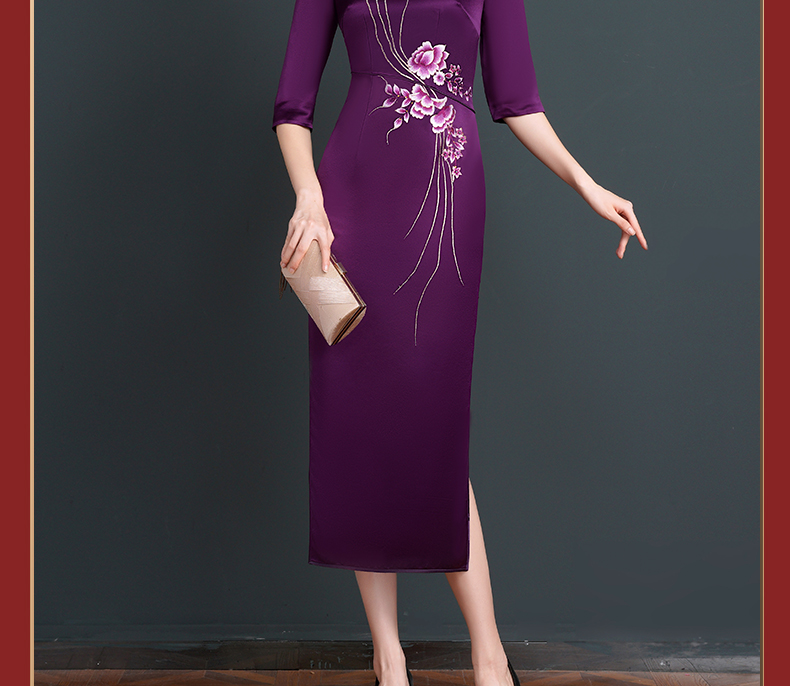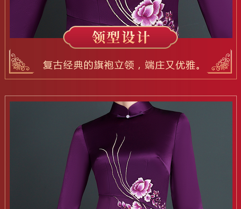 上海旗袍厂NBL-NC20254 紫色醋酸旗袍高贵年轻婚宴装婚宴喜宴喜婆婆参加婚礼礼服秋款