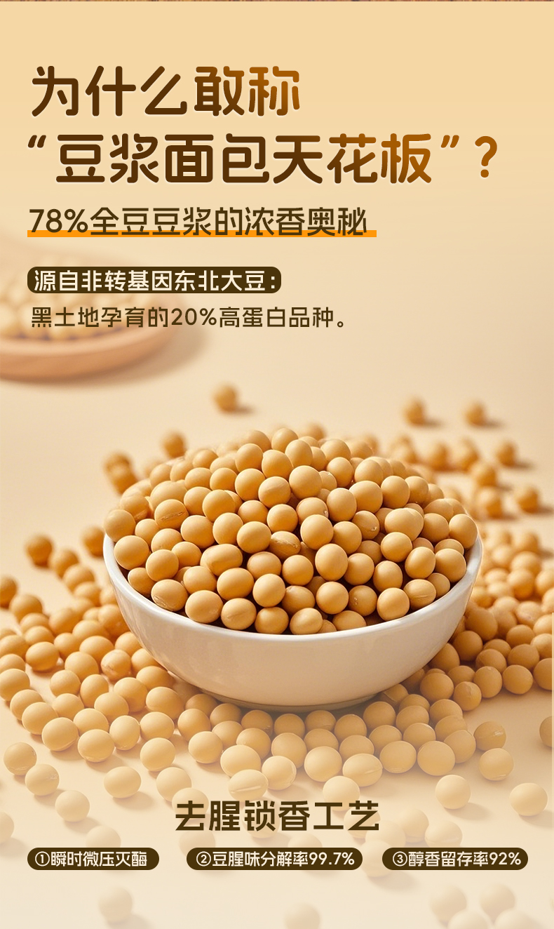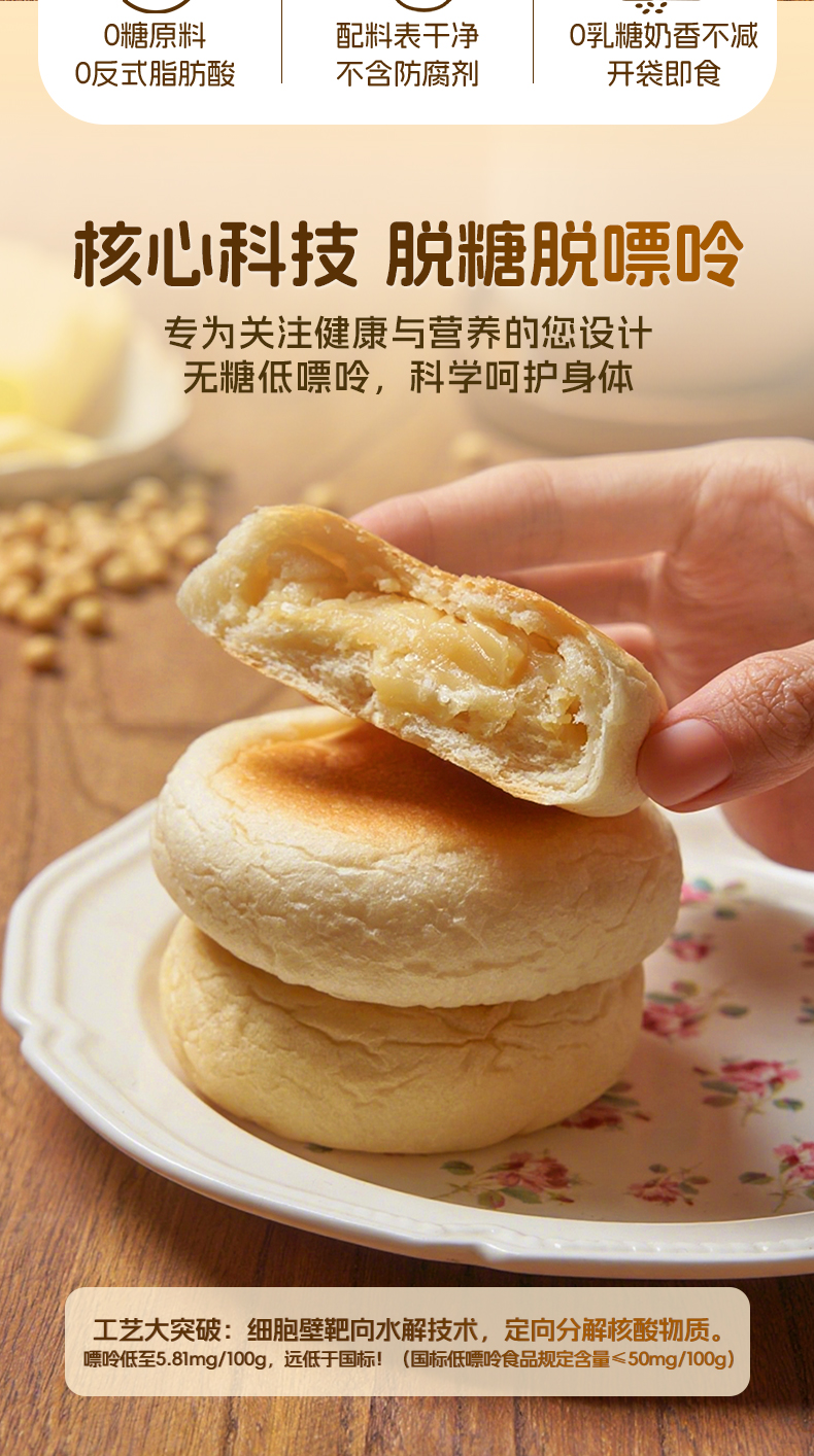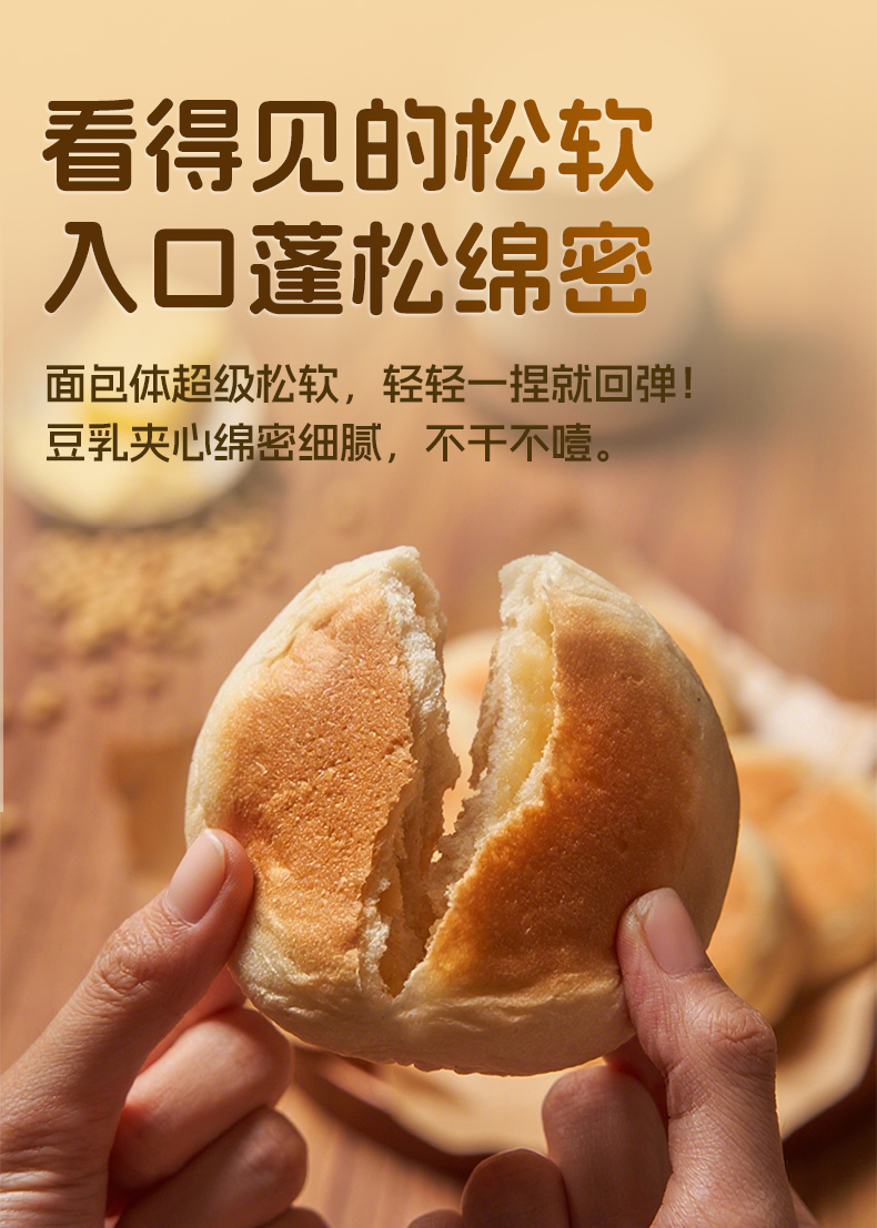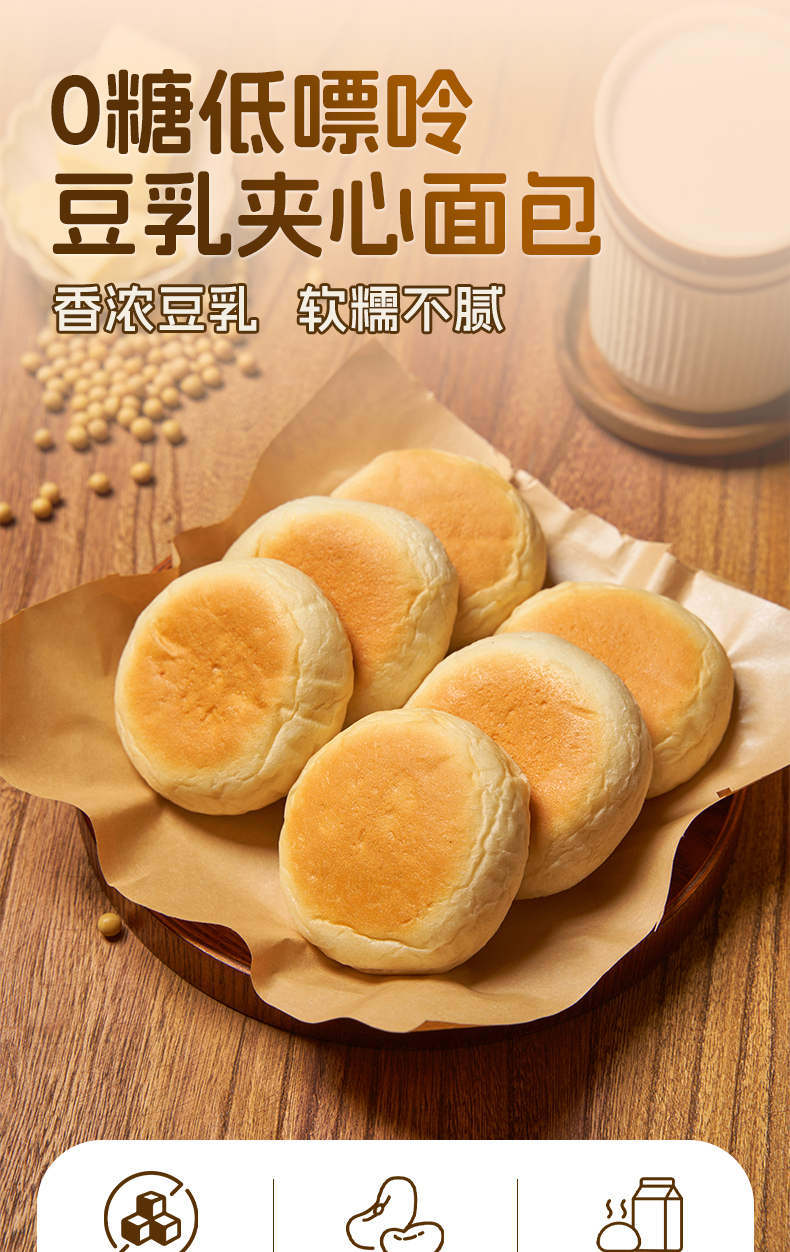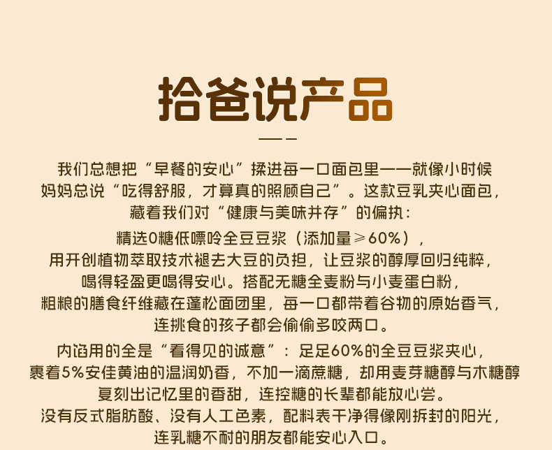 【现做现发 三天内发货】拾爸家 0糖豆乳夹心面包 香浓豆乳 软糯不腻 脱糖脱嘌呤 78%全豆豆浆浓香 芬兰0乳糖奶粉