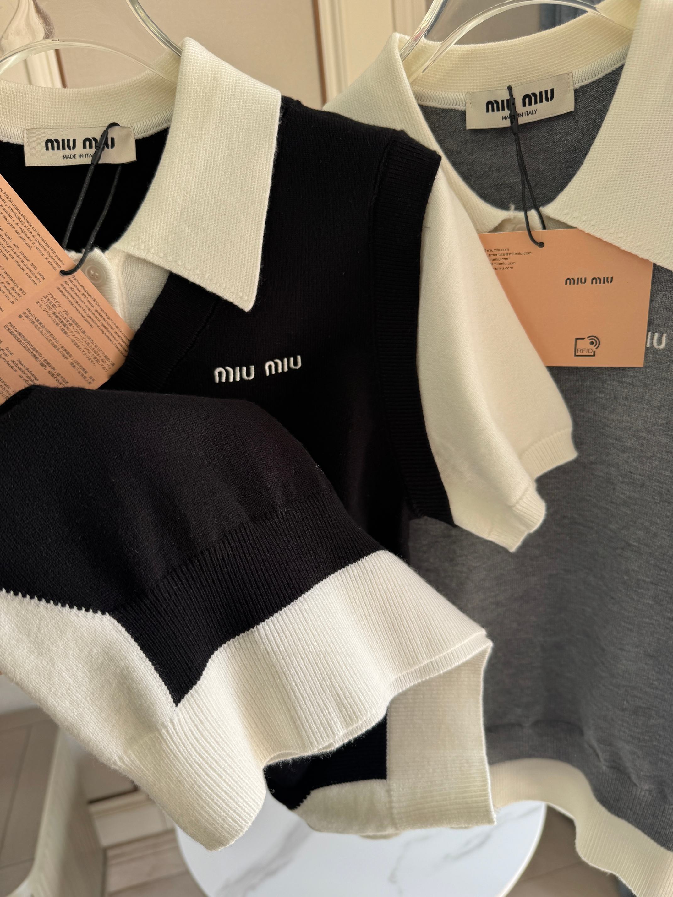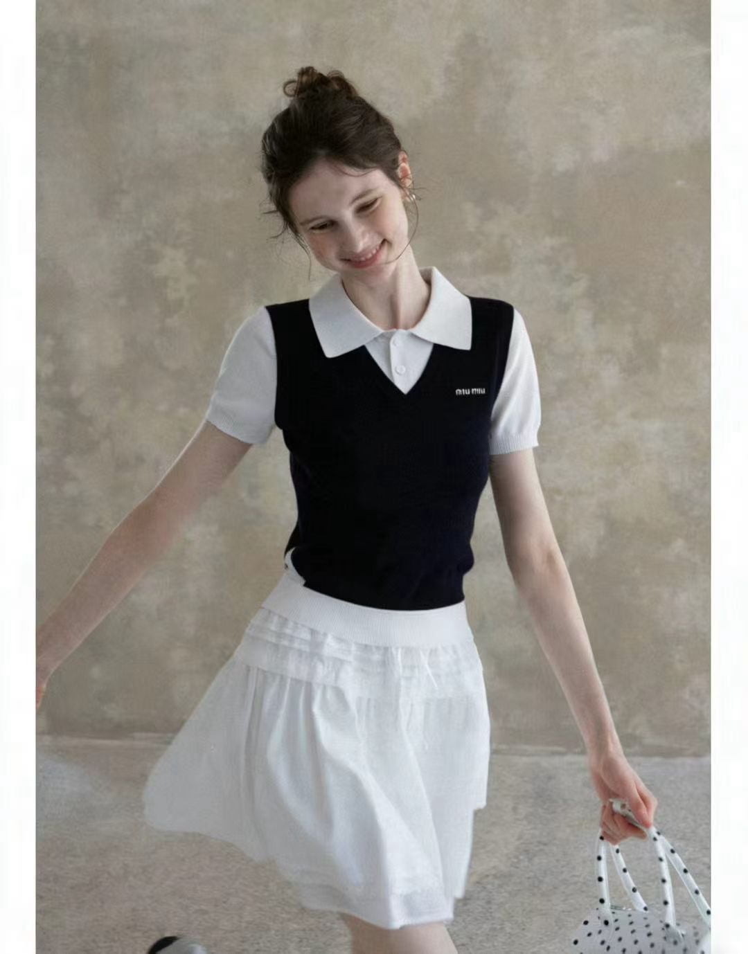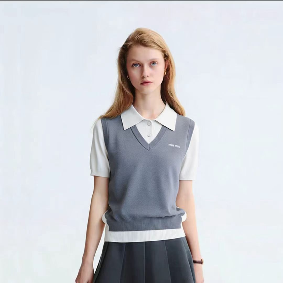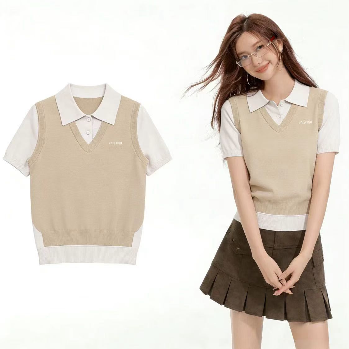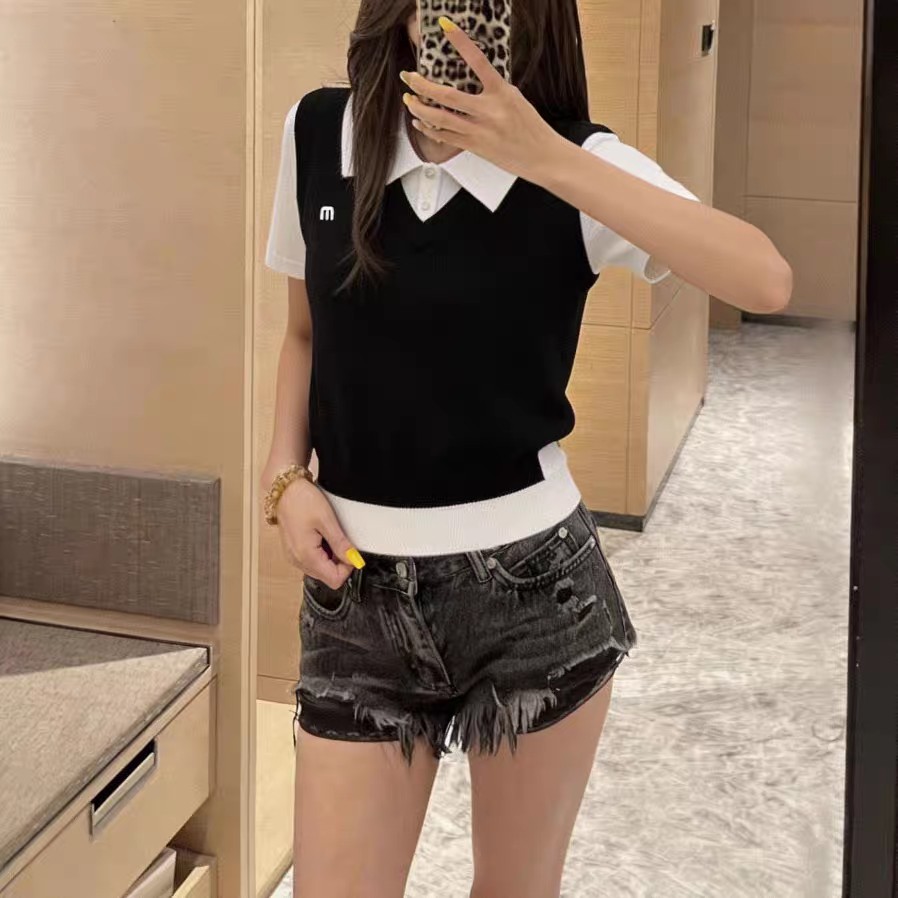 85 货号070155085 mp (M.L)新款时尚潮流女装上衣夏季miu翻领polo假两件针织衫短袖T恤~