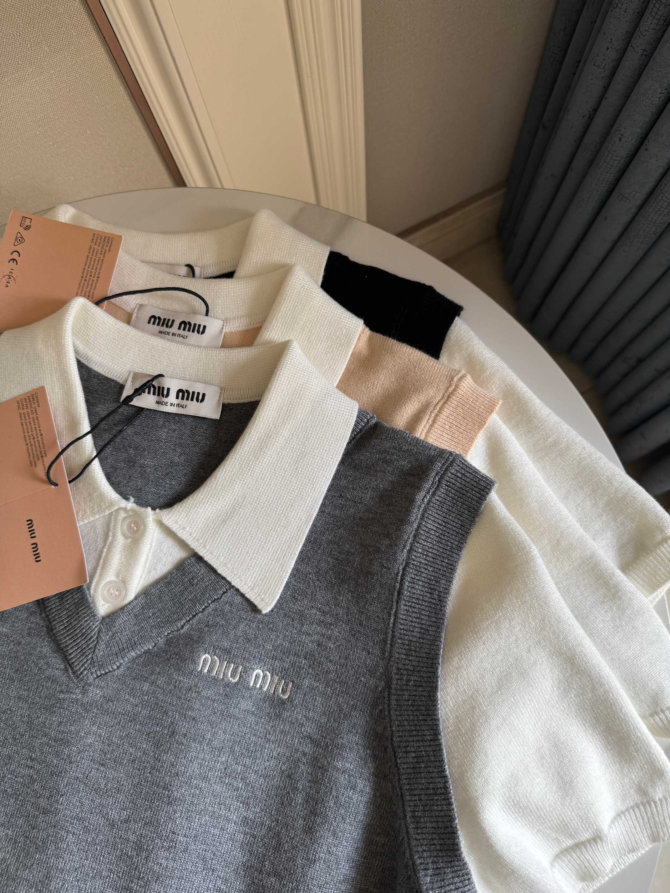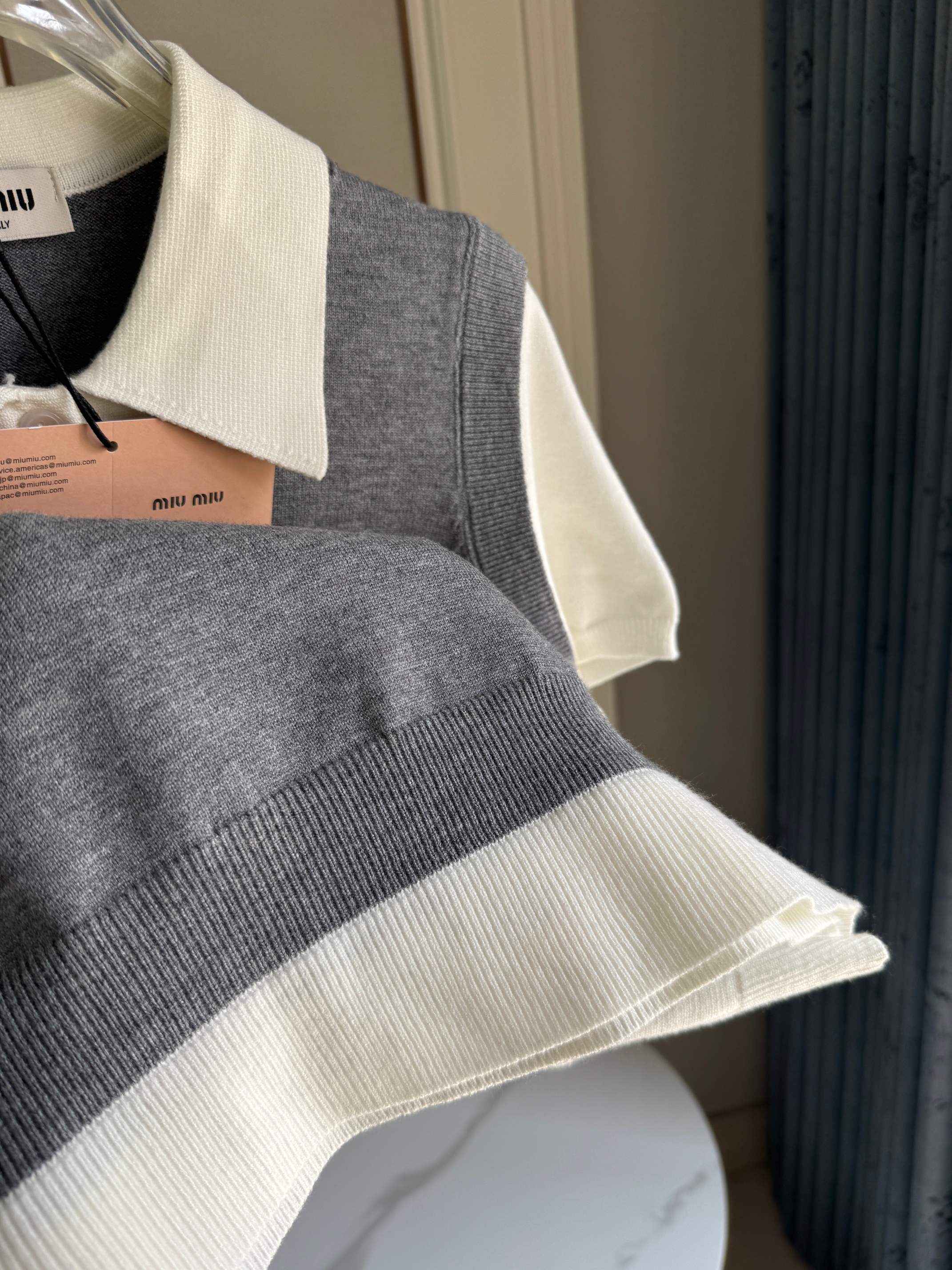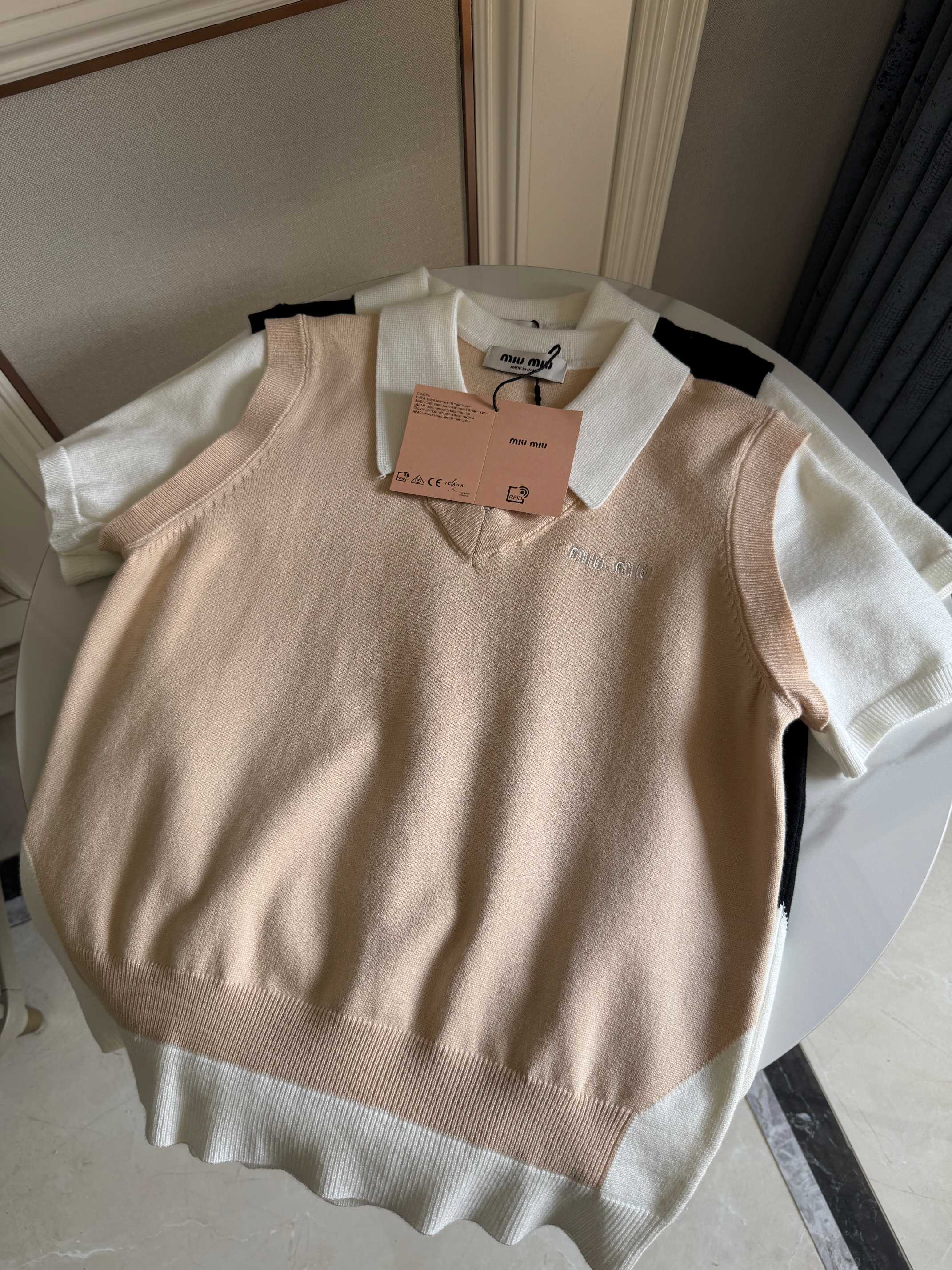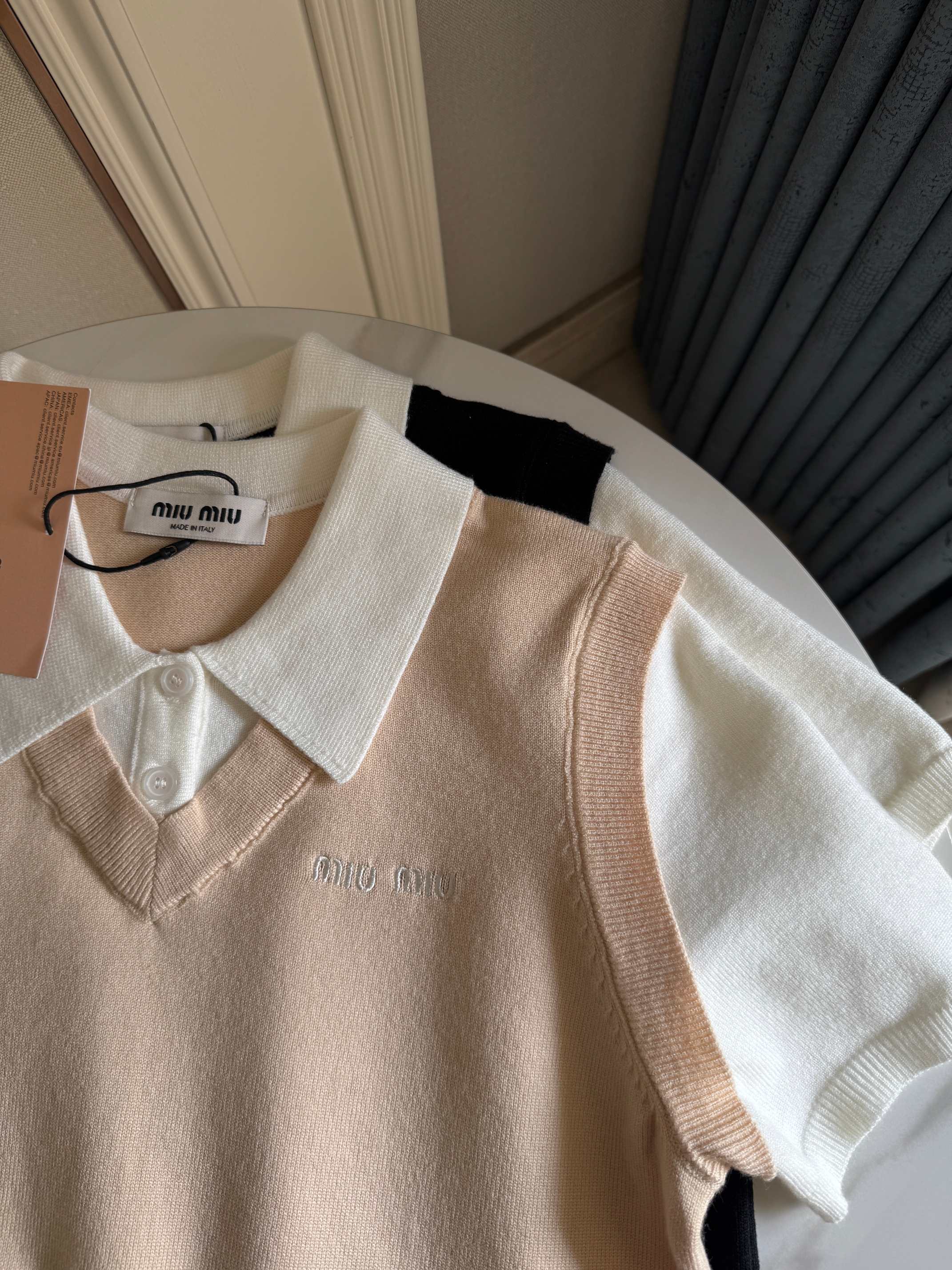85 货号070155085 mp (M.L)新款时尚潮流女装上衣夏季miu翻领polo假两件针织衫短袖T恤~