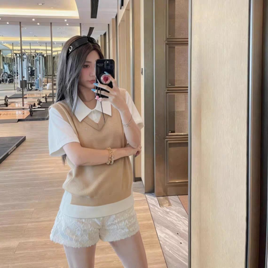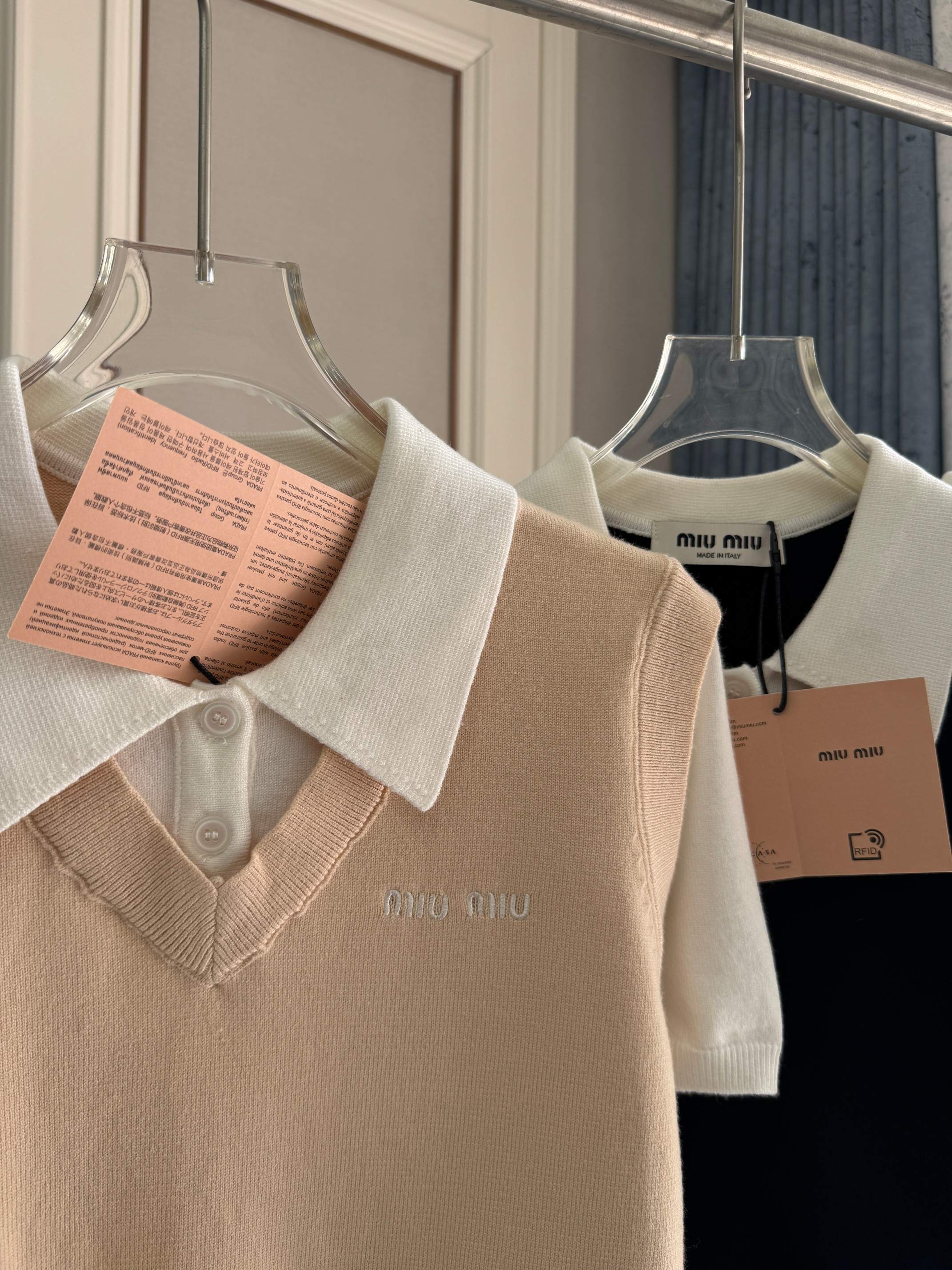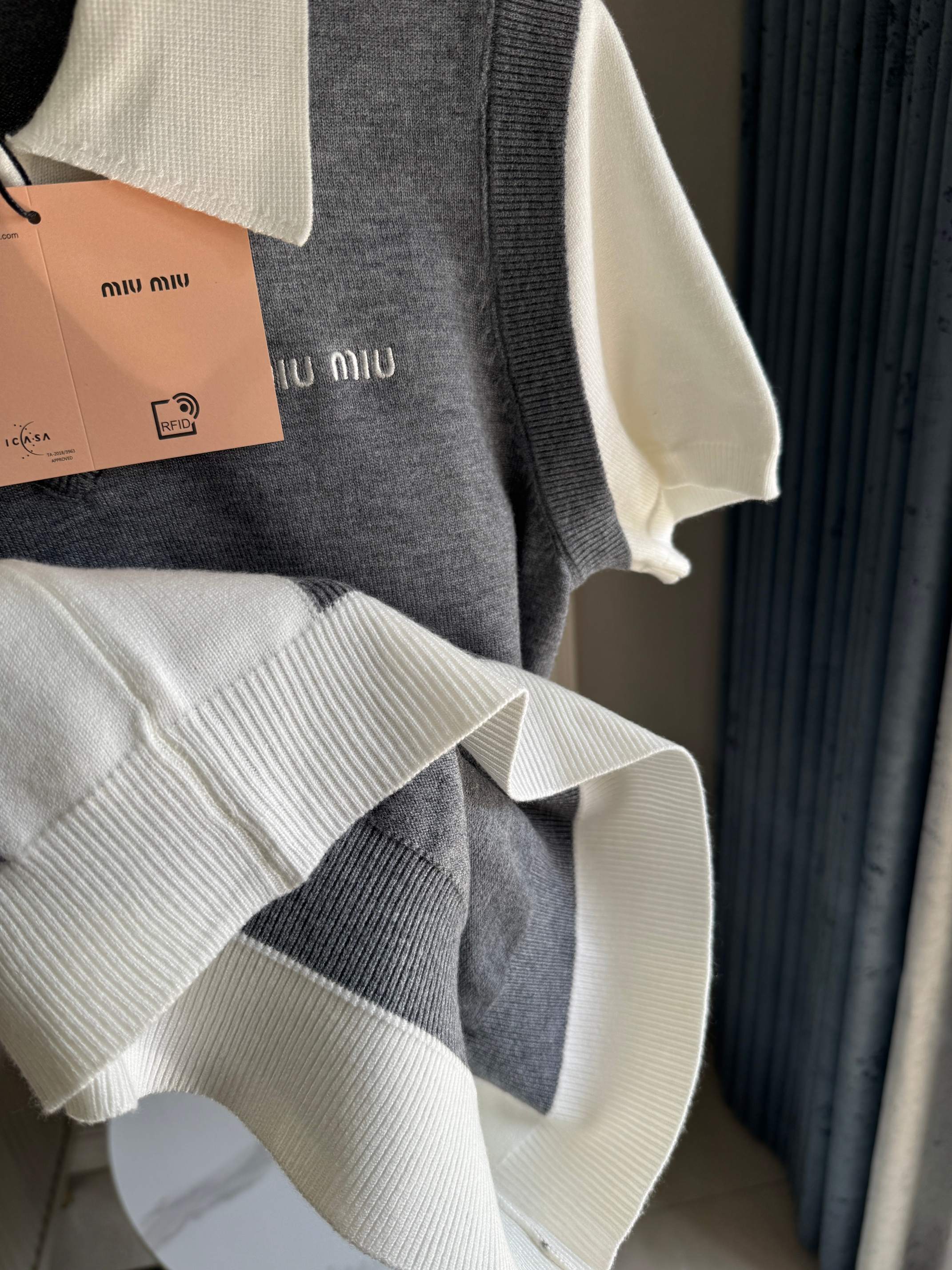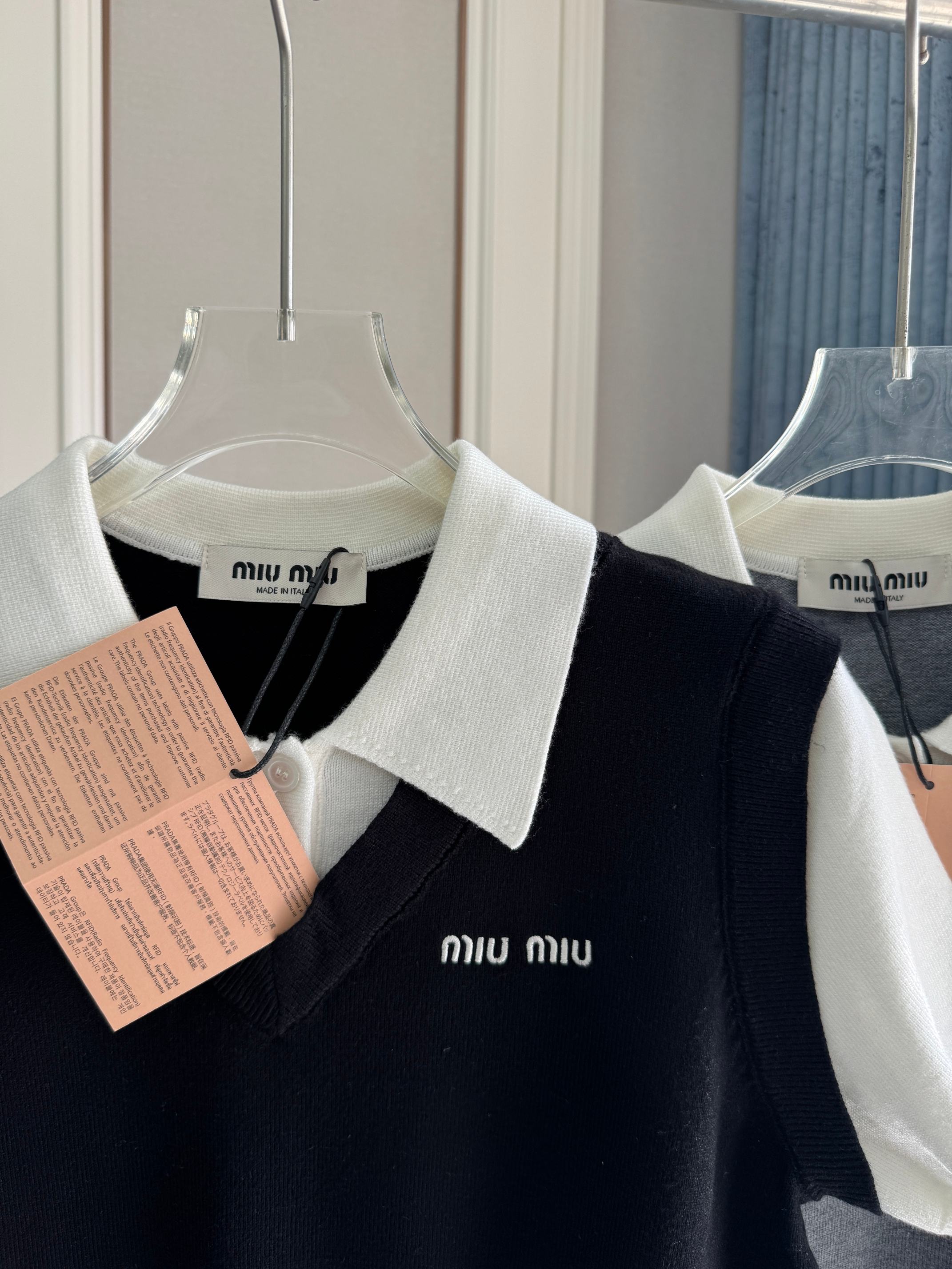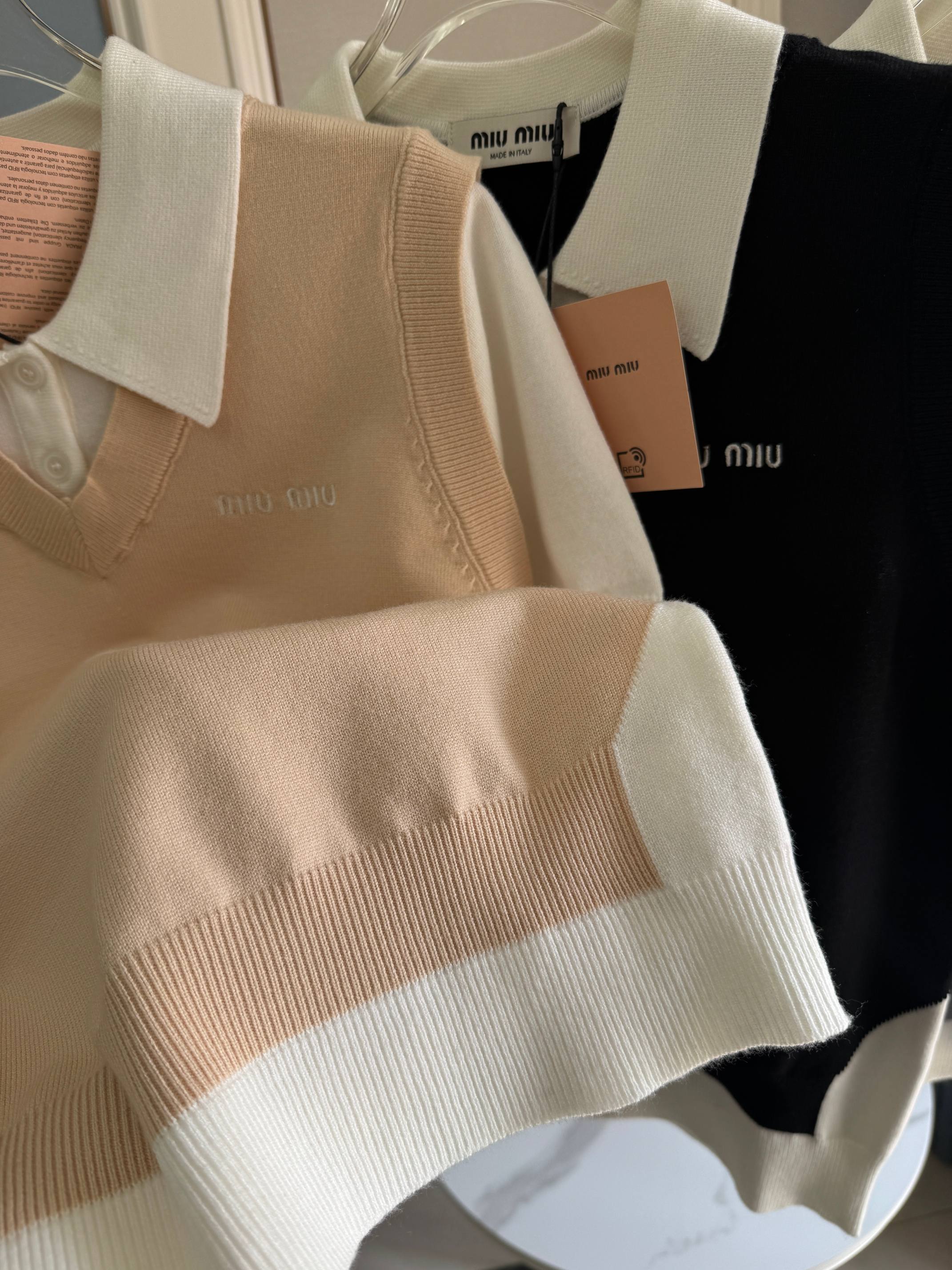 85 货号070155085 mp (M.L)新款时尚潮流女装上衣夏季miu翻领polo假两件针织衫短袖T恤~