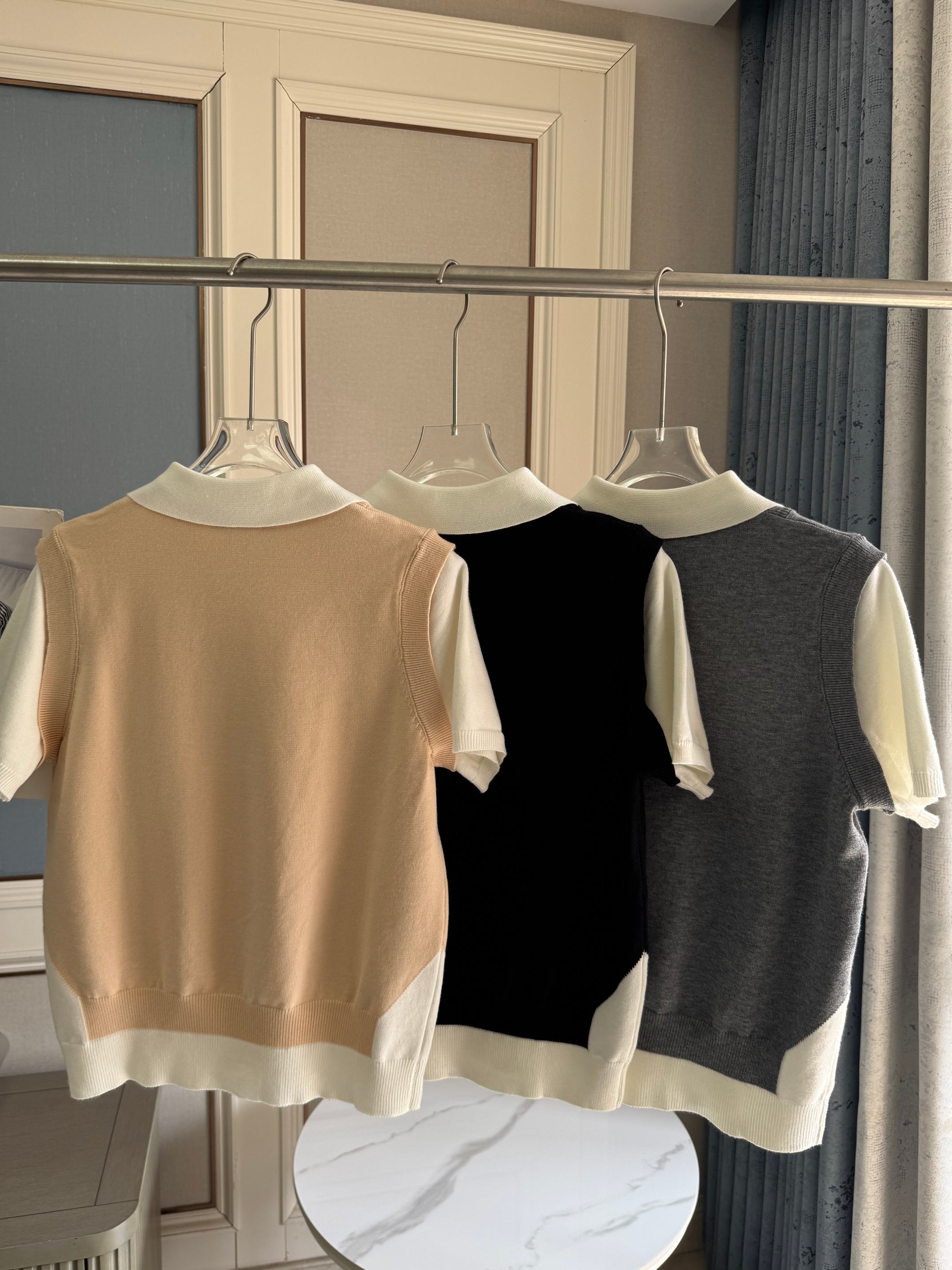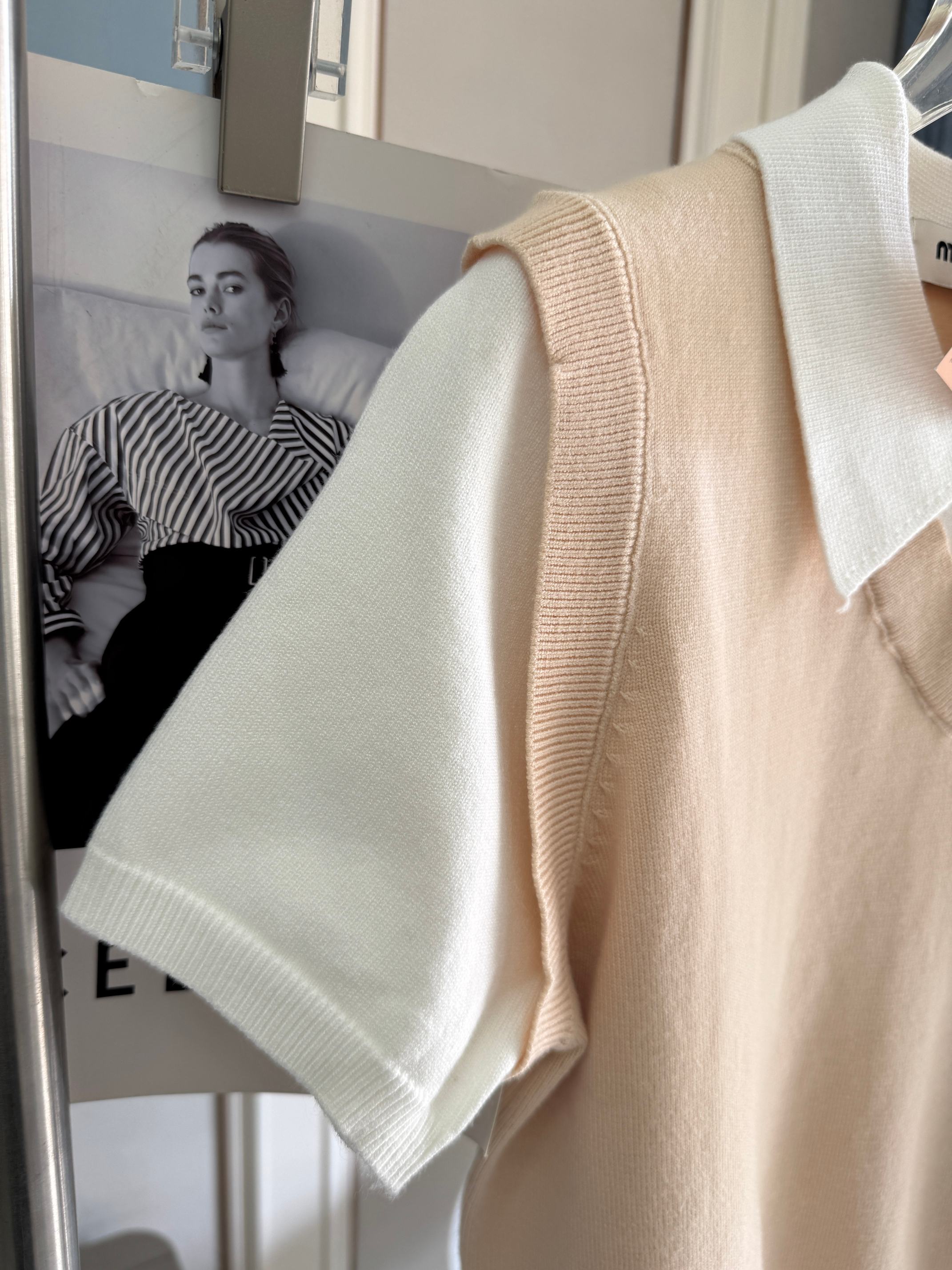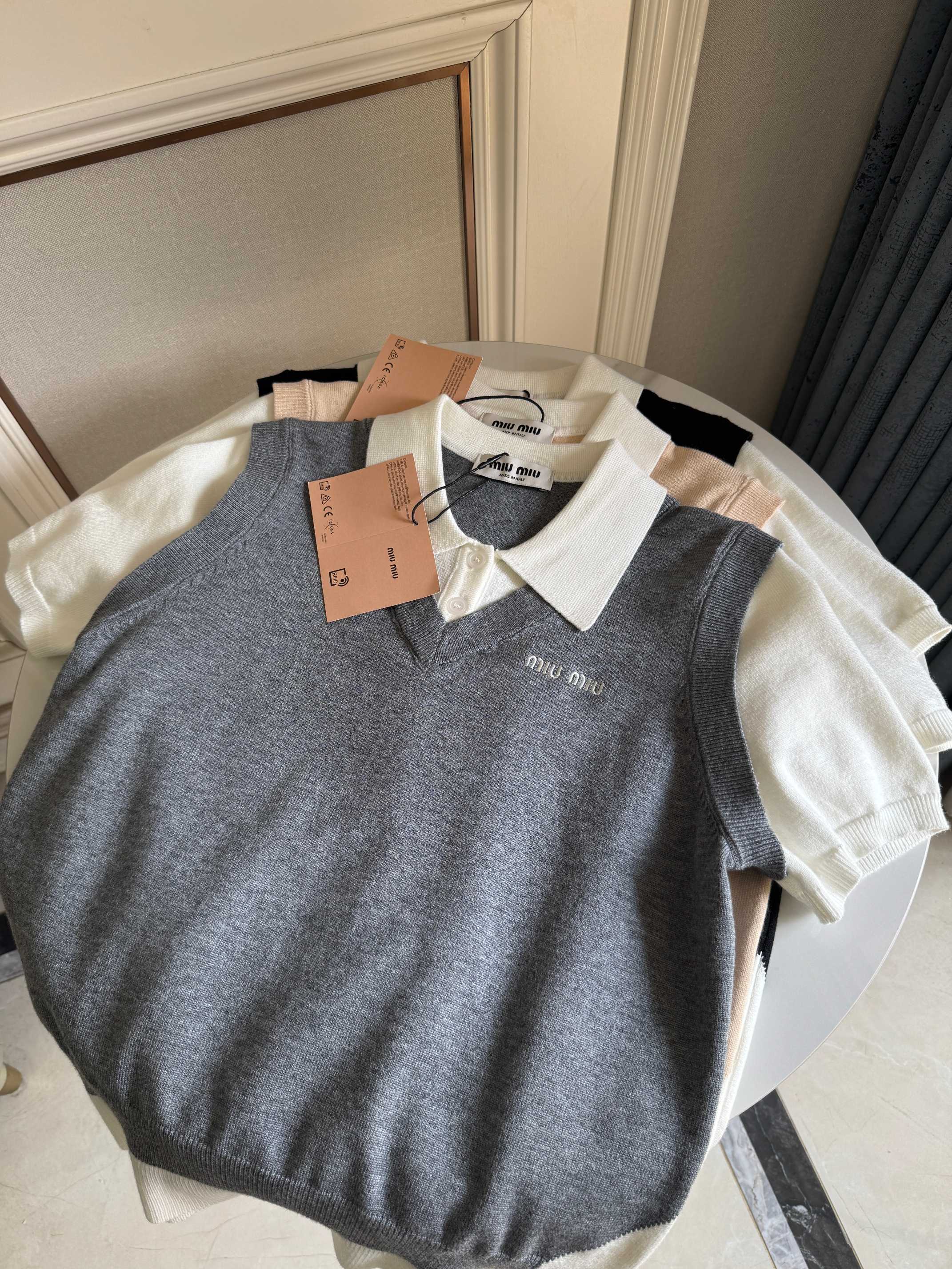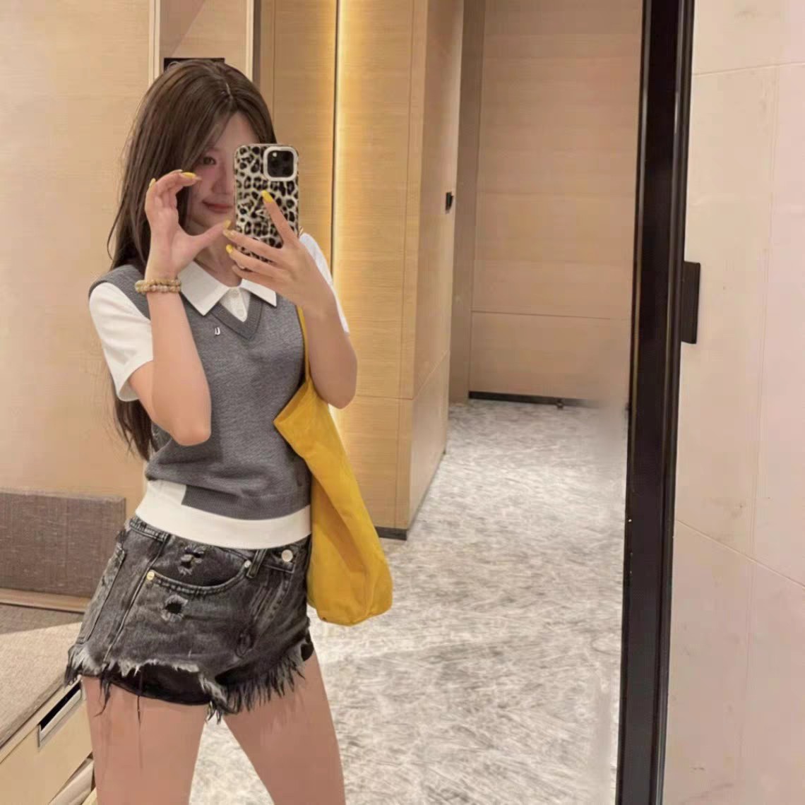 85 货号070155085 mp (M.L)新款时尚潮流女装上衣夏季miu翻领polo假两件针织衫短袖T恤~