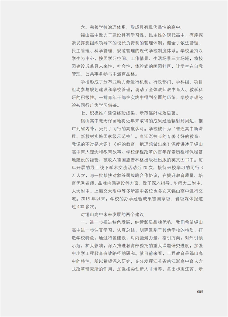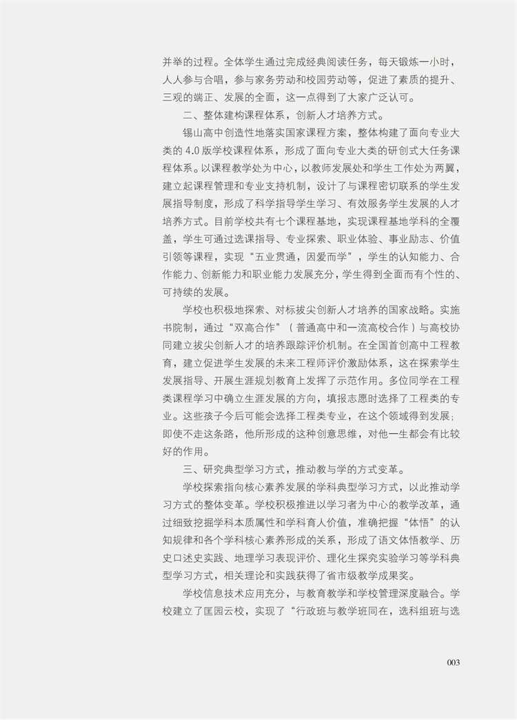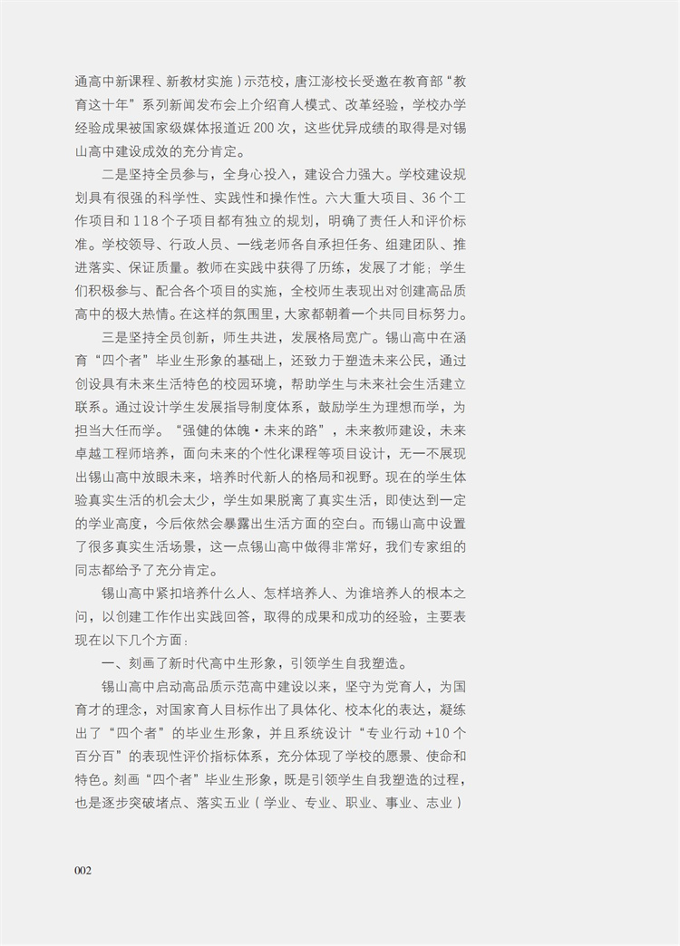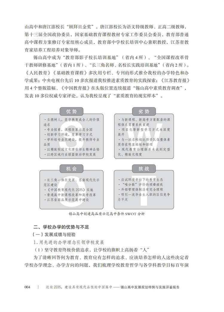 迈向2035 建设具有现代品性的中国高中 锡山高中发展规划样例与实施评鉴报告 高品质示范高中创建的基础分析 情况报告等高中规划