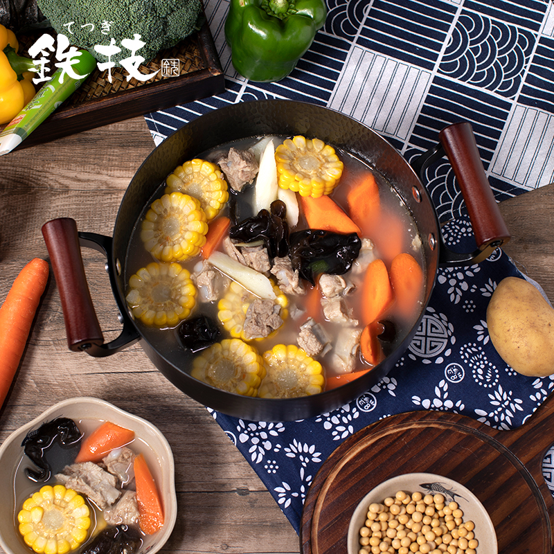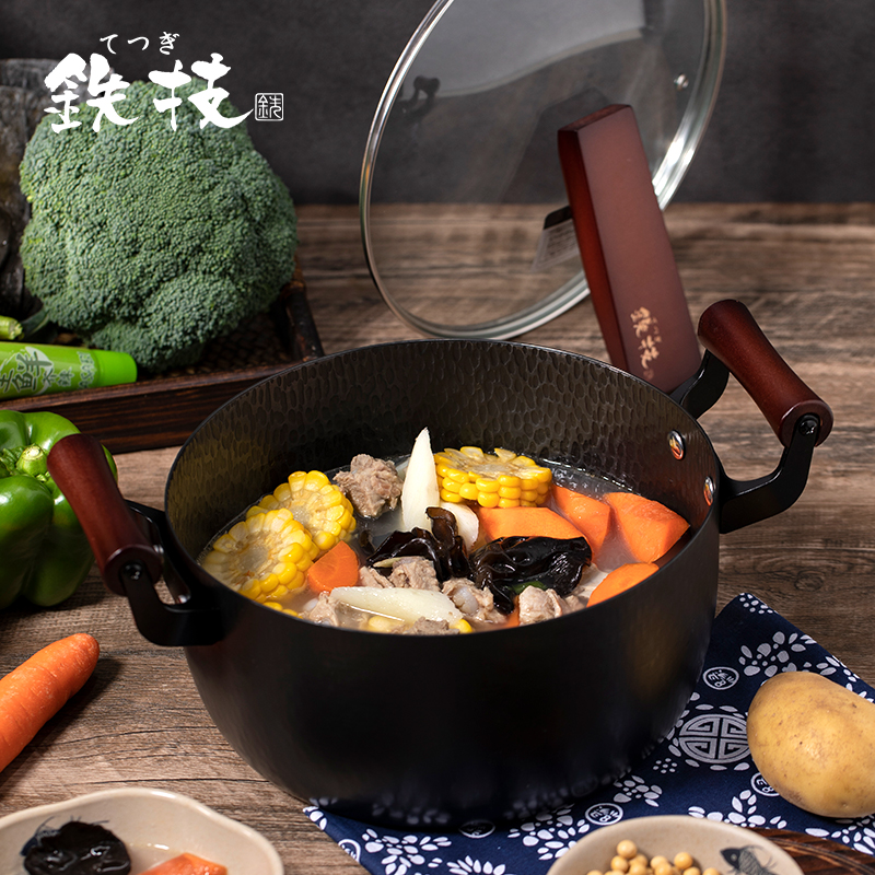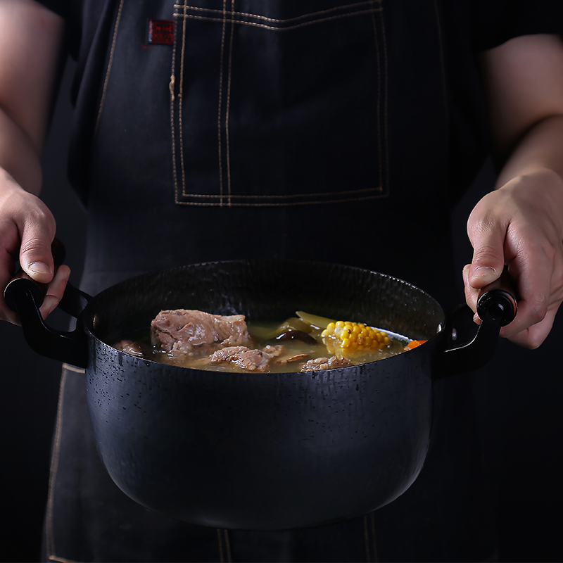 精选铁矿经高温浇注成型,后经锻打、抛光数道工序,完成锅体制作。汤锅锅身均匀布满透气气孔,可以隔绝食物与锅体的黏连,真正达到物理不粘效果,锅体无涂层不含化学性真正的汤锅,补充铁离子微量元素。