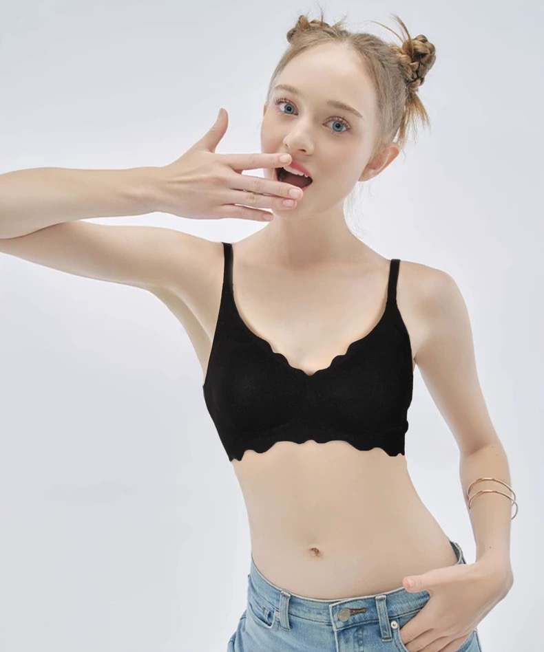 波浪款是半固定的罩杯,蕾丝款是可拆卸的罩杯哦!!