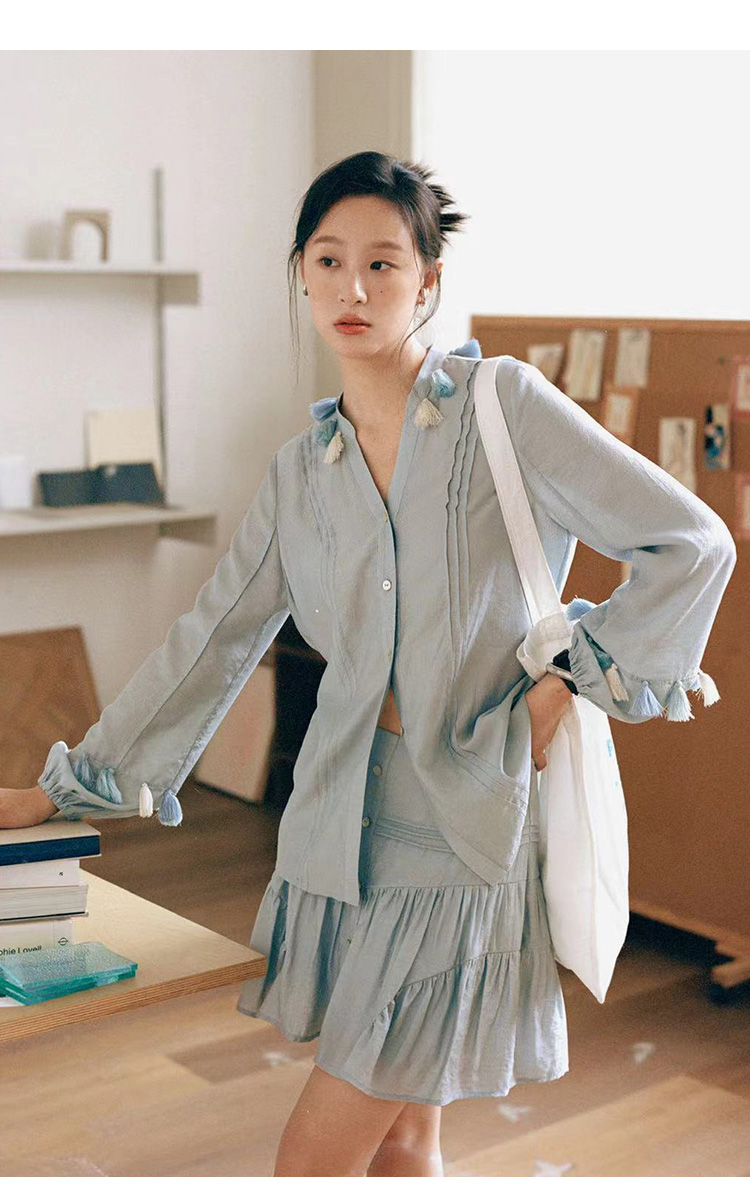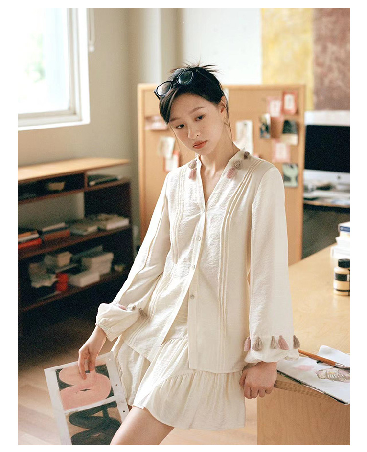 Even Vintage |法式浪漫 原创流苏精zhi上衣设计感衬衫女半裙套装