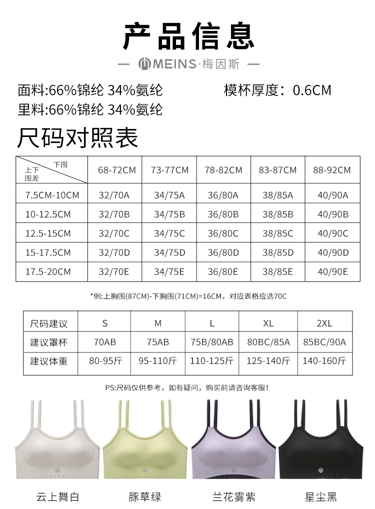 意大利MEINS/梅因斯 运动内衣 自带凉感 清爽不闷热 畅动无束缚 W26NF2411/W26NF2410