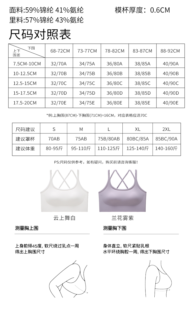 【品名】意大利MEINS/梅因斯 运动内衣 自带凉感 清爽不闷热 畅动无束缚 W26NF2411/W26NF2410 【规格】 W26NF2411:云上舞白、兰花雾紫 W26NF2410:云上舞白、星尘黑、豚草绿、兰花雾紫 【尺码】S-2XL 【产地】国内 【材质】 W26NF2411: 面料:锦纶59% 氨纶41% 里料:锦纶57% 氨纶43% W26NF2410: 面料:锦纶66% 氨纶34% 里料:锦纶66% 氨纶34% 【发货包装】独立包装 【发货地】浙江杭州、广东汕头随机发 【发货快递】中通、申通随机发 【补邮费地区】新疆、西藏+10元 【发货时效】48-72小时,周末节假日顺延 |