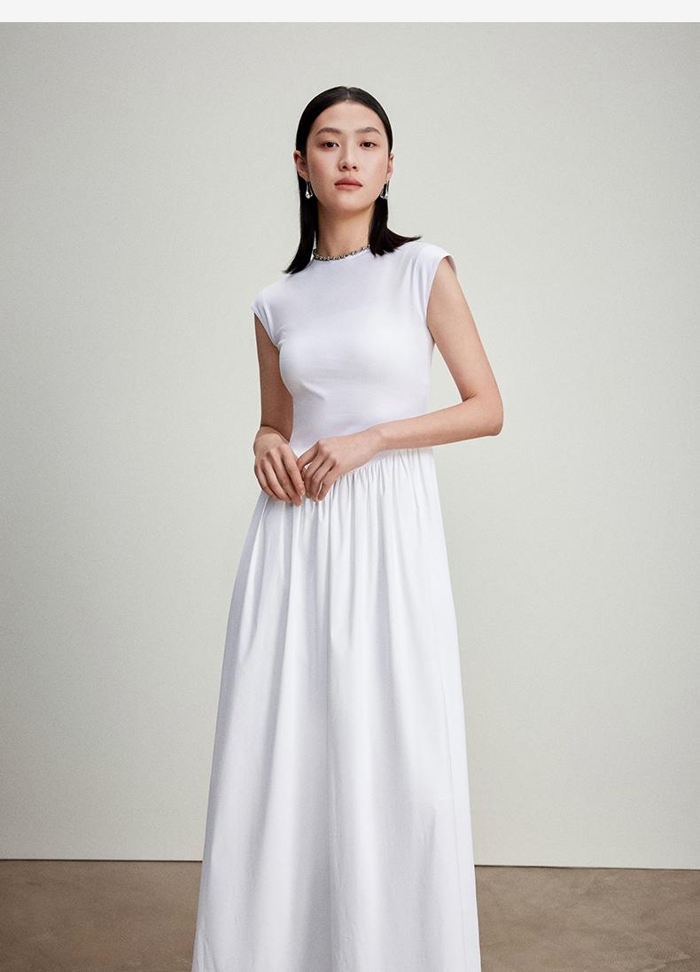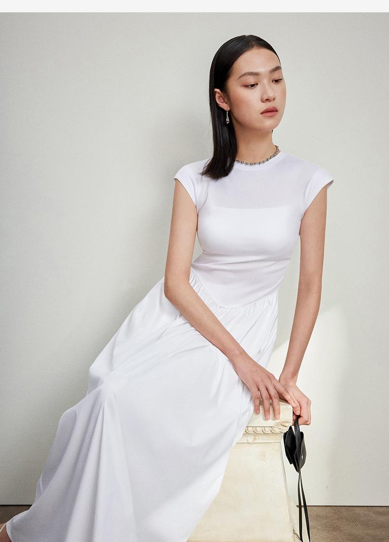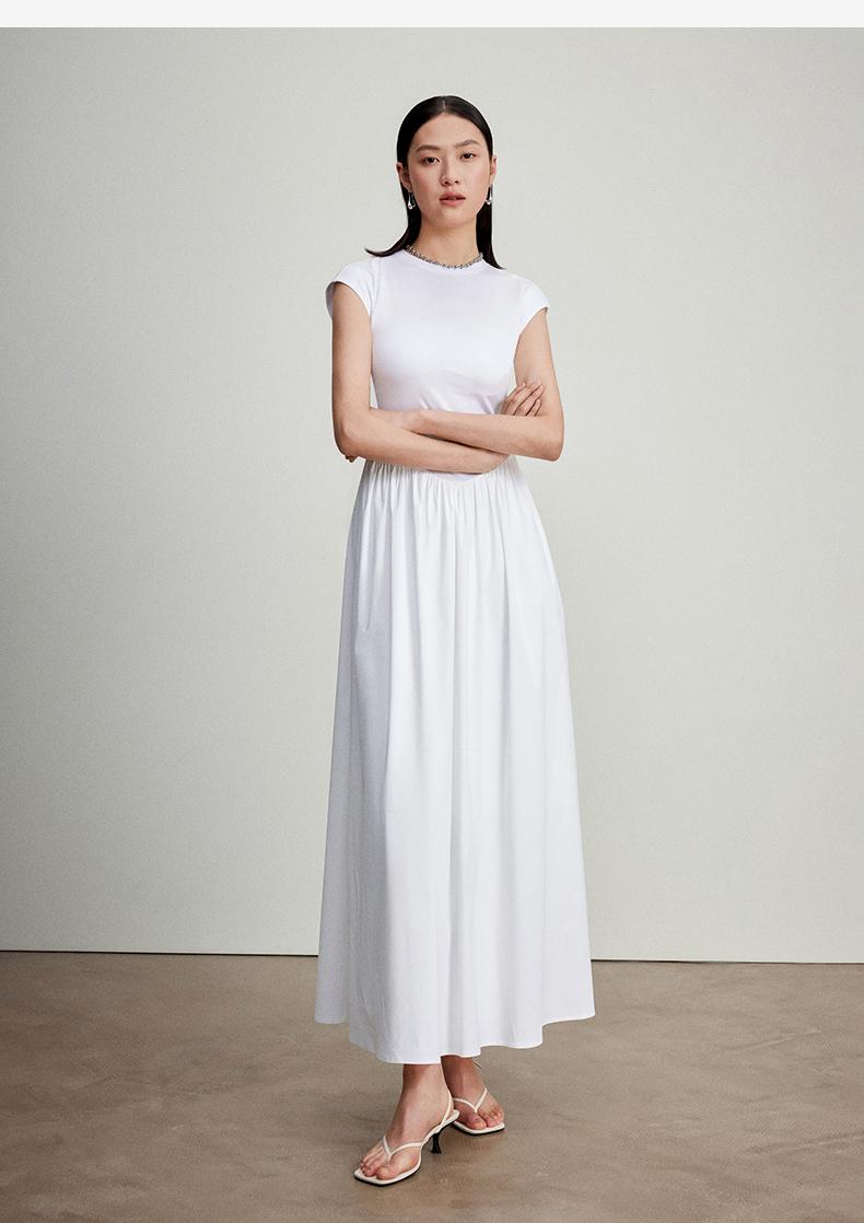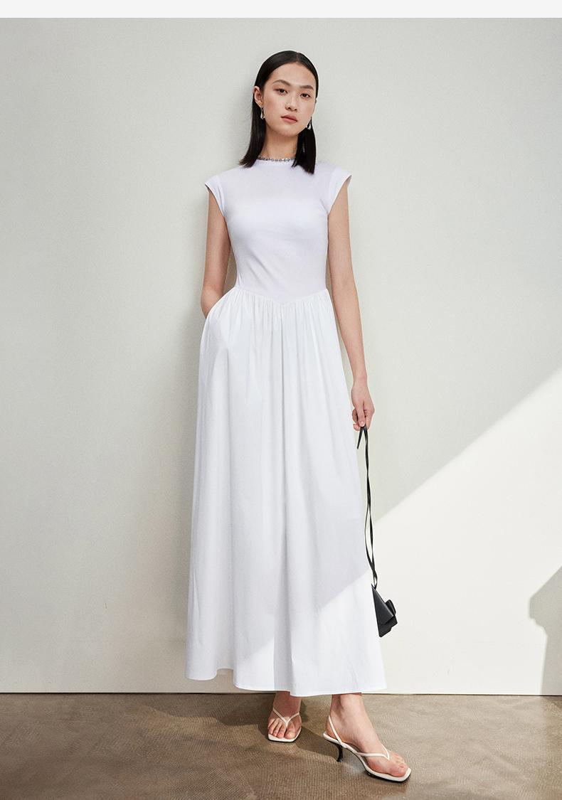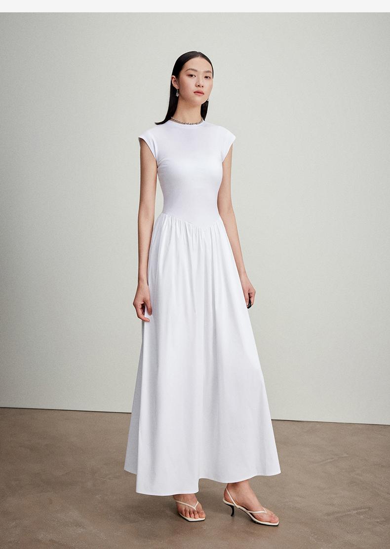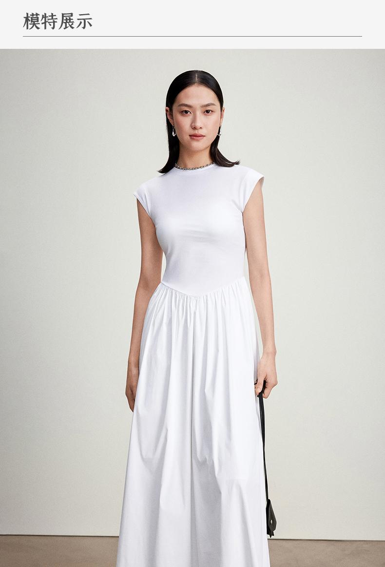 西嘉C+IMPRESS/西嘉高支新疆长绒棉针织拼接防透白色长款连衣裙女春夏LYQ2401093