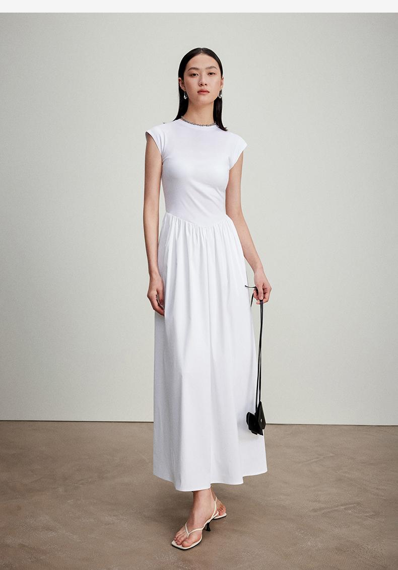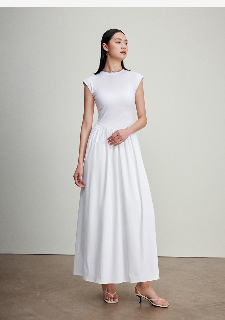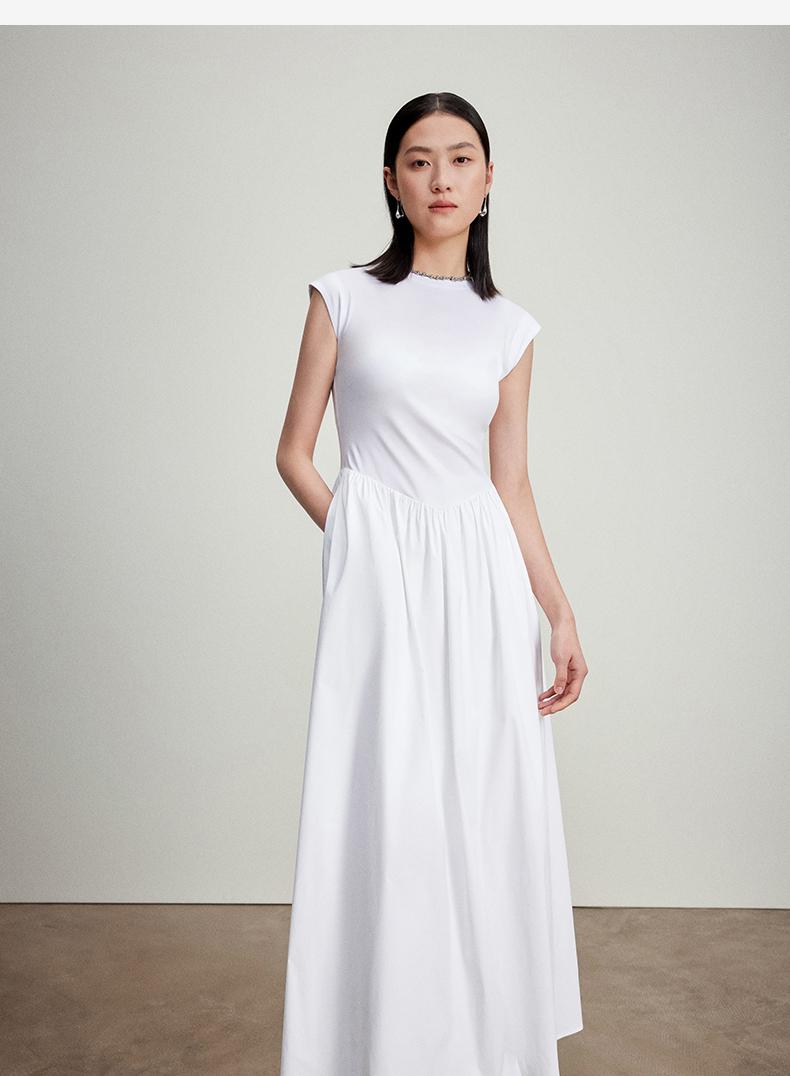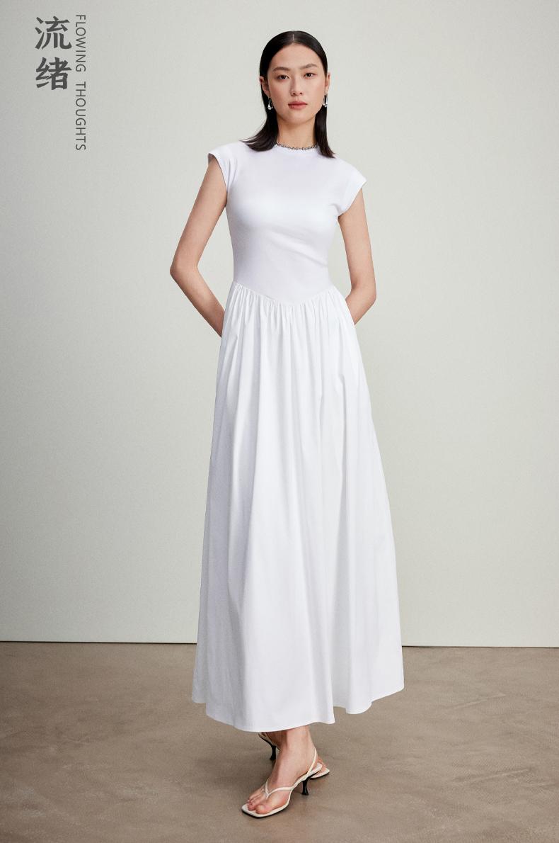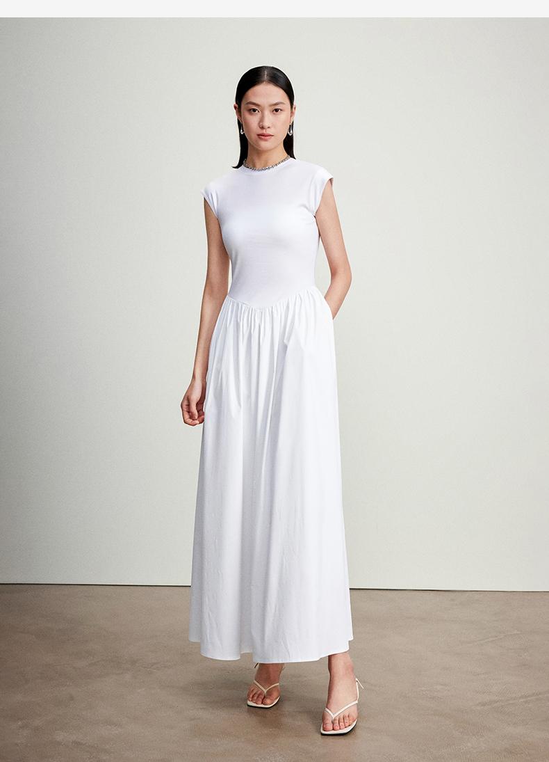 西嘉C+IMPRESS/西嘉高支新疆长绒棉针织拼接防透白色长款连衣裙女春夏LYQ2401093