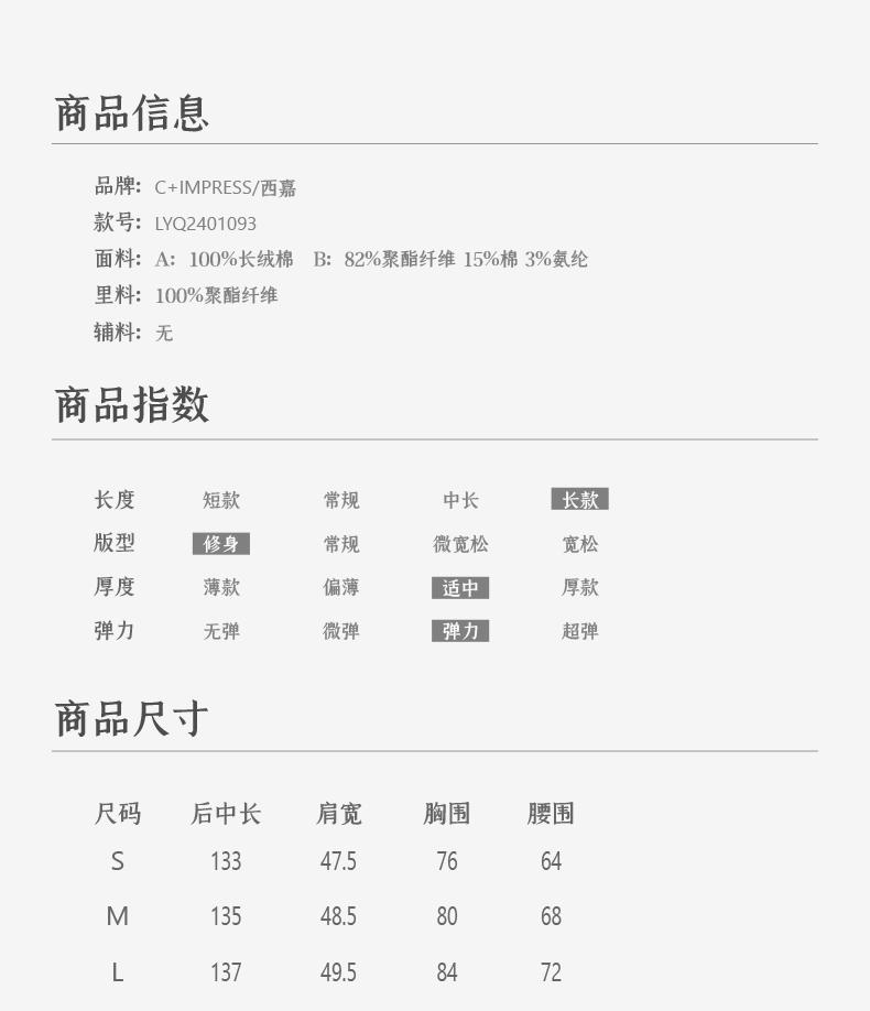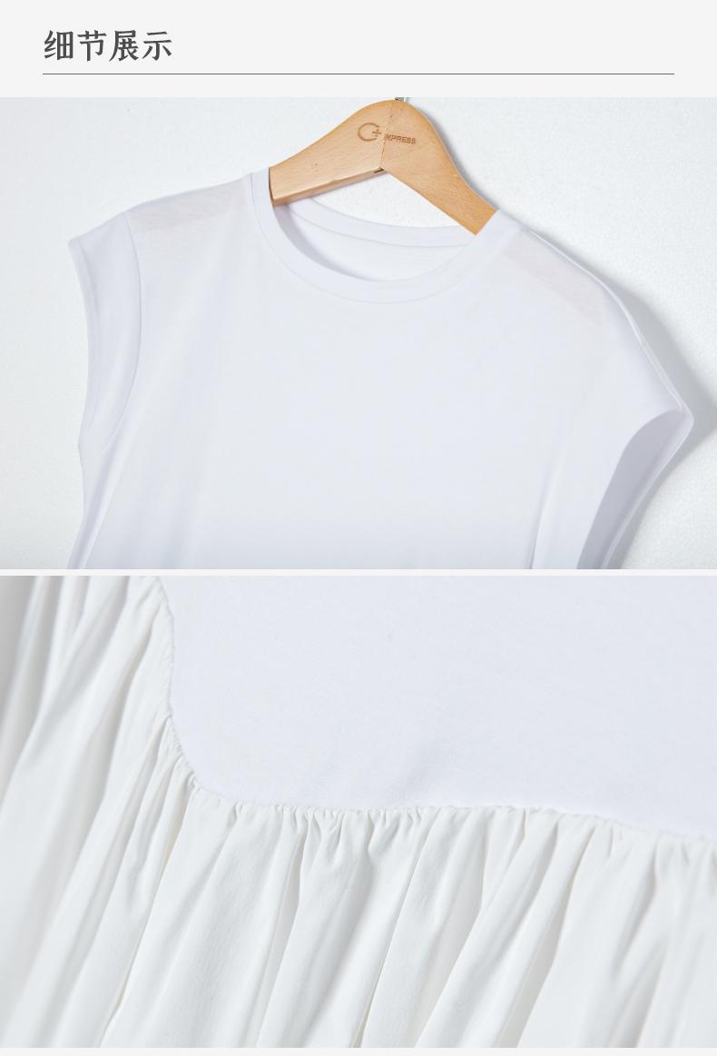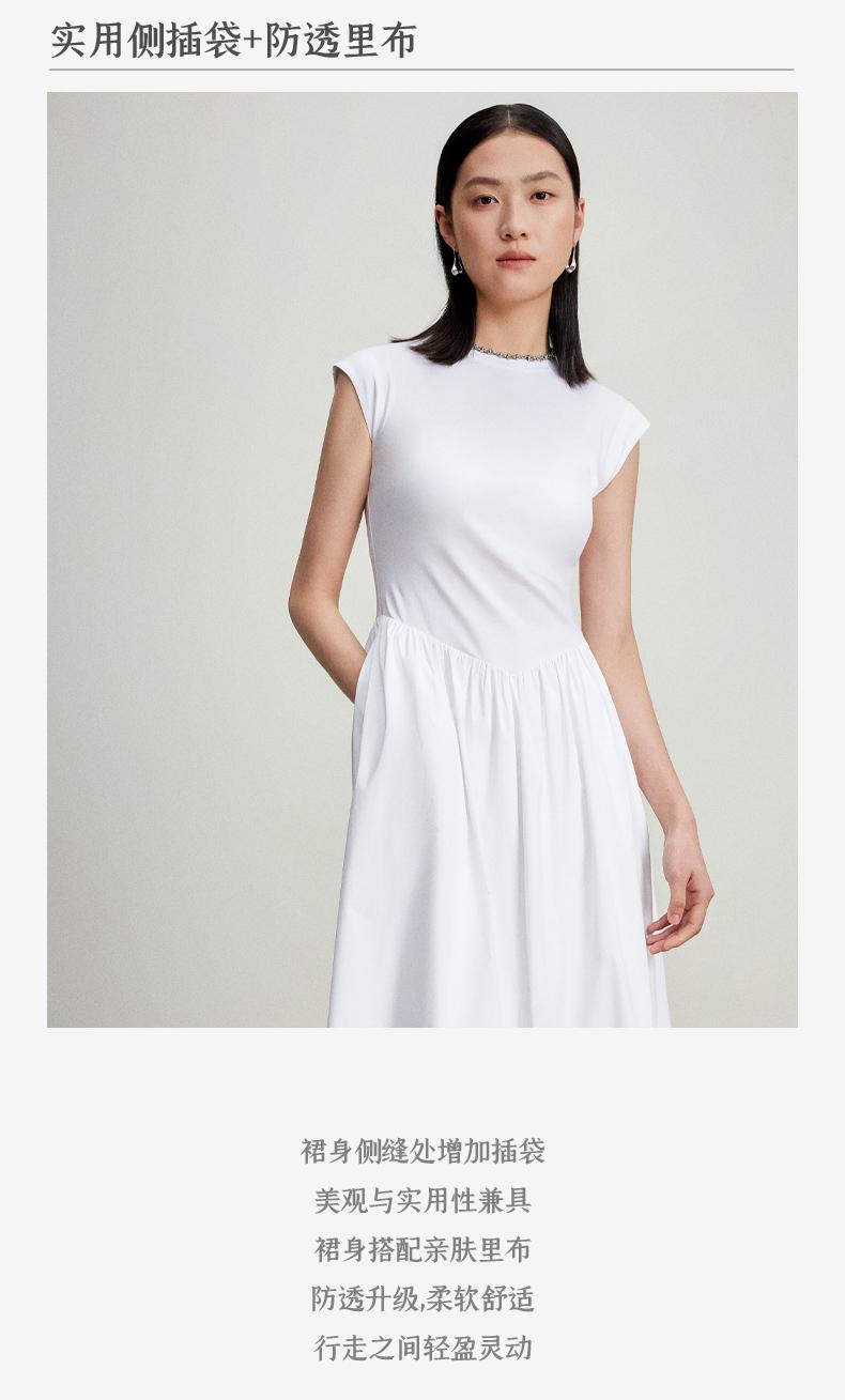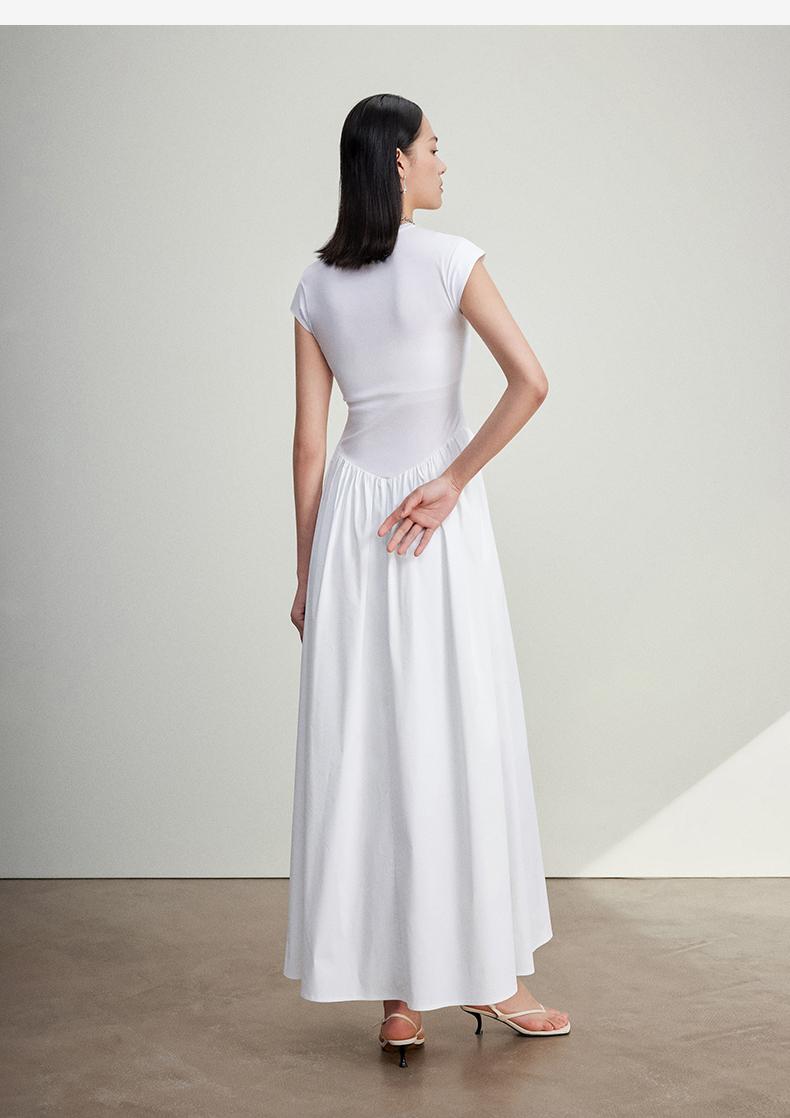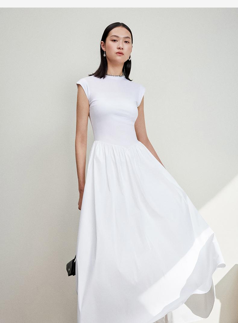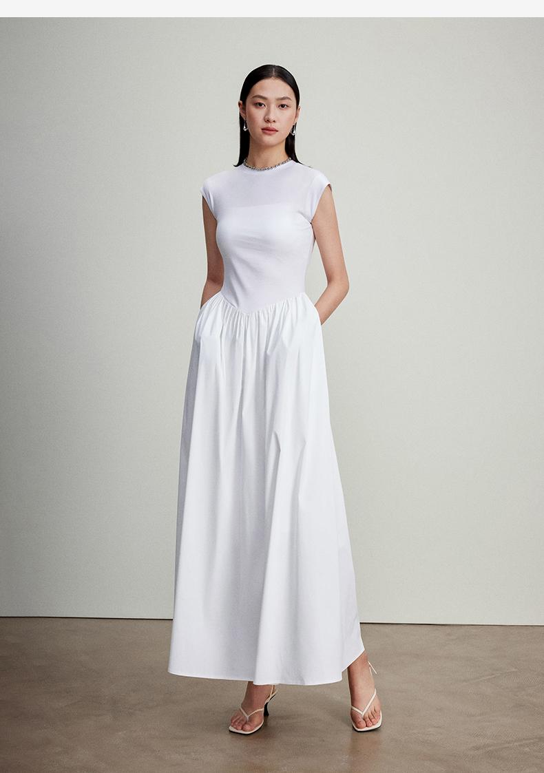 西嘉C+IMPRESS/西嘉高支新疆长绒棉针织拼接防透白色长款连衣裙女春夏LYQ2401093