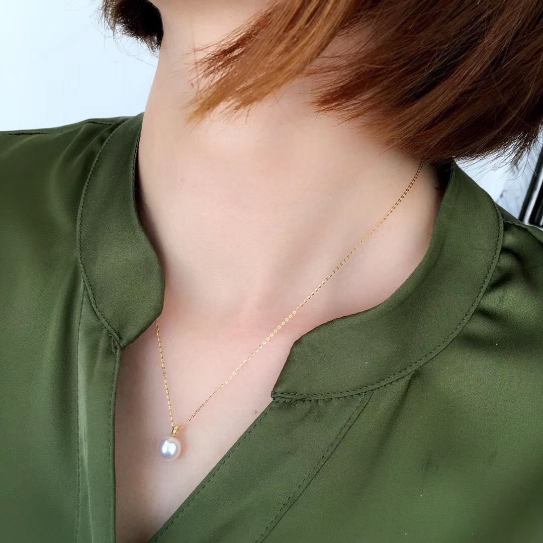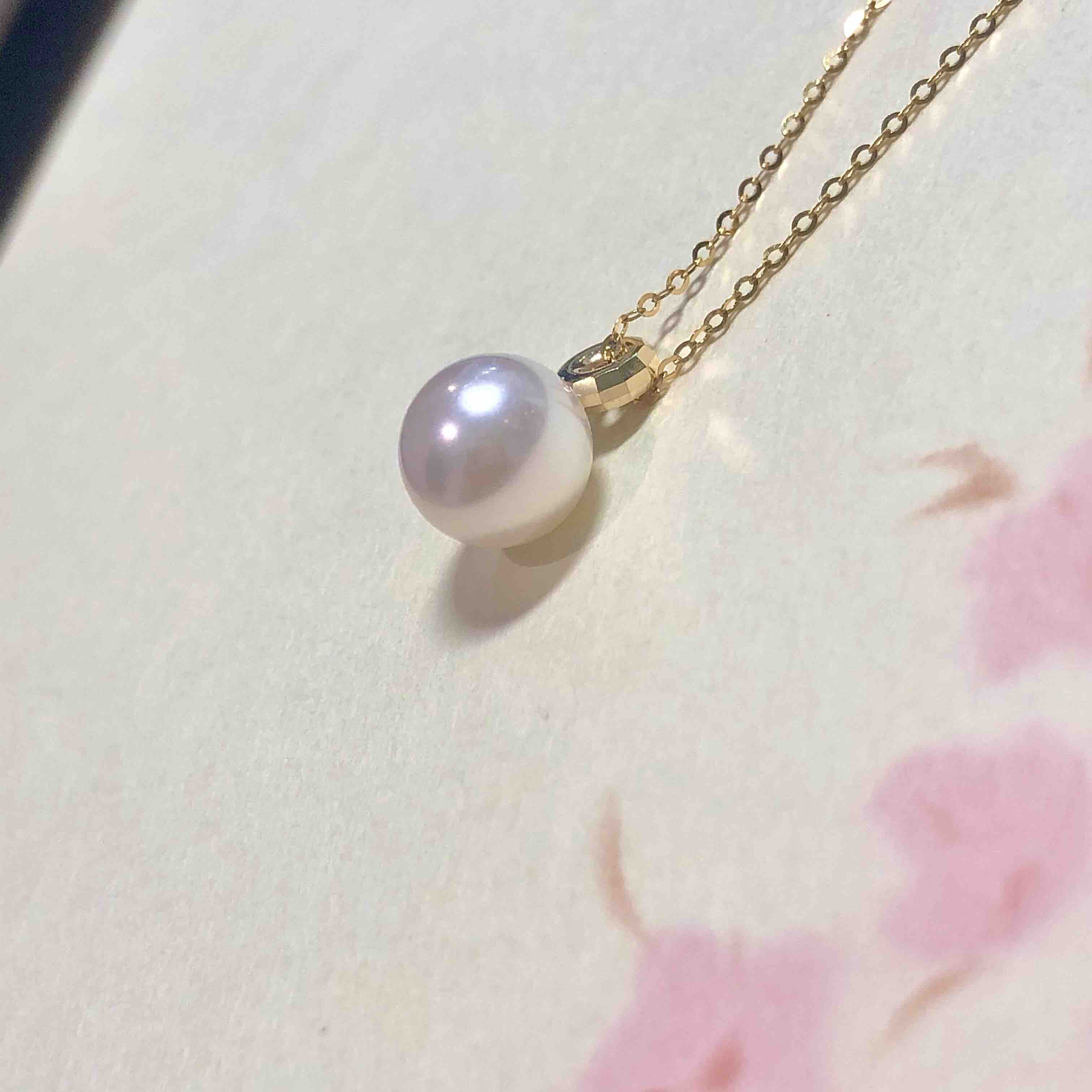 日本Akoya海水珍珠7.5一8mm,极光无瑕,45mm18k金链,时尚百搭