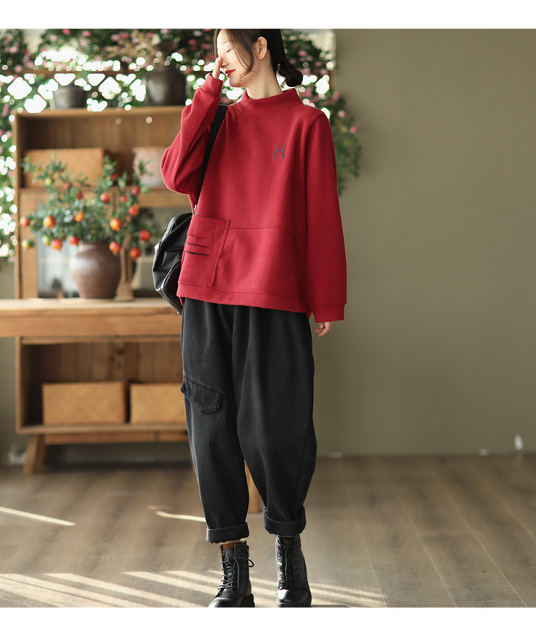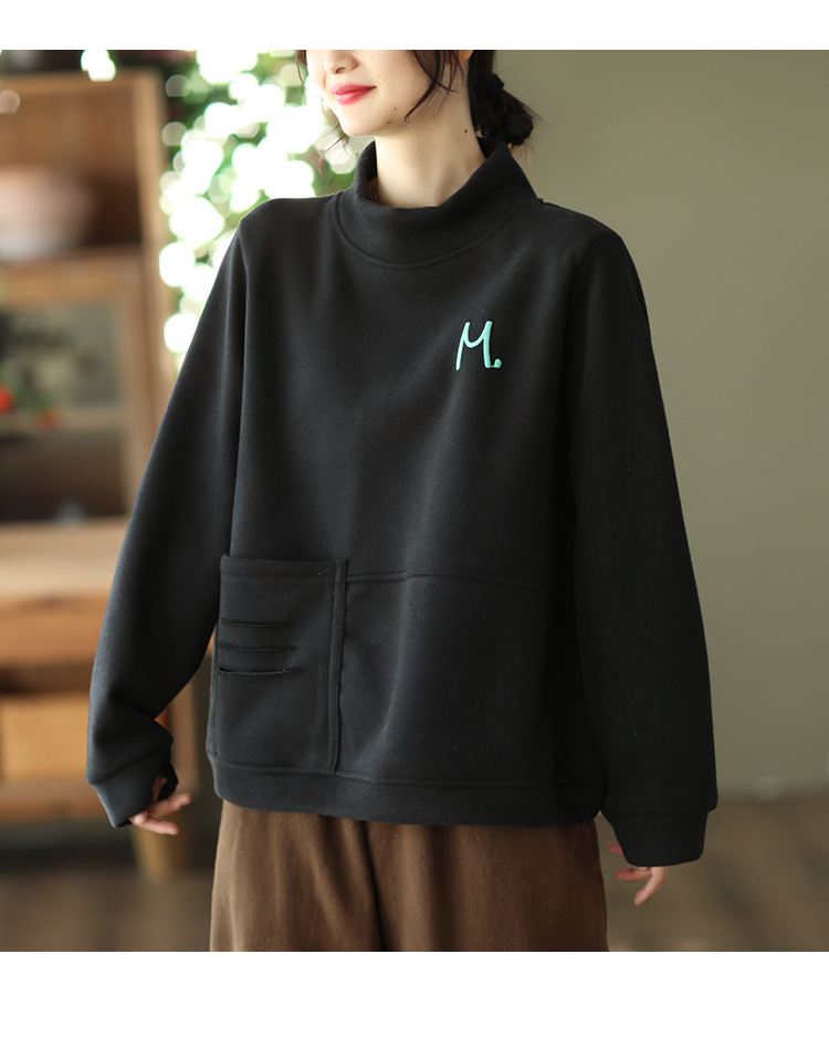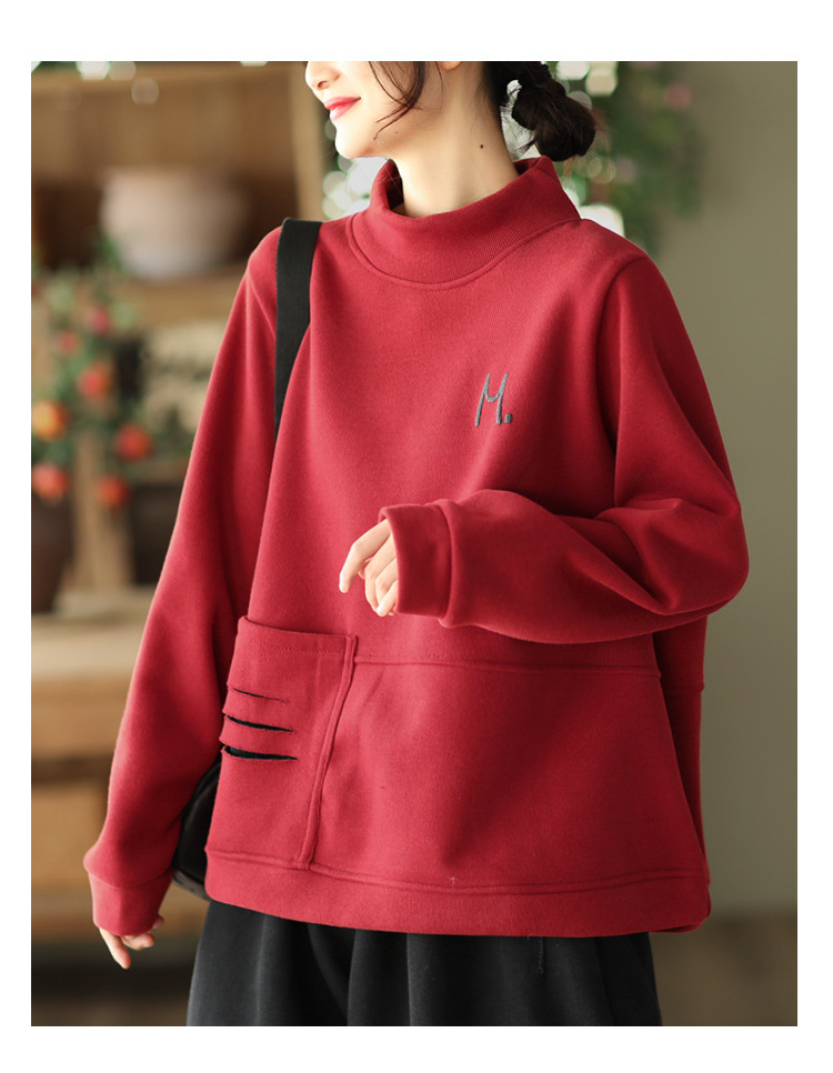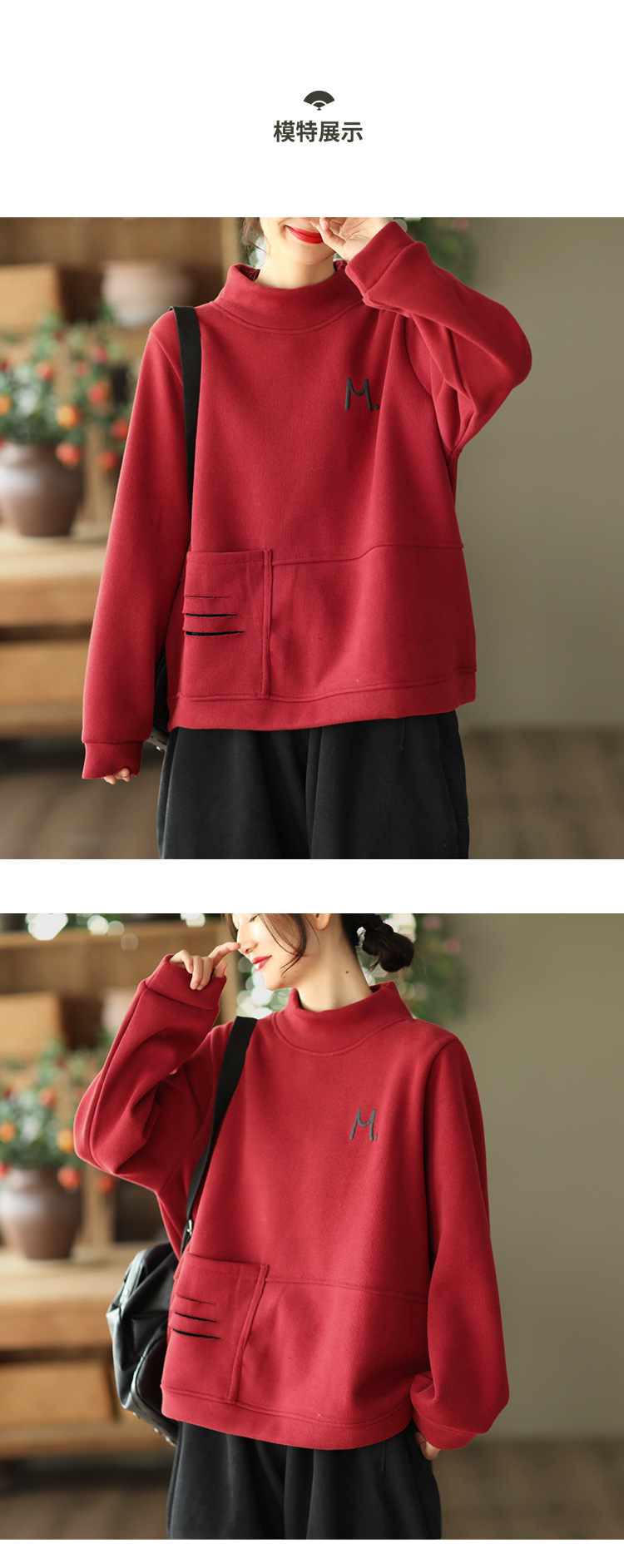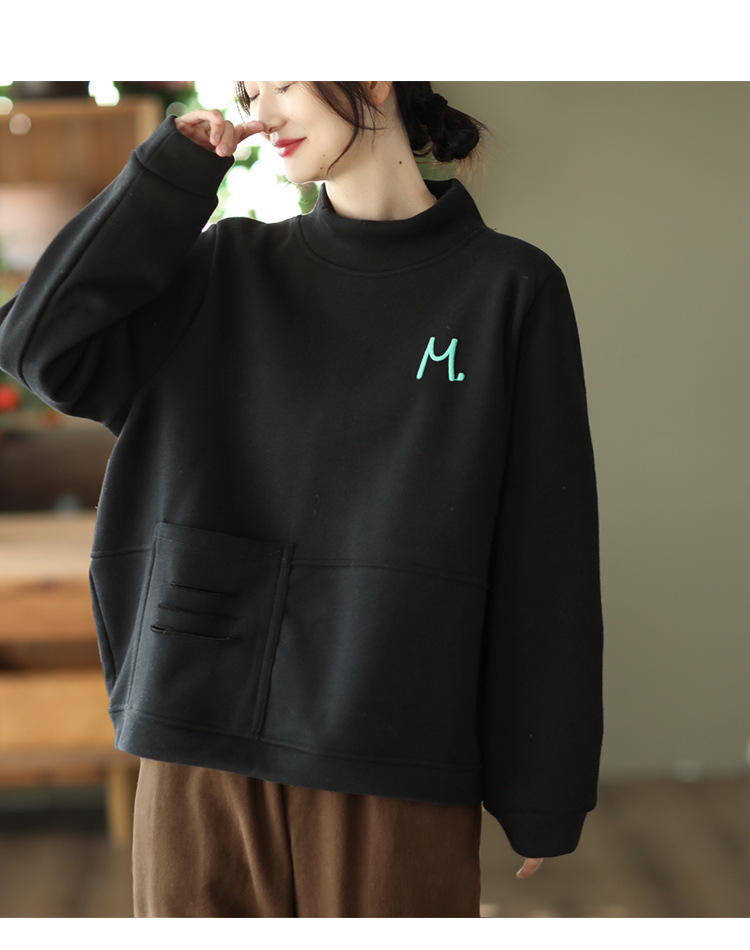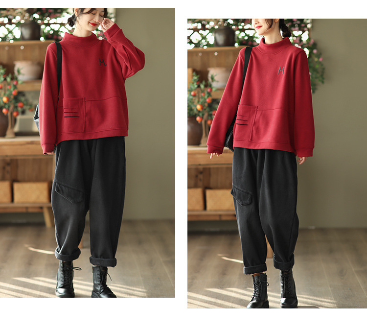 L26564冬季新款加厚保暖套头绒衫女士休闲宽松上衣