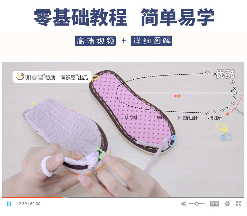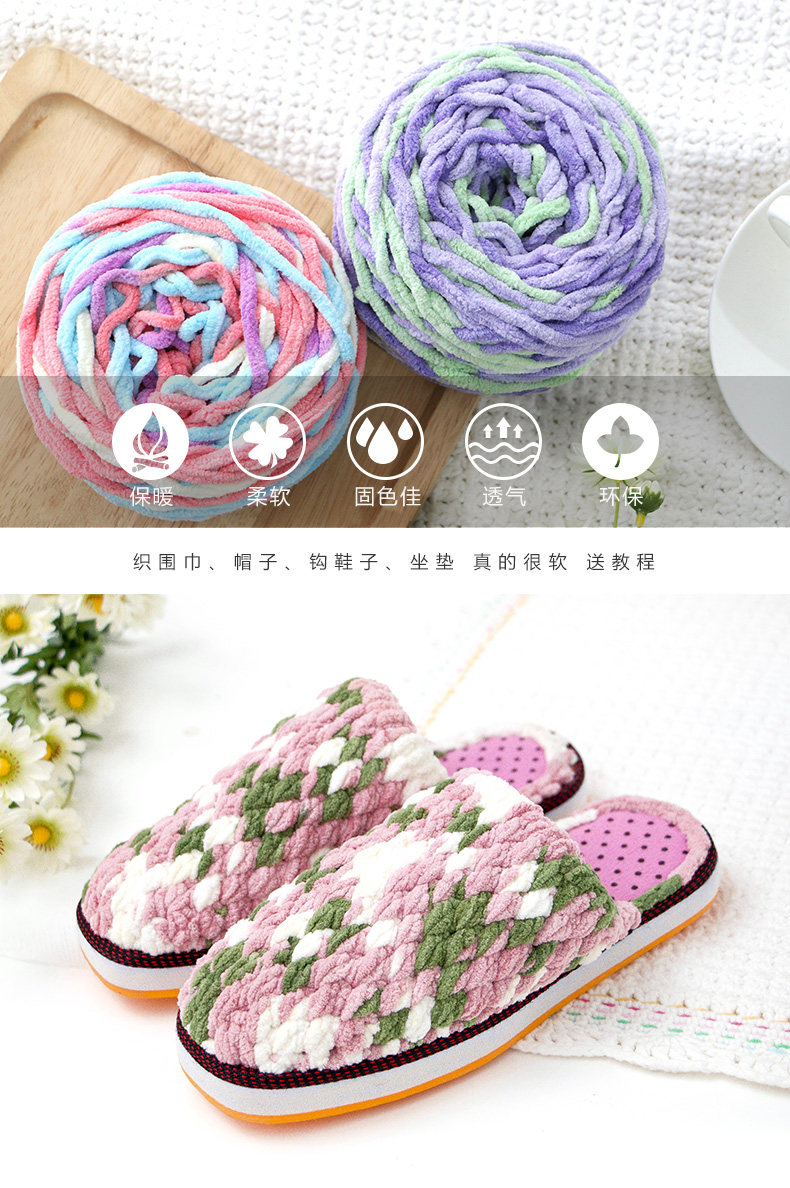 手工diy编织粗毛线冰条线婴儿宝宝线织围巾线勾鞋子送钩拖鞋教程