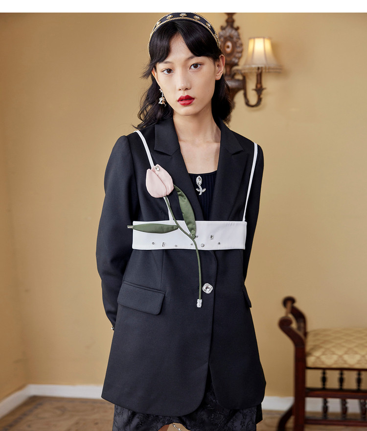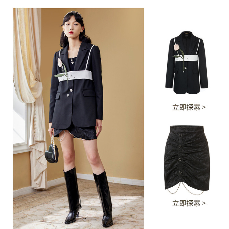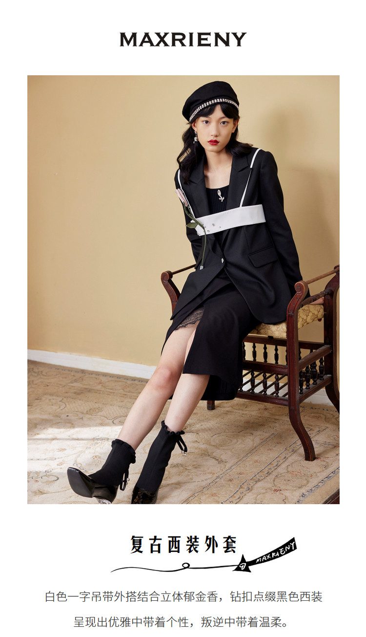 MAXRIENY设计感吊带西服外套2022秋季一粒扣西装上衣MC87JA508A90