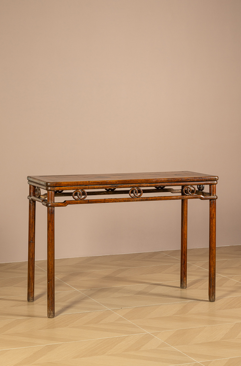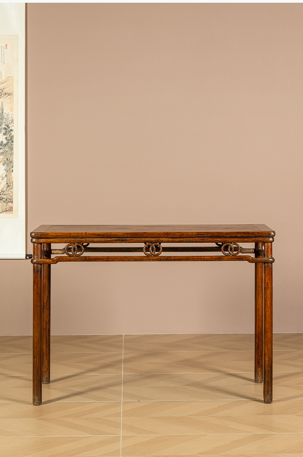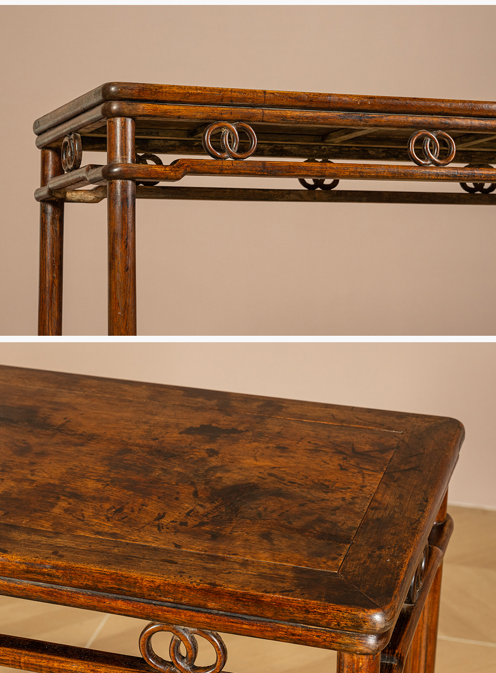 清 红木券口靠背玫瑰椅成套(两椅一几)