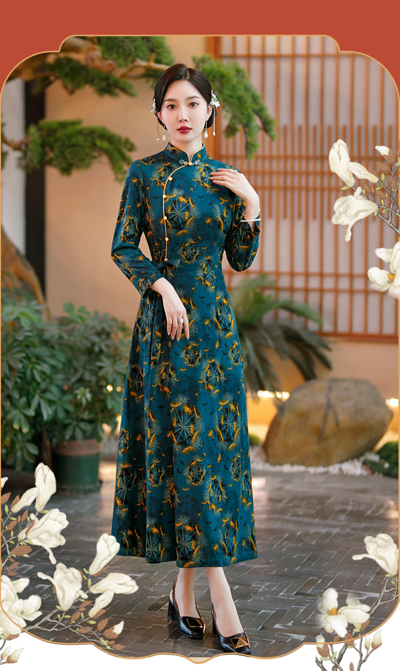 SYG-667秋冬长款遮肚子连衣裙新款气质减龄女神范高端印花打底裙子