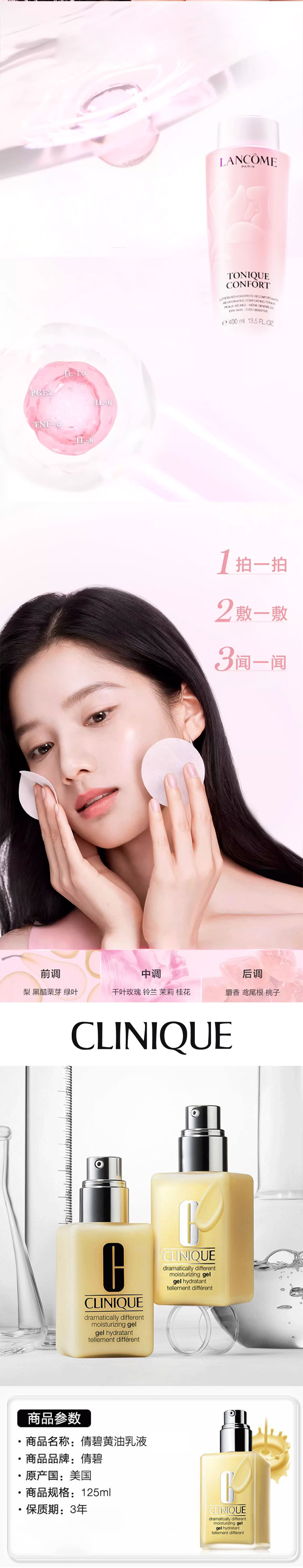 补水炸弹【1210跨境仓发货 】兰蔻新版爽肤大粉水400ml+倩碧黄油乳液125ml