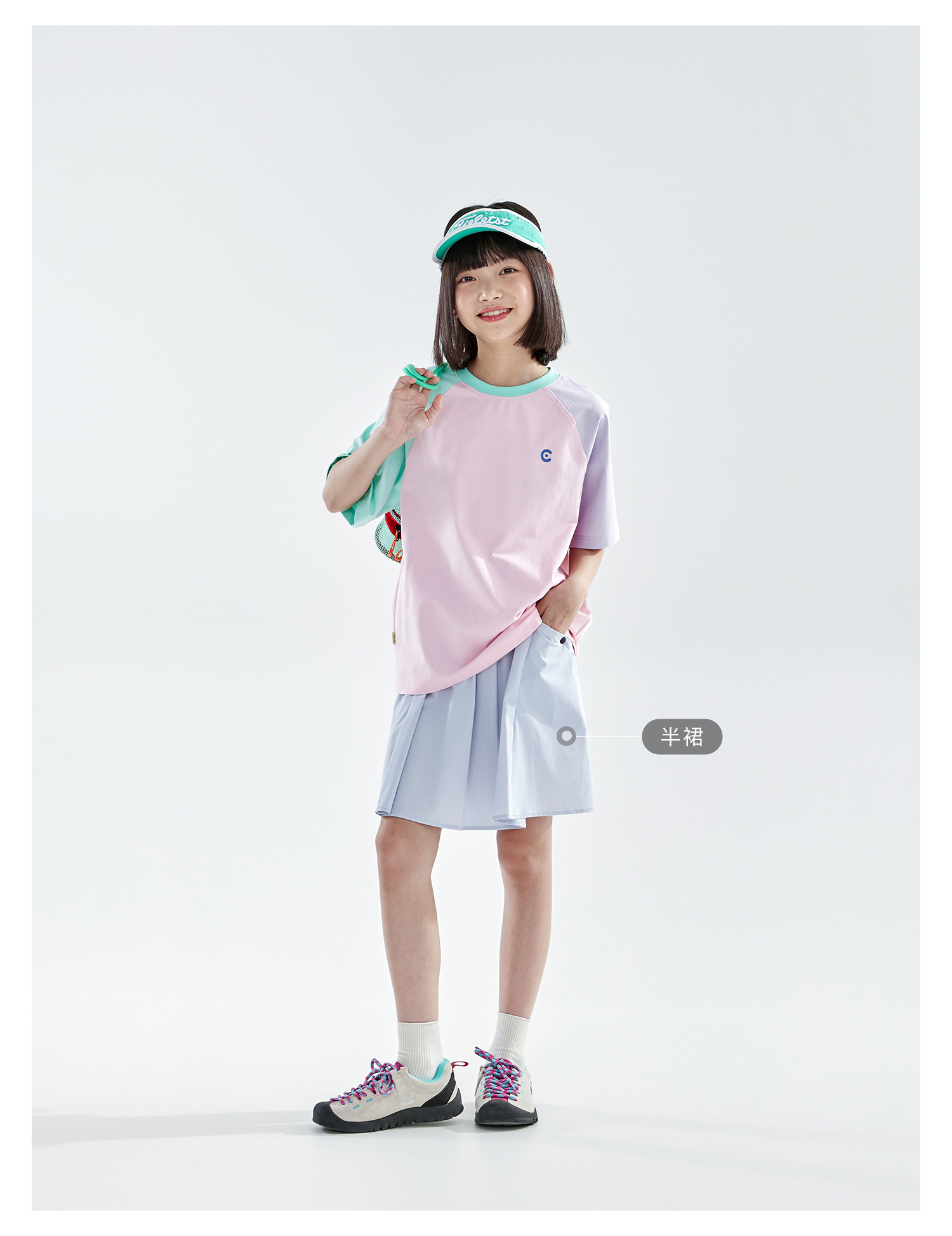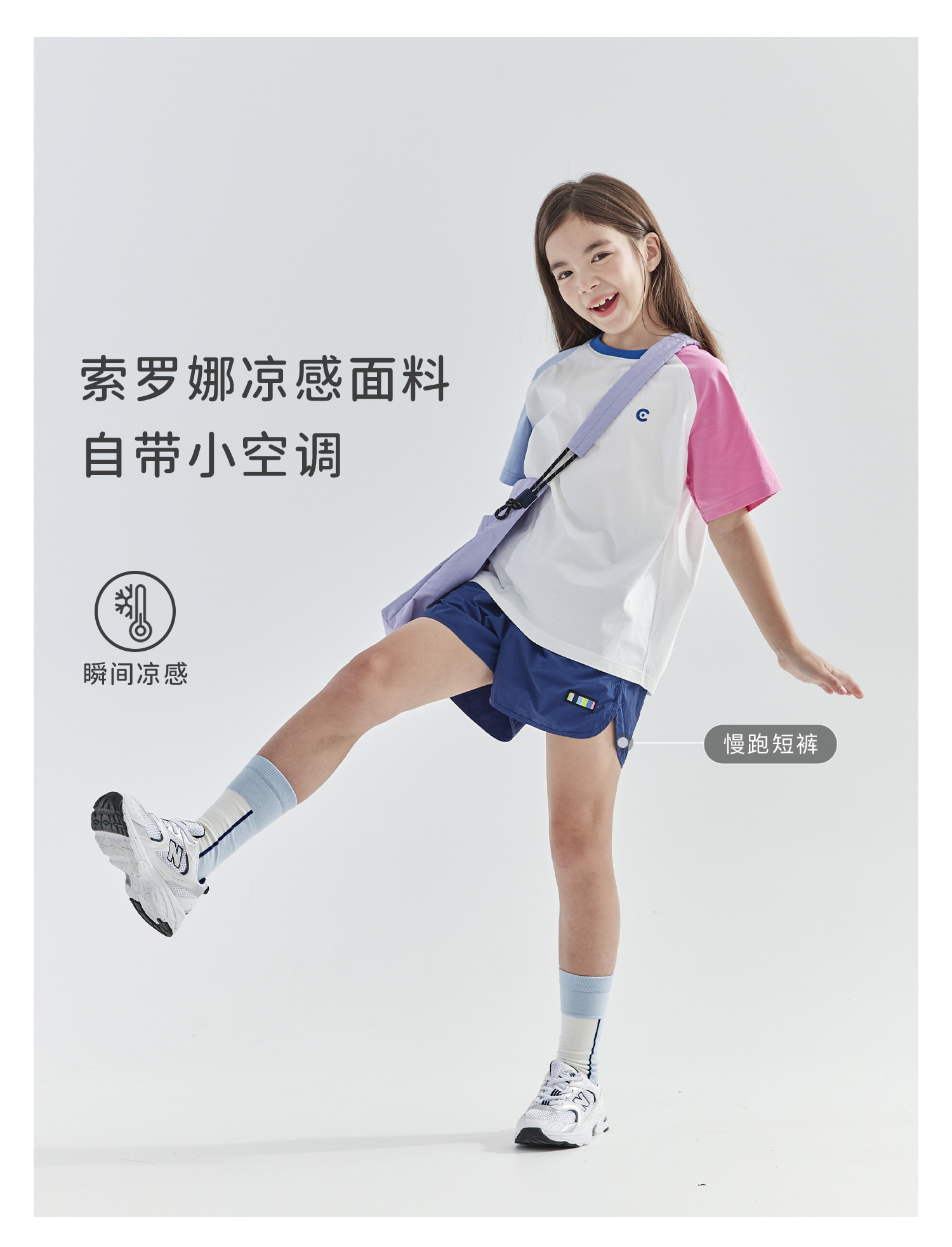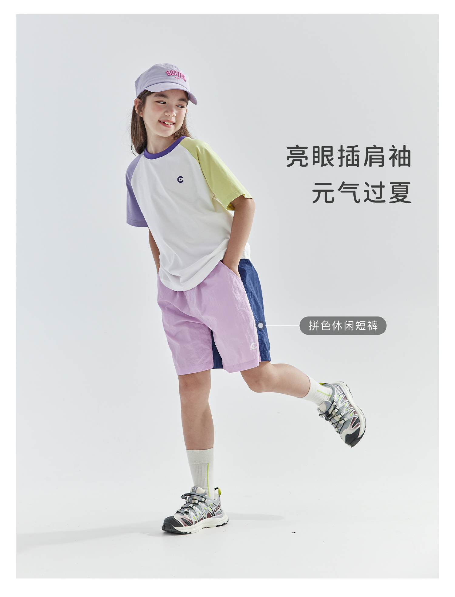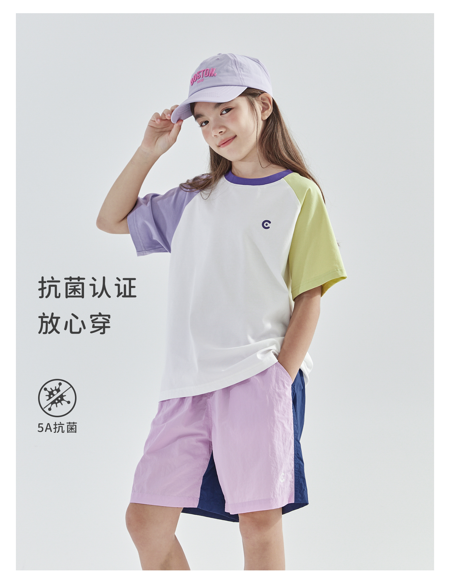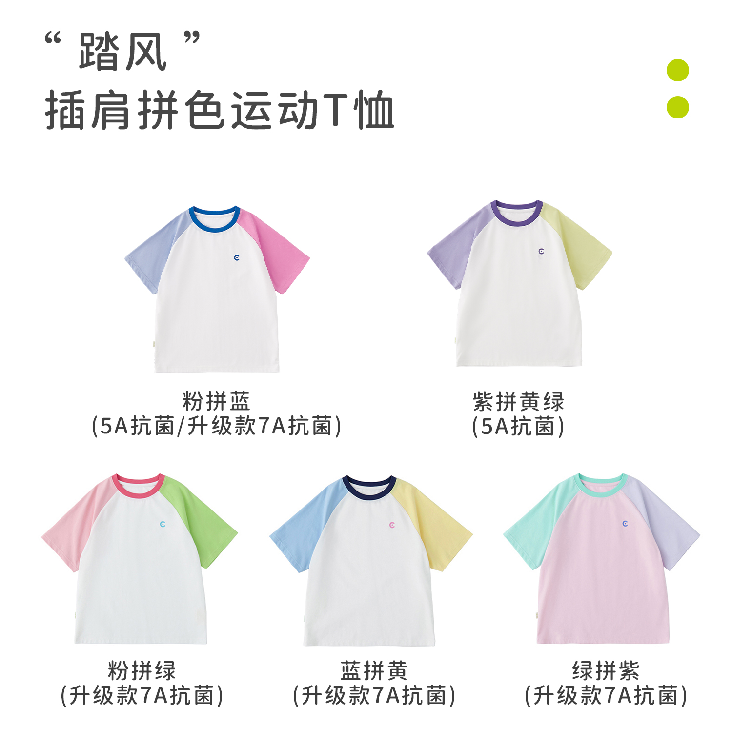 绿拼紫 粉拼绿 蓝拼黄-7A抗菌预售5.1发 粉拼蓝-5A抗菌 紫拼黄绿-5A抗菌预售5.12发 cicochild2025年夏季新款女童插肩拼色运动T恤中大童凉感抗菌短袖
