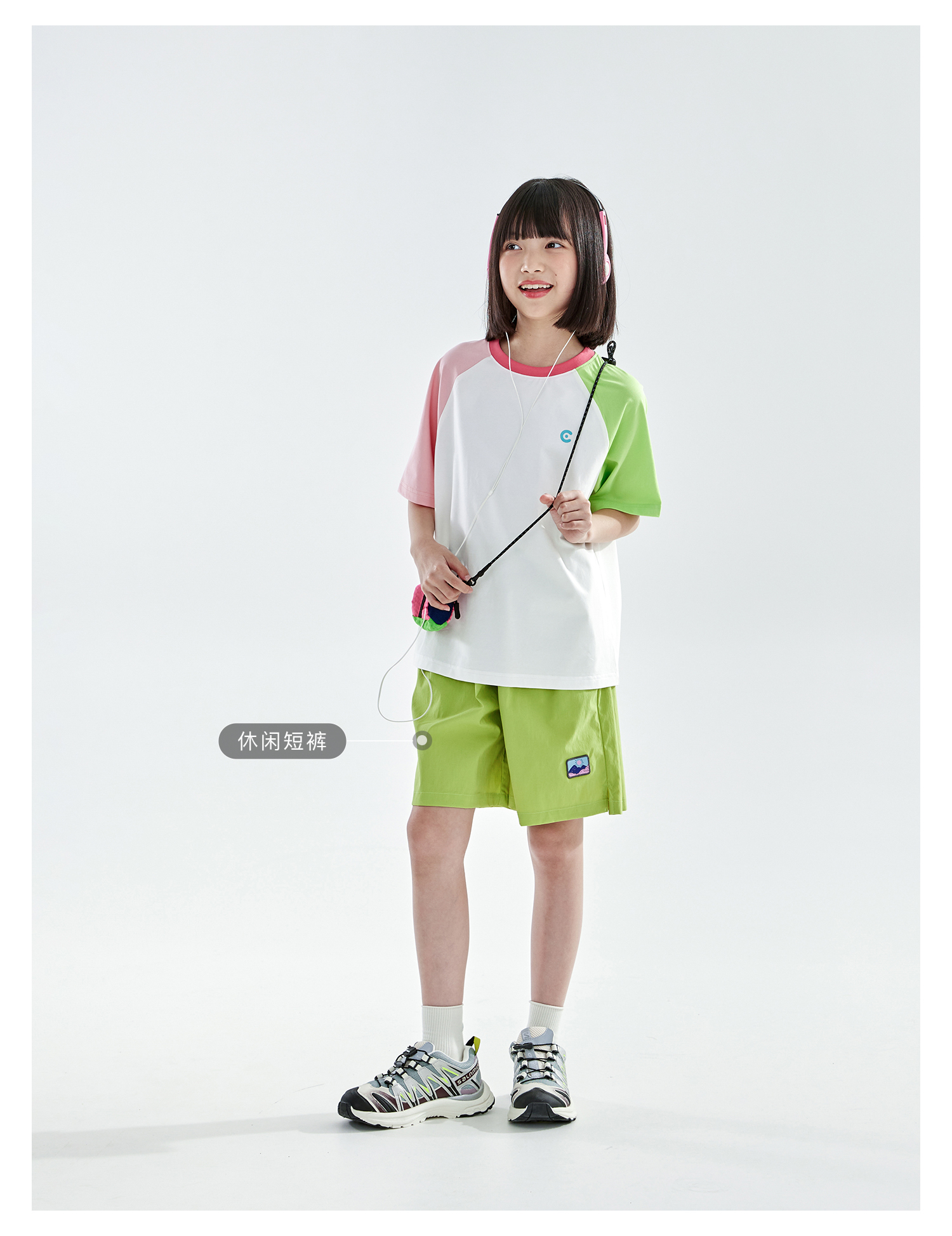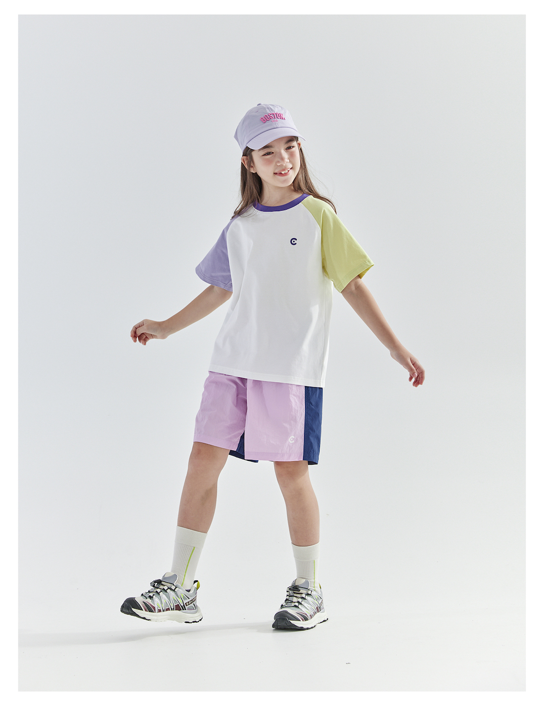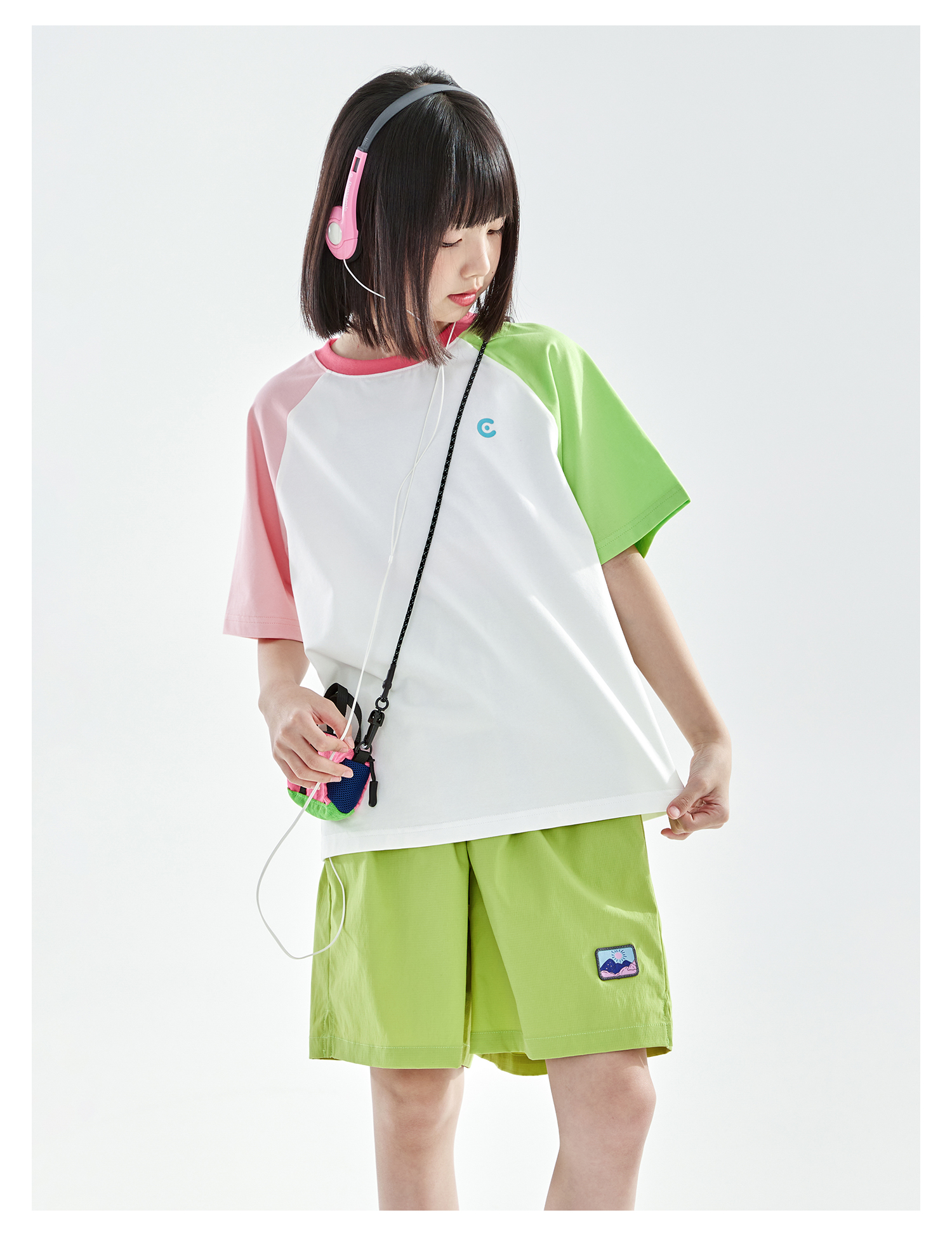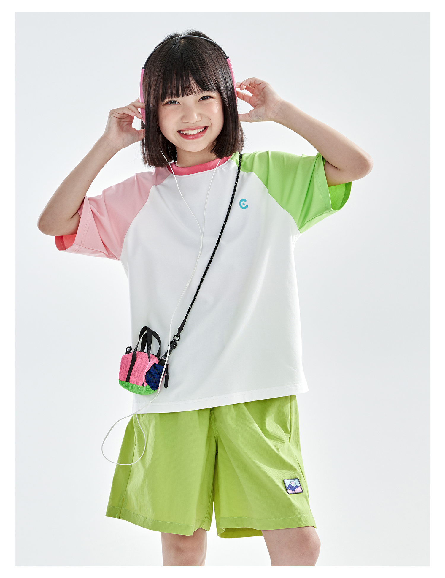 绿拼紫 粉拼绿 蓝拼黄-7A抗菌预售5.1发 粉拼蓝-5A抗菌 紫拼黄绿-5A抗菌预售5.12发 cicochild2025年夏季新款女童插肩拼色运动T恤中大童凉感抗菌短袖