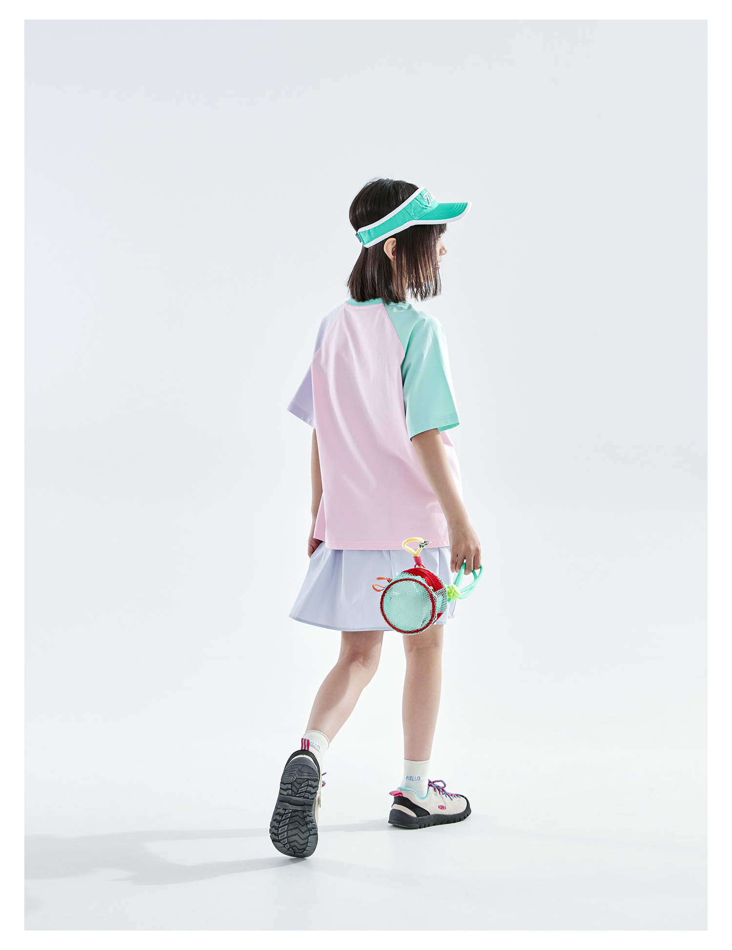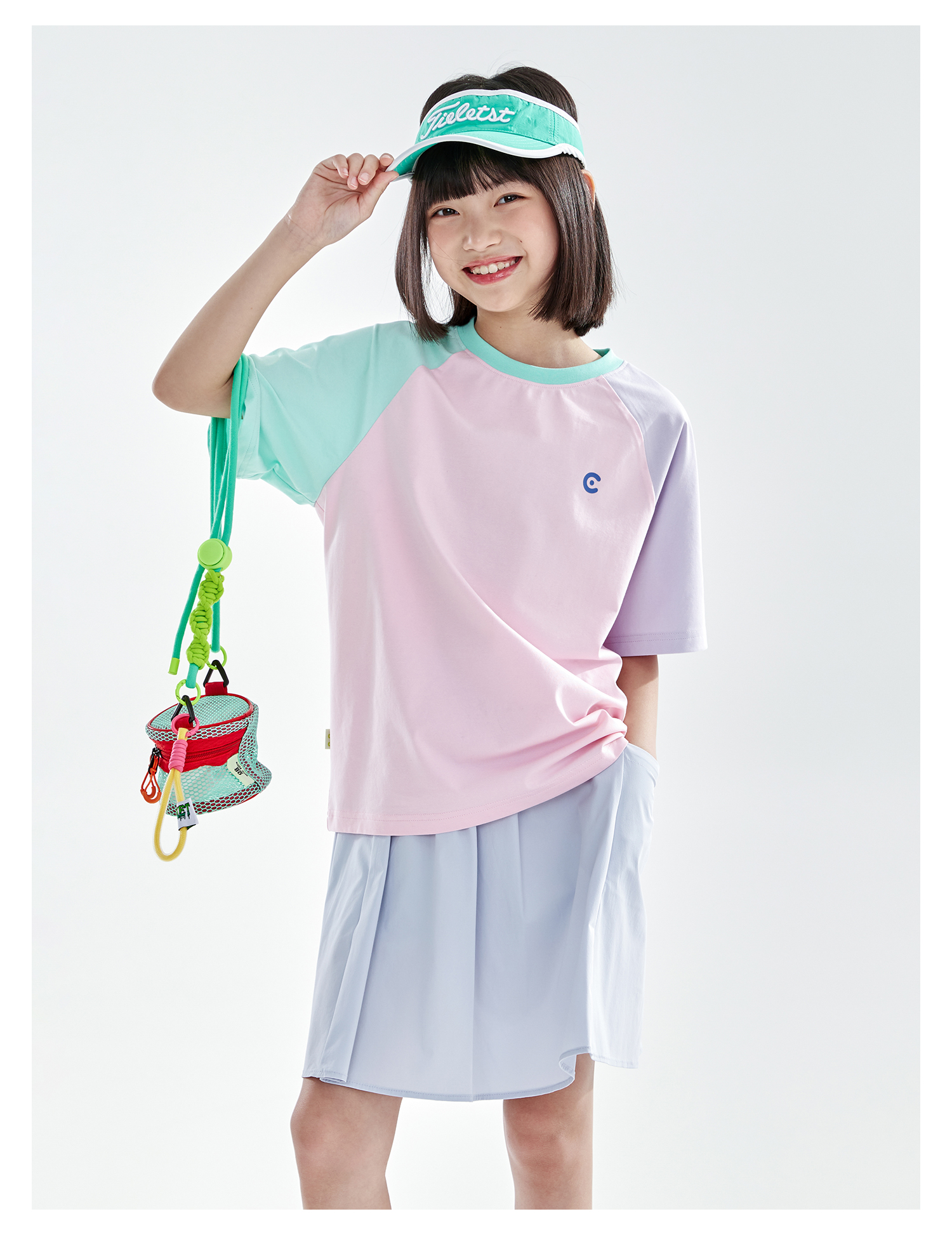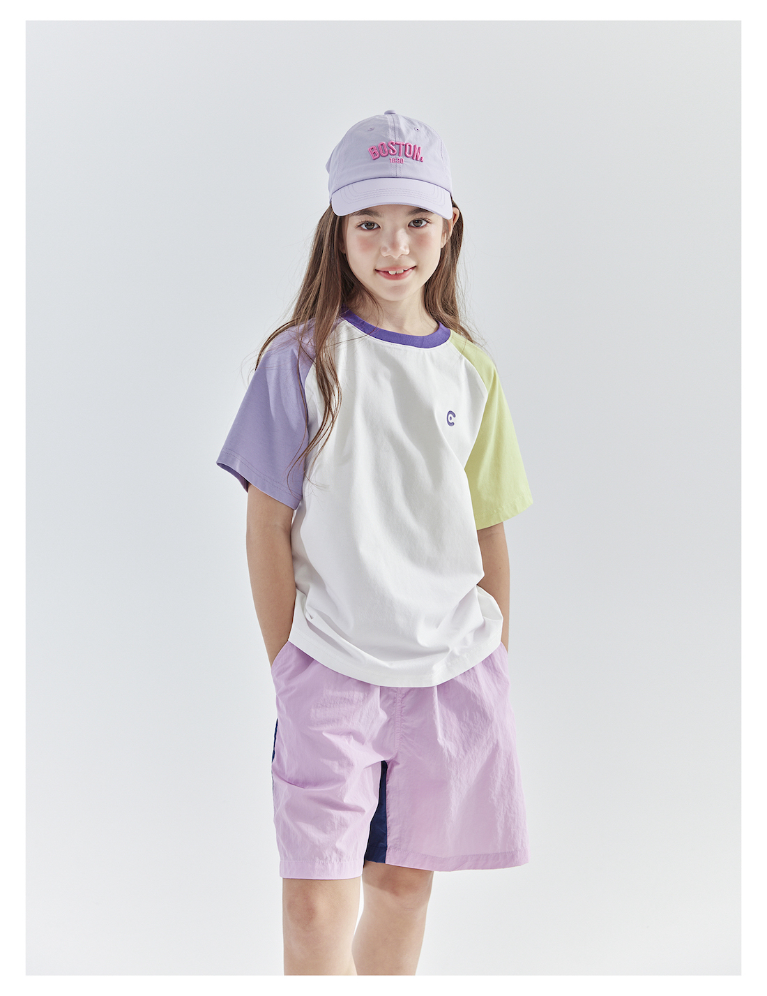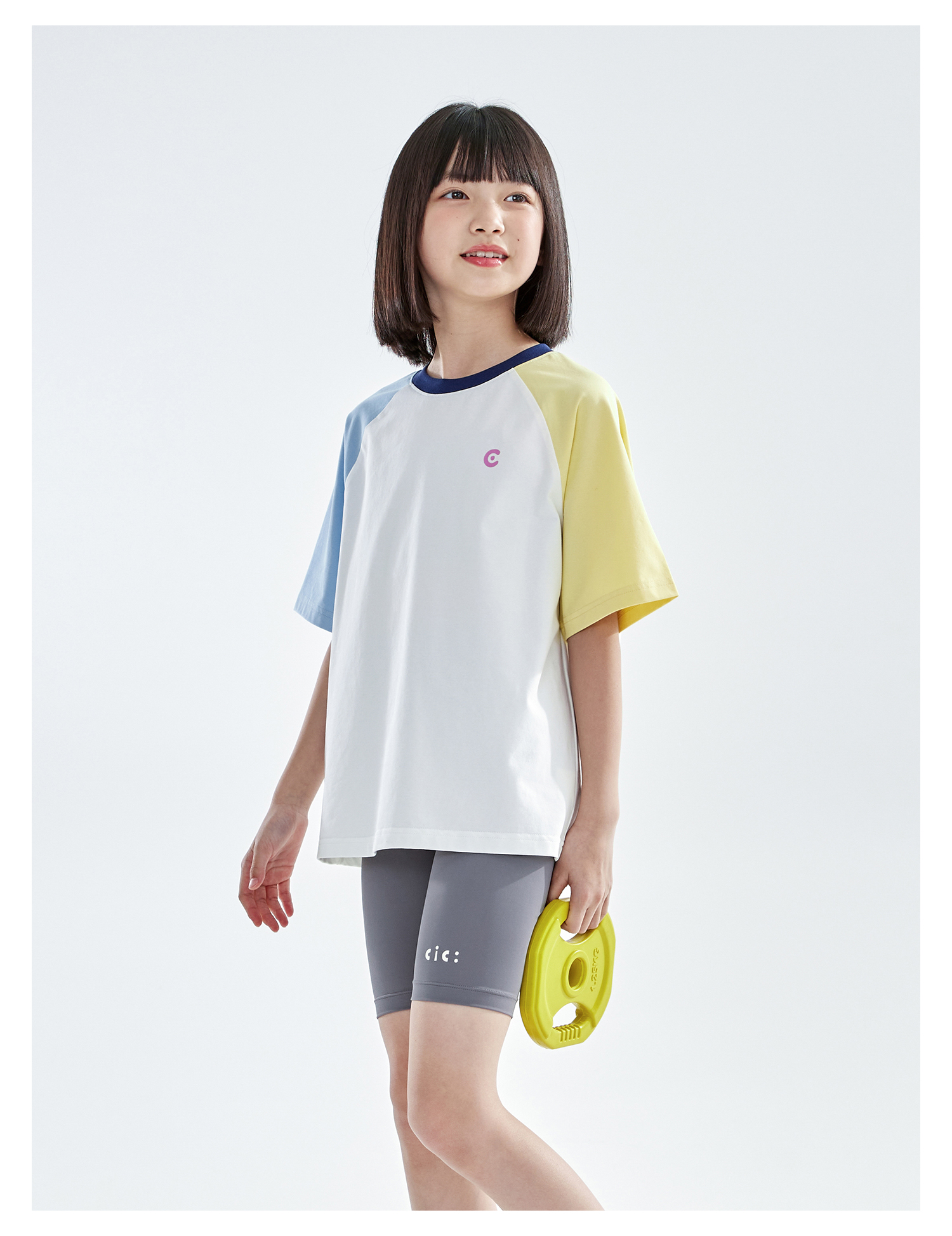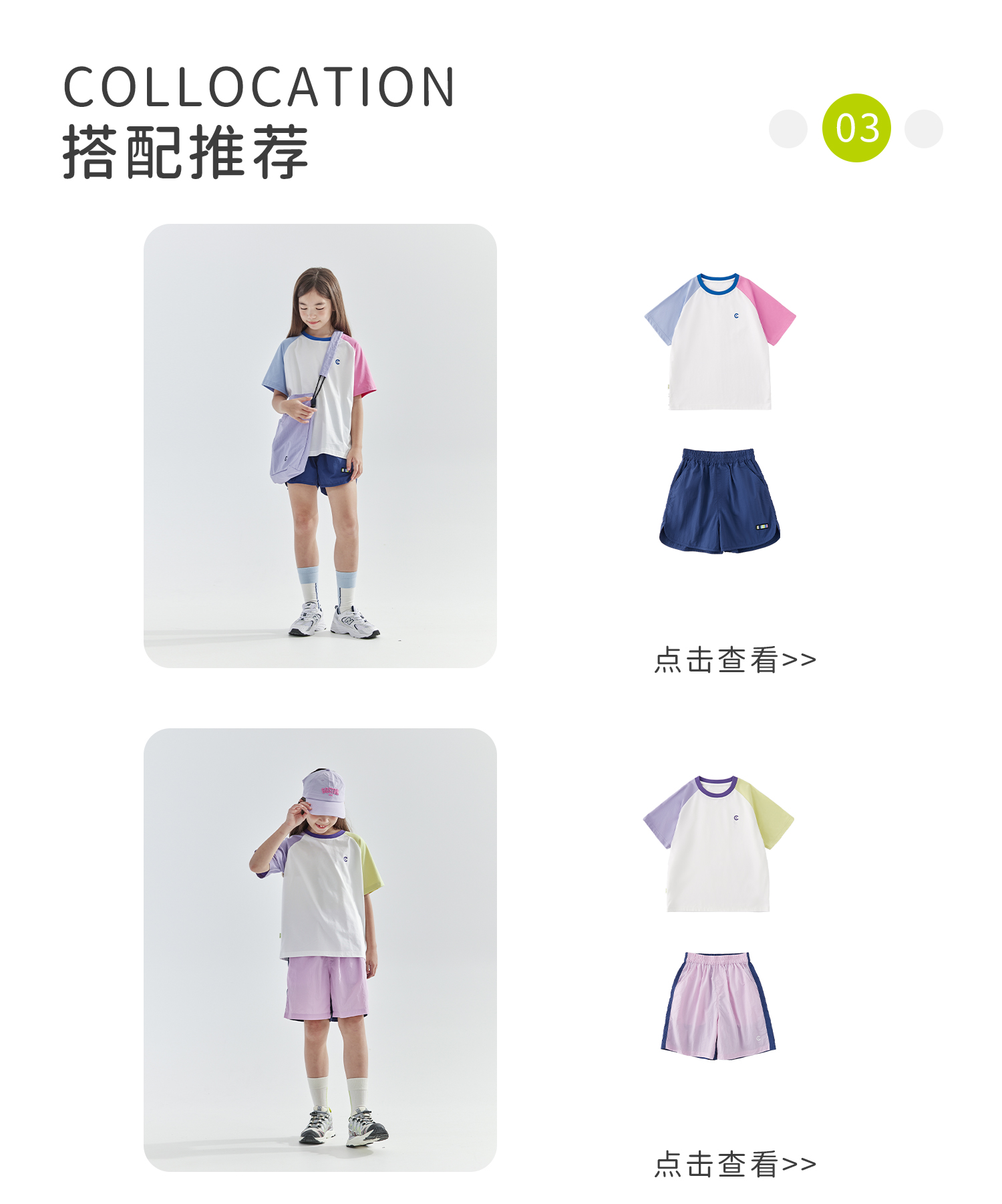 绿拼紫 粉拼绿 蓝拼黄-7A抗菌预售5.1发 粉拼蓝-5A抗菌 紫拼黄绿-5A抗菌预售5.12发 cicochild2025年夏季新款女童插肩拼色运动T恤中大童凉感抗菌短袖