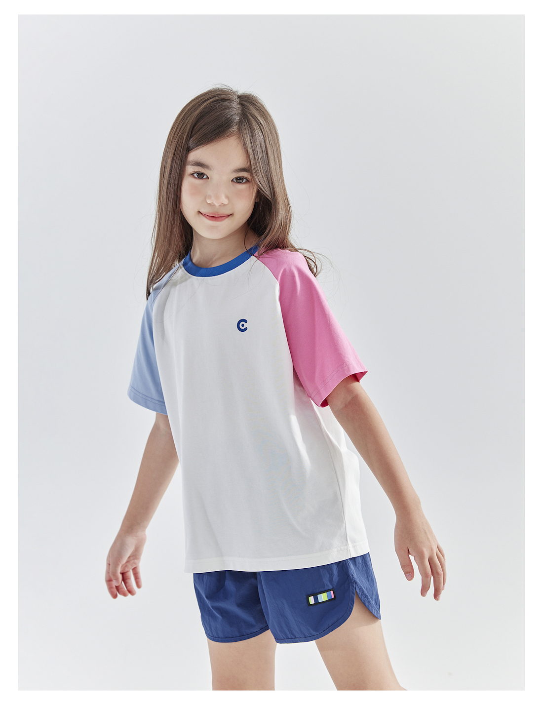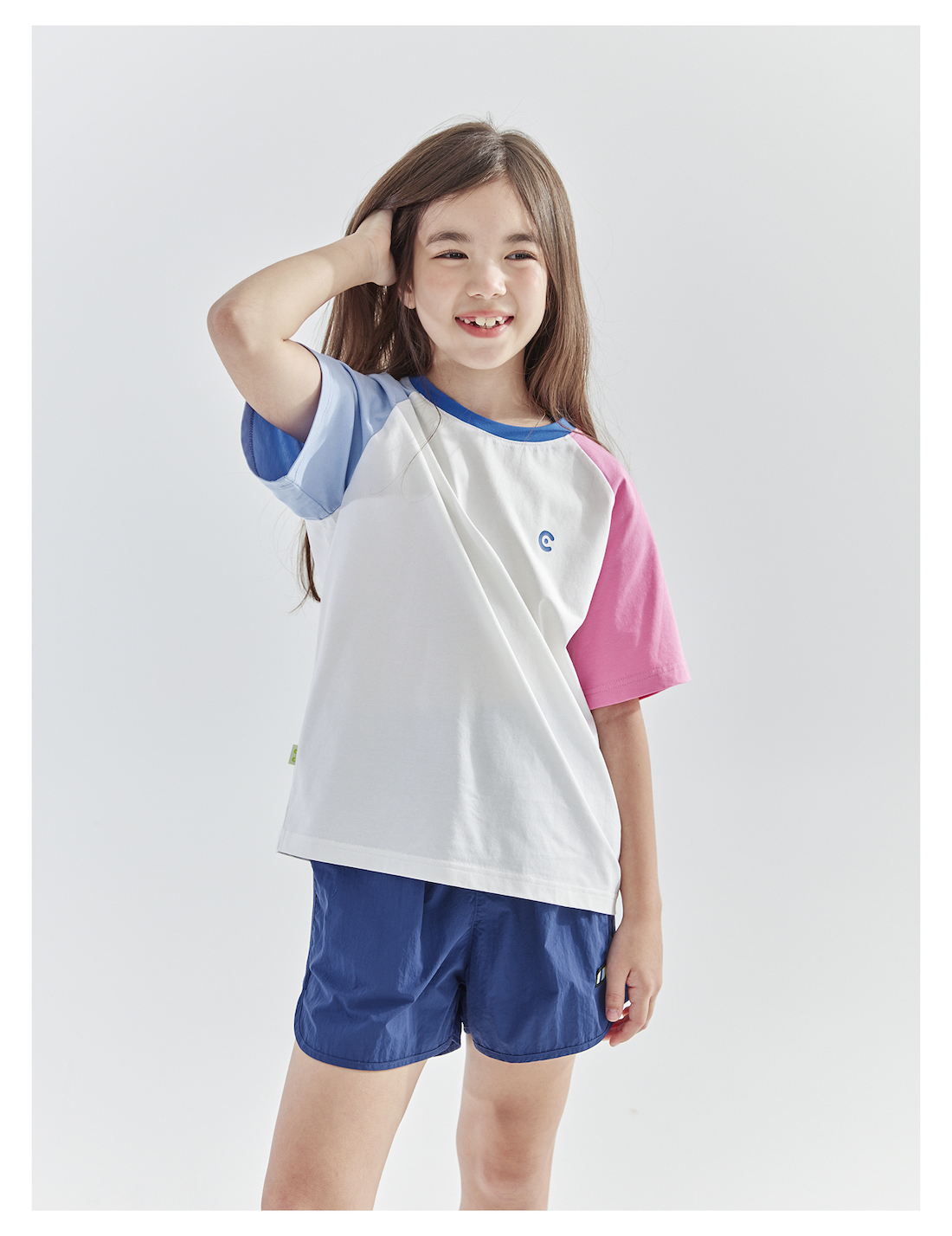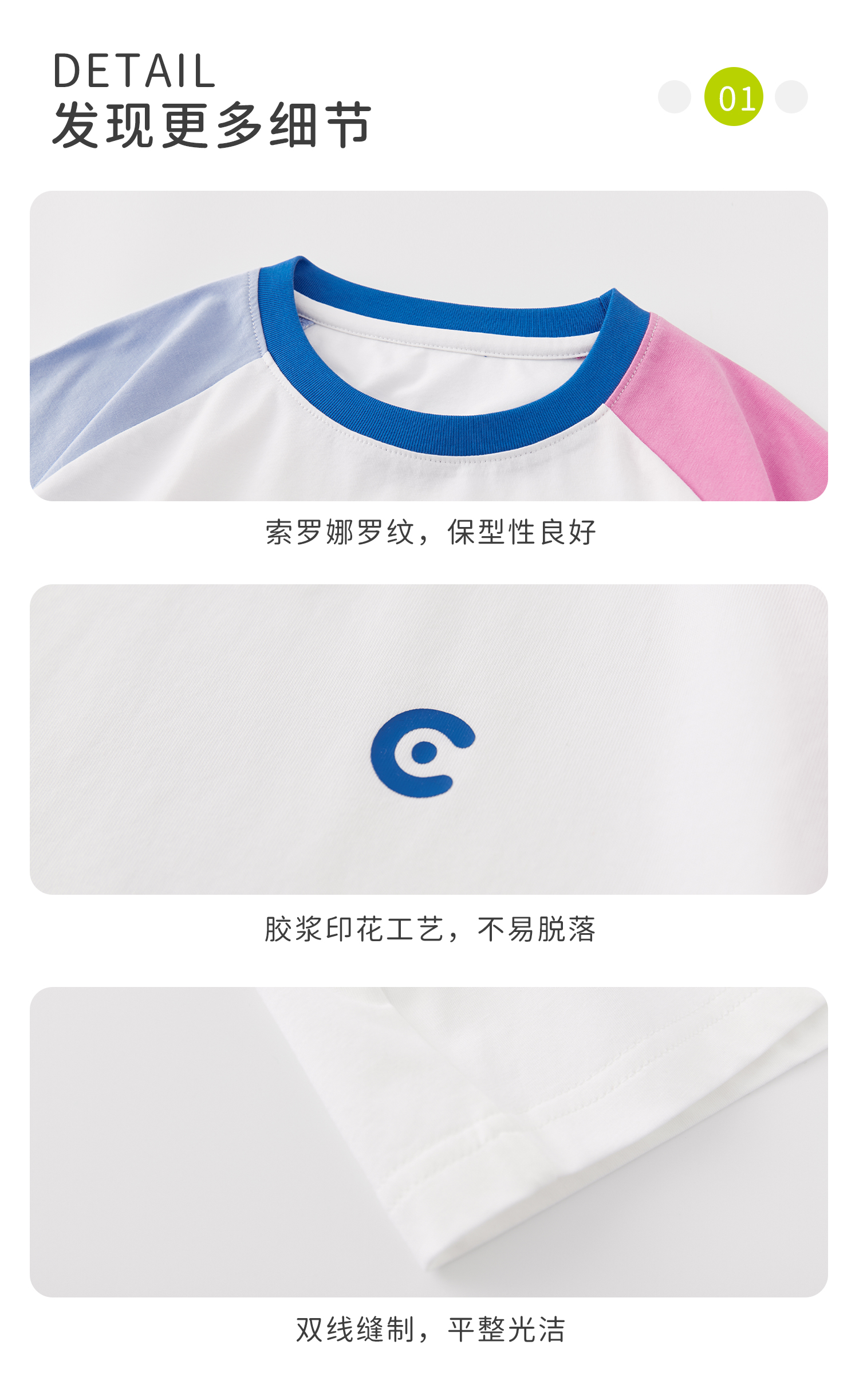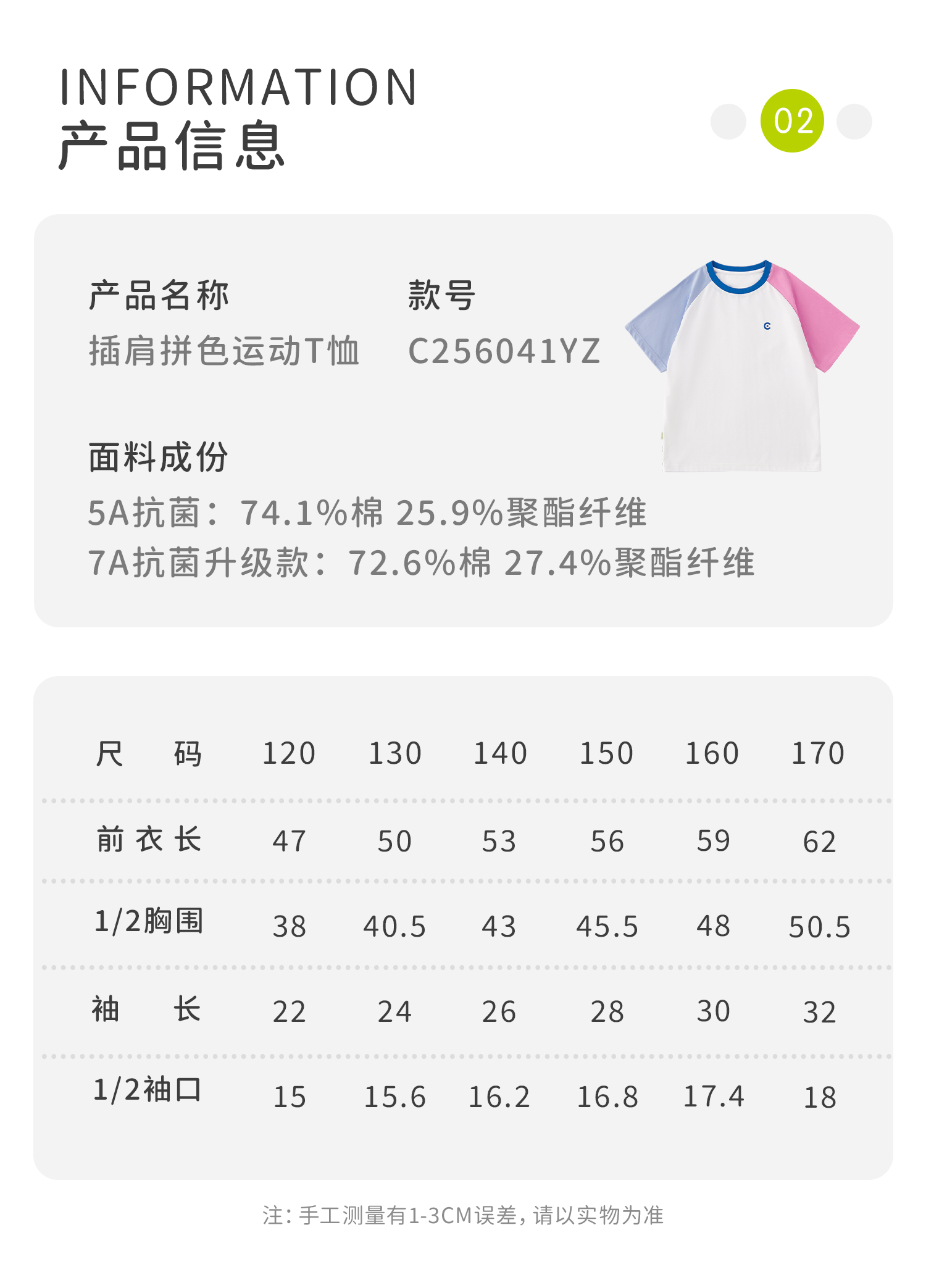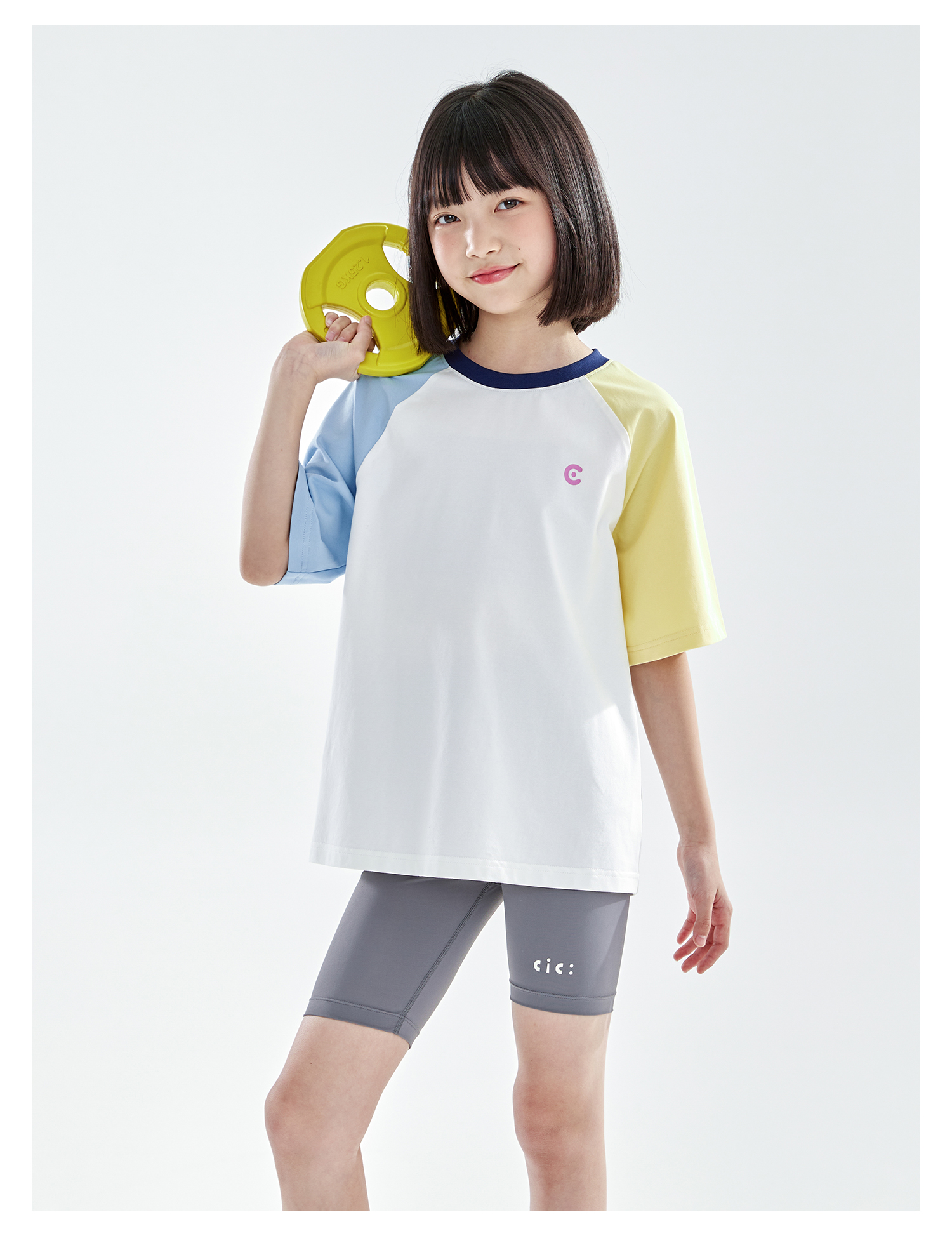 绿拼紫 粉拼绿 蓝拼黄-7A抗菌预售5.1发 粉拼蓝-5A抗菌 紫拼黄绿-5A抗菌预售5.12发 cicochild2025年夏季新款女童插肩拼色运动T恤中大童凉感抗菌短袖
