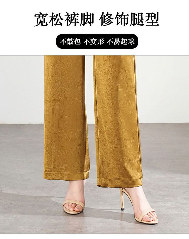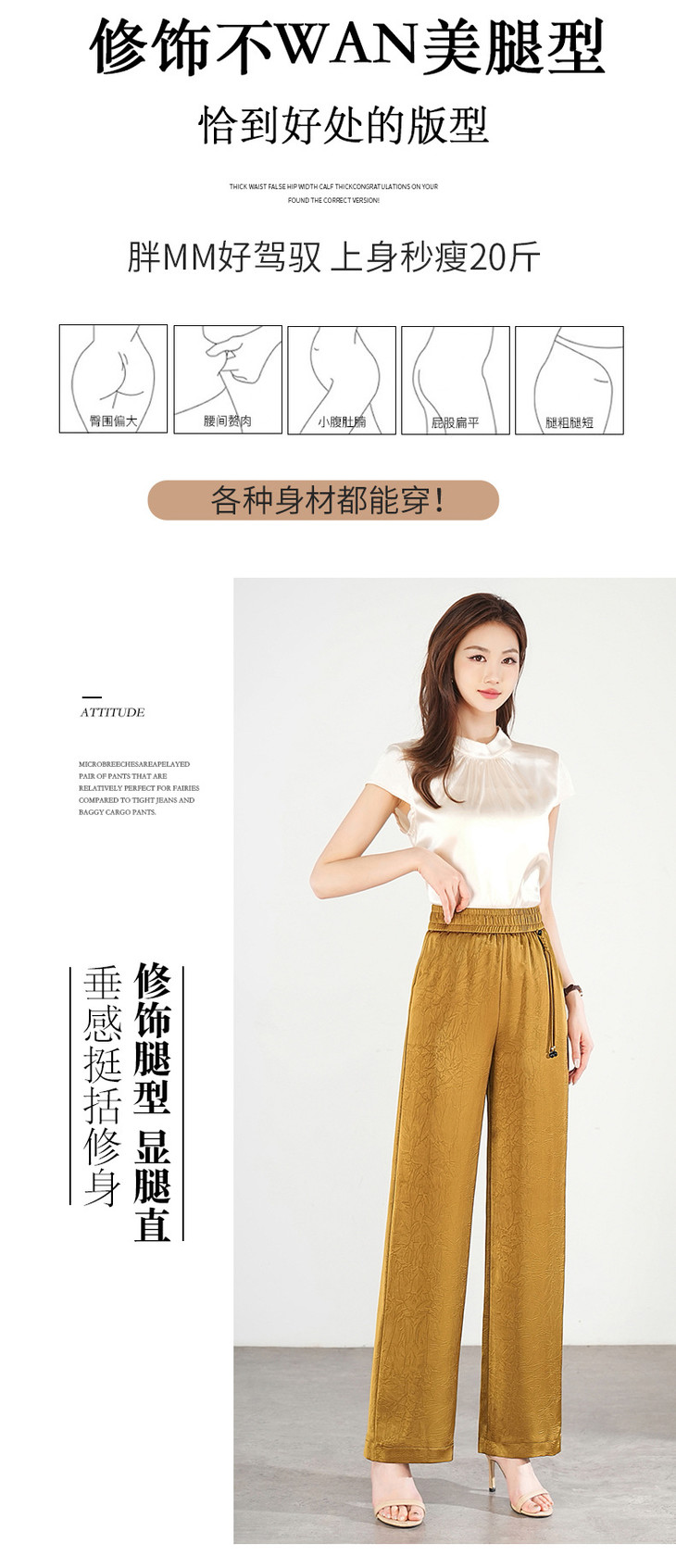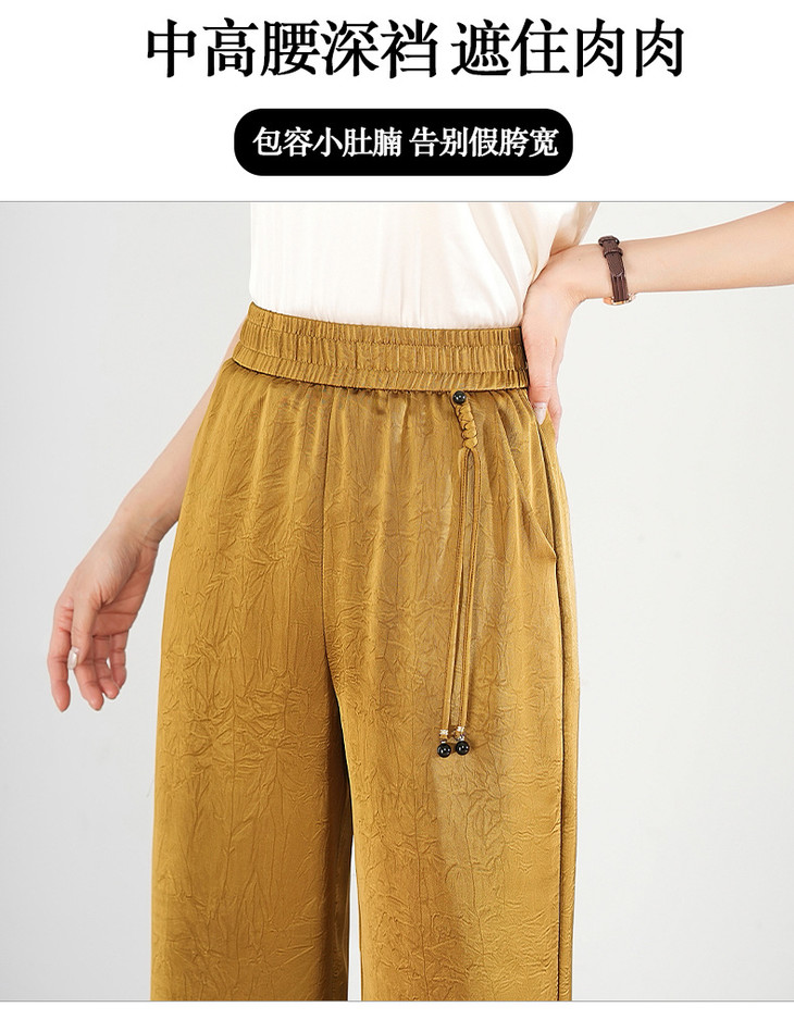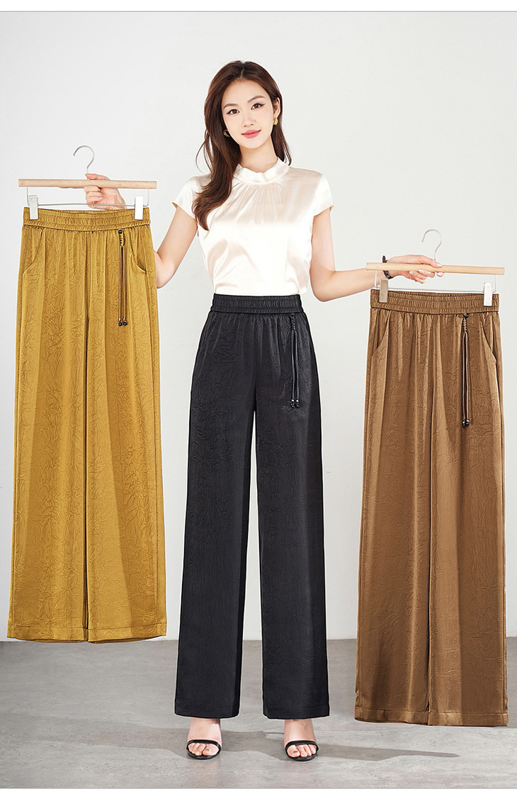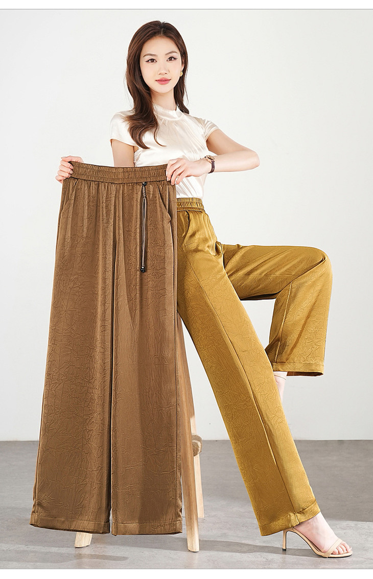 褶皱压花阔腿裤,夏款松紧高腰直筒裤MYX-9225
