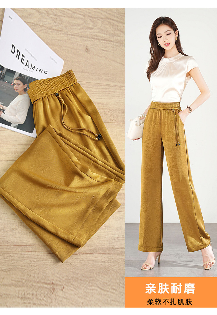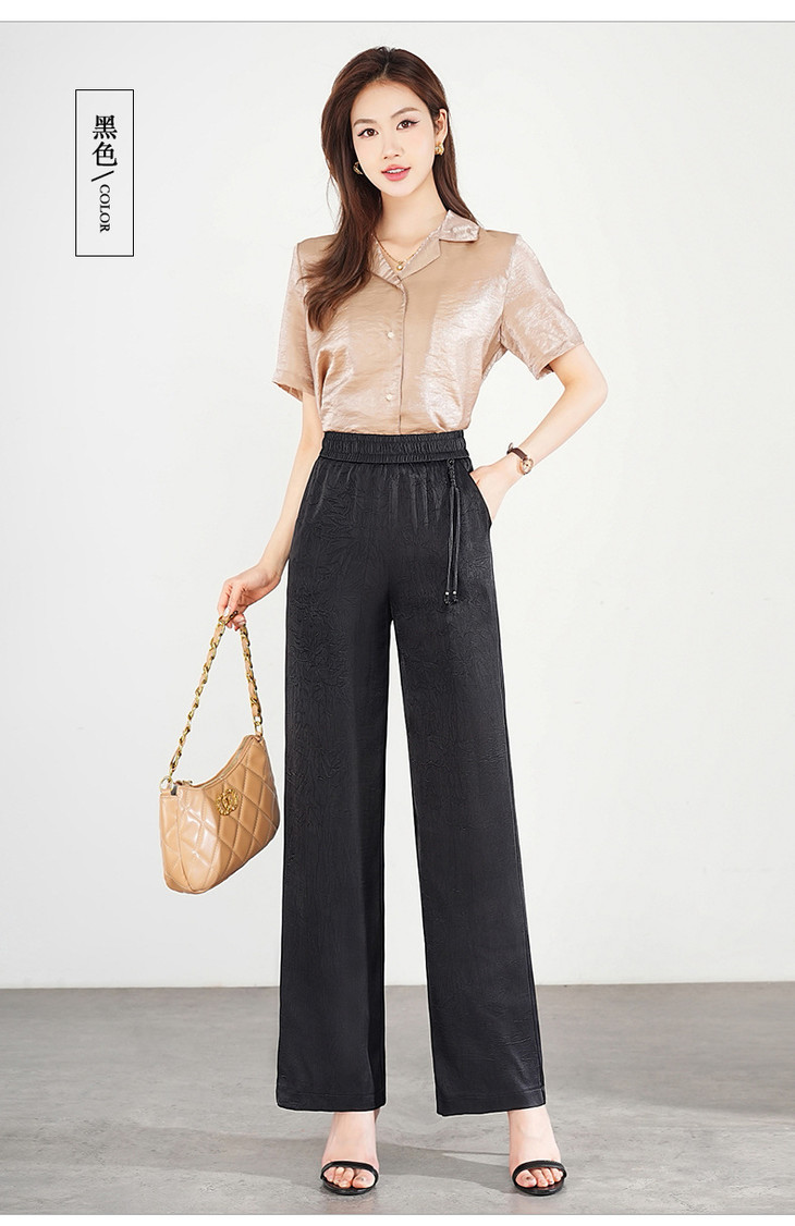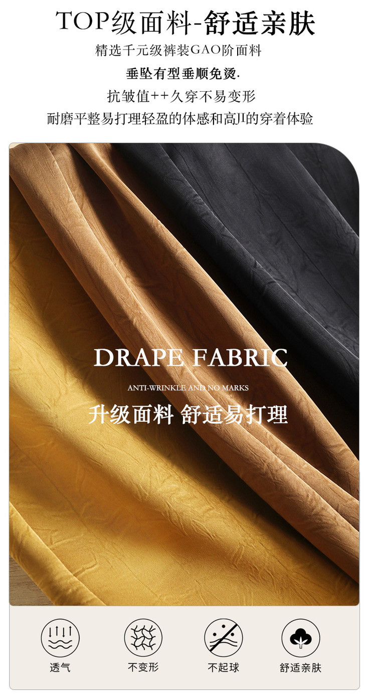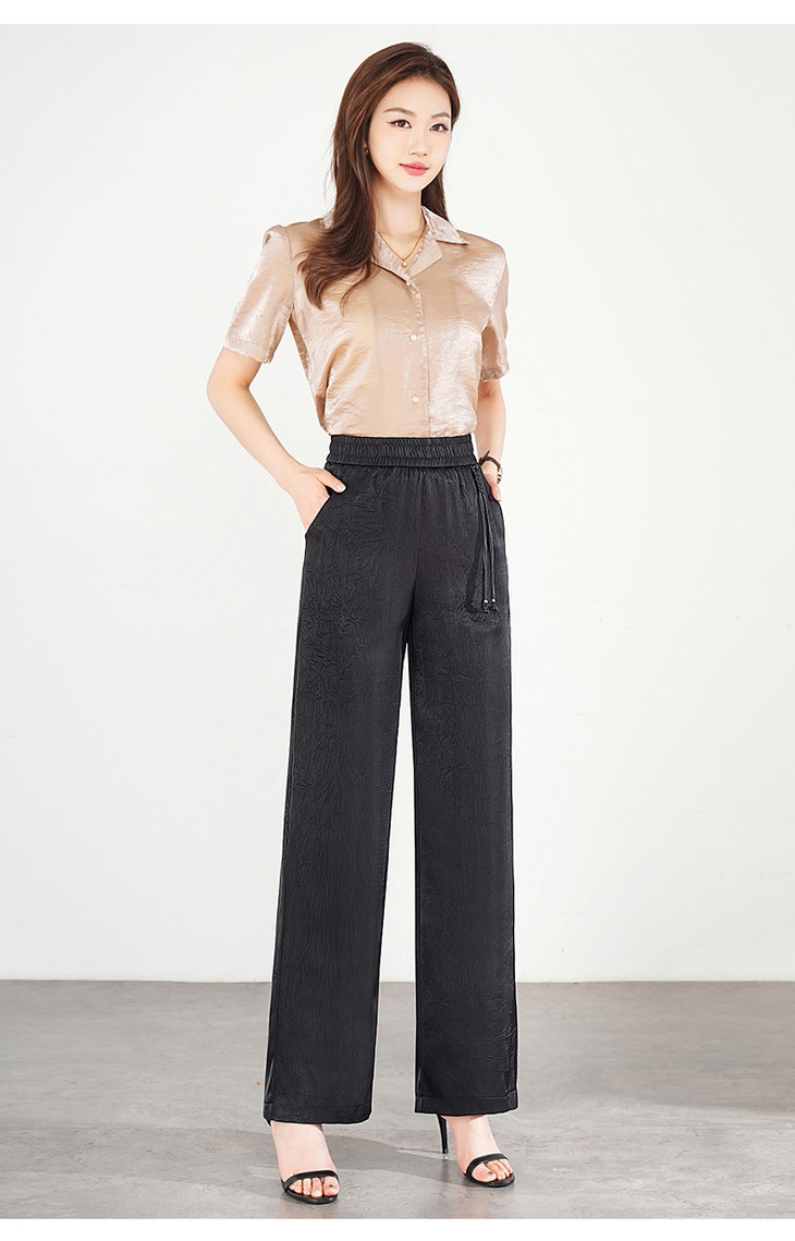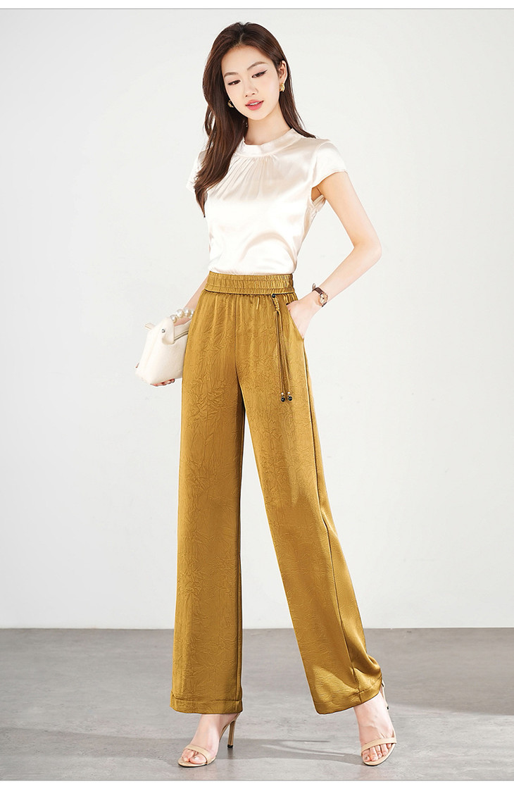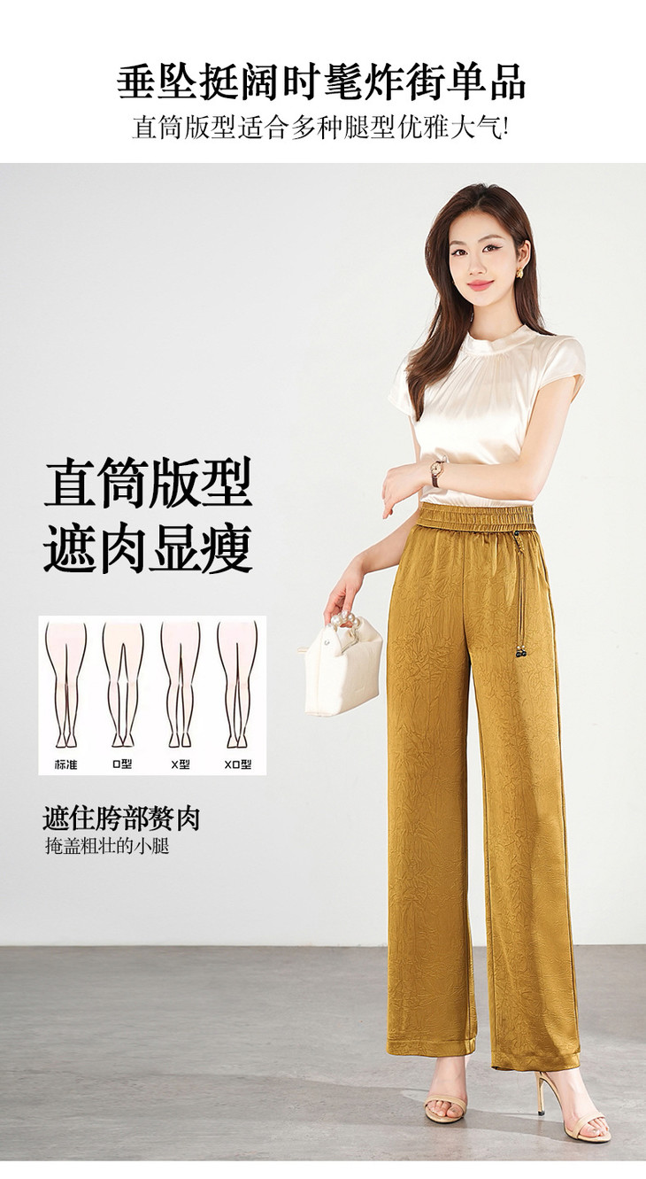 褶皱压花阔腿裤,夏款松紧高腰直筒裤MYX-9225