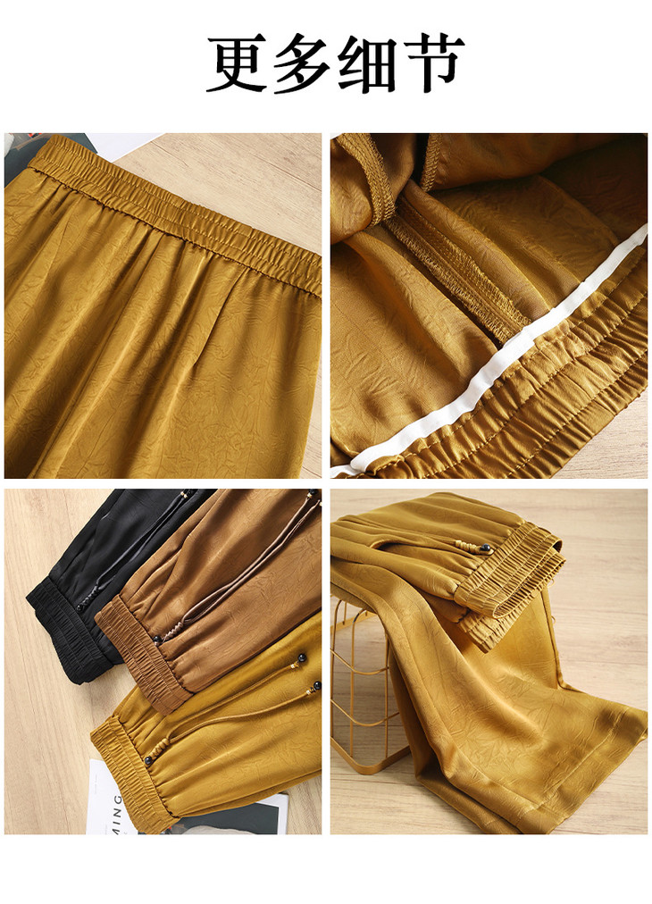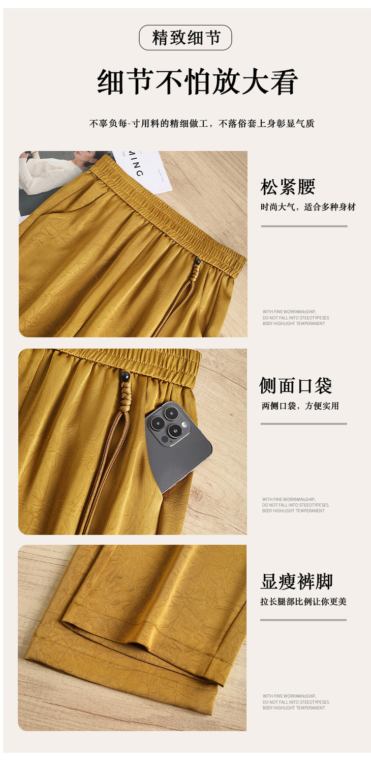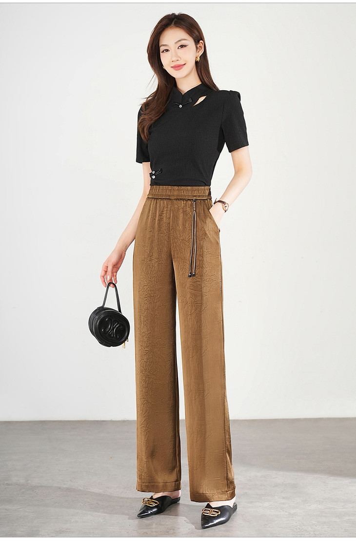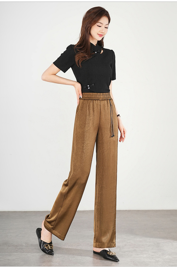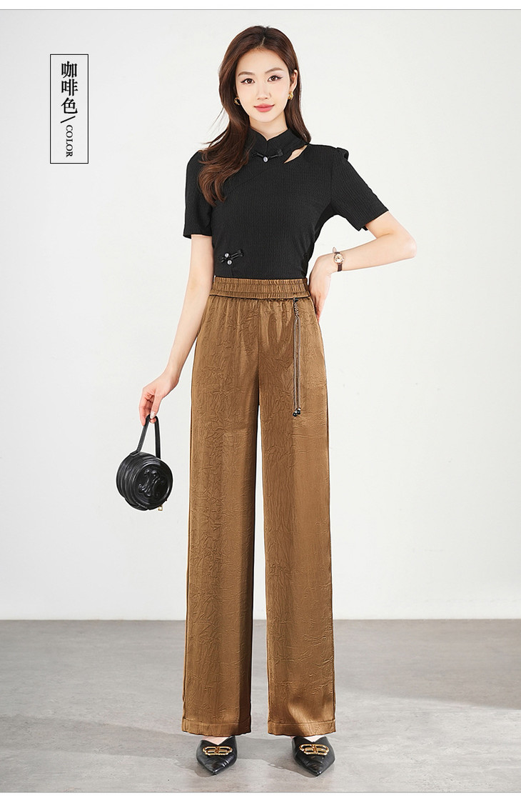 褶皱压花阔腿裤,夏款松紧高腰直筒裤MYX-9225