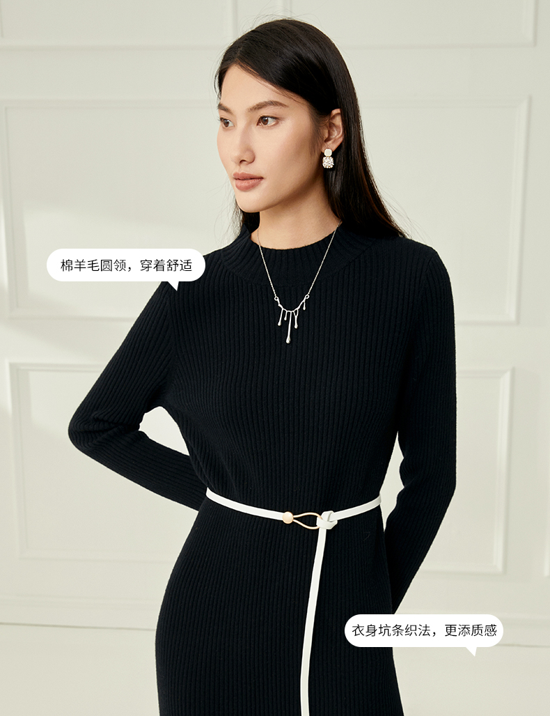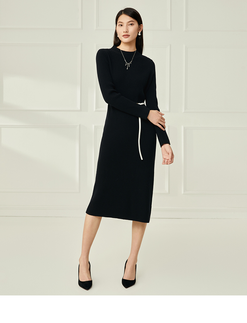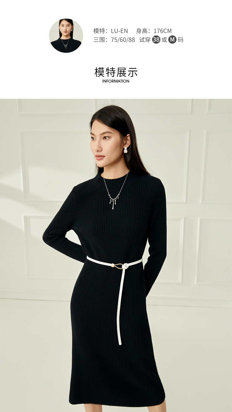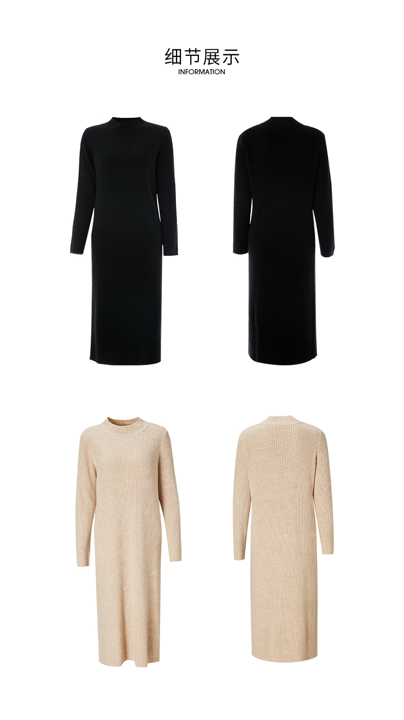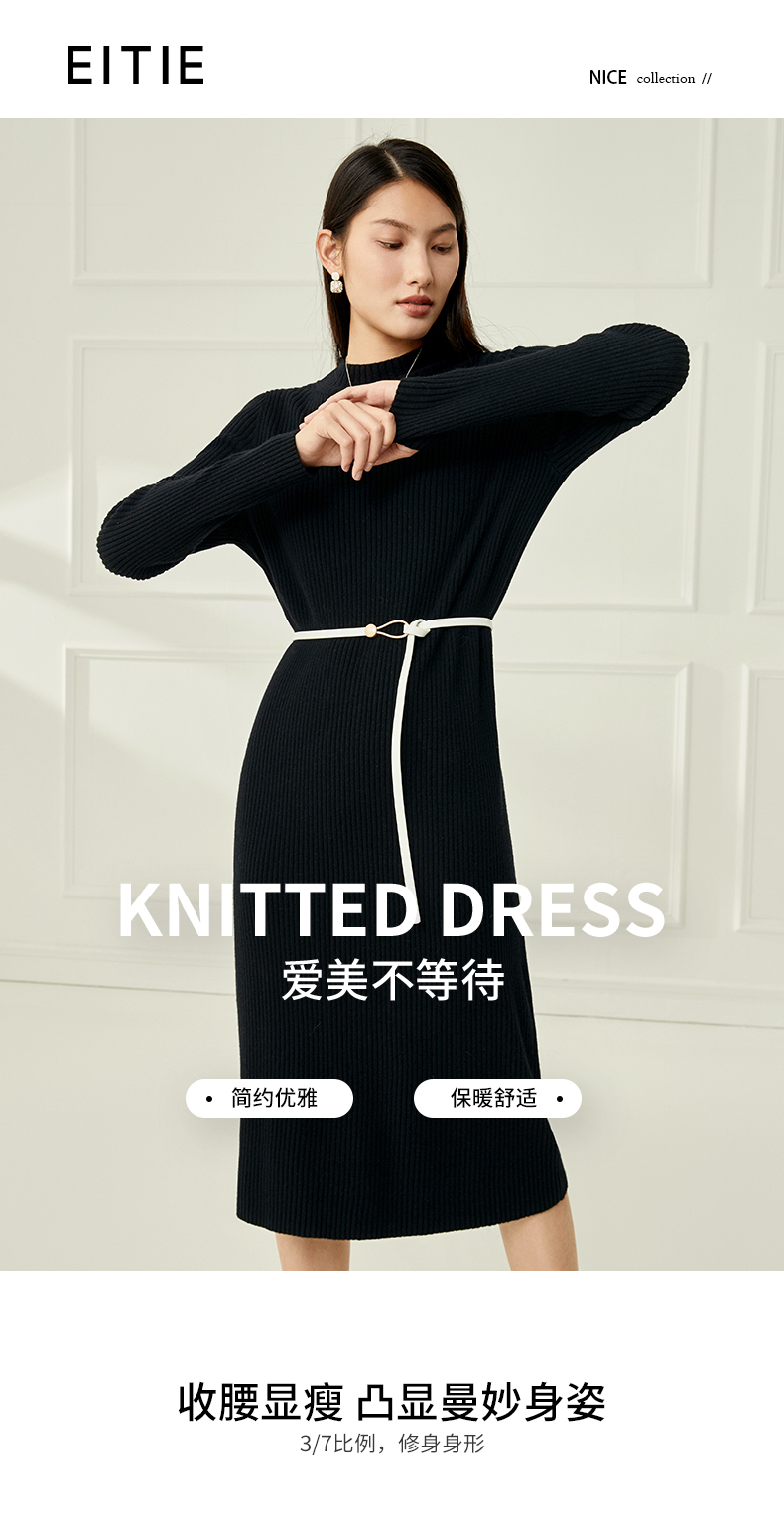 EITIE爱特爱冬季新款半高领针织显瘦修身连衣裙长裙6801519