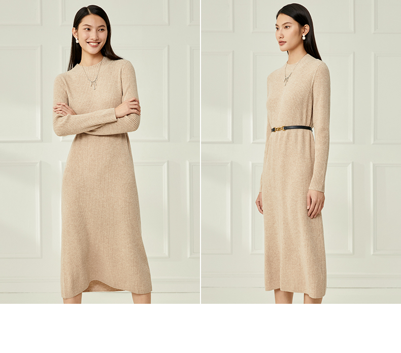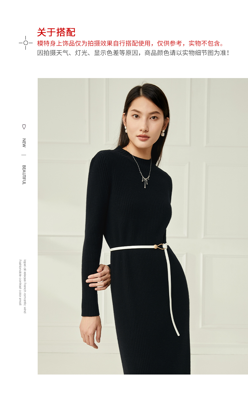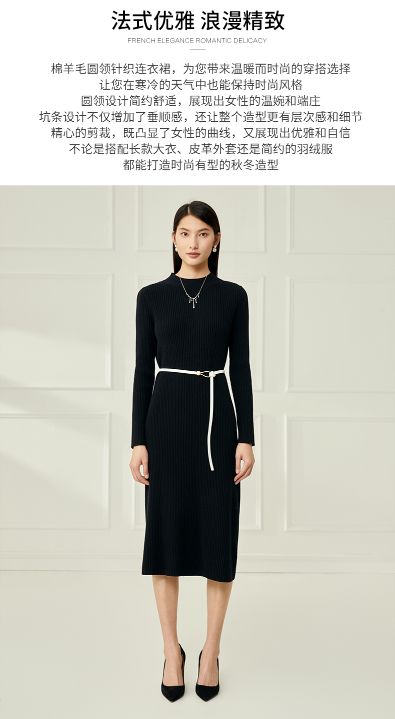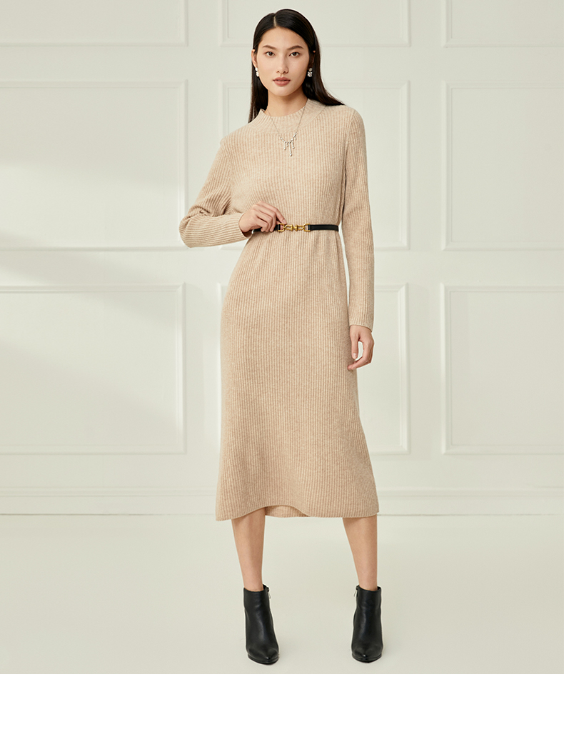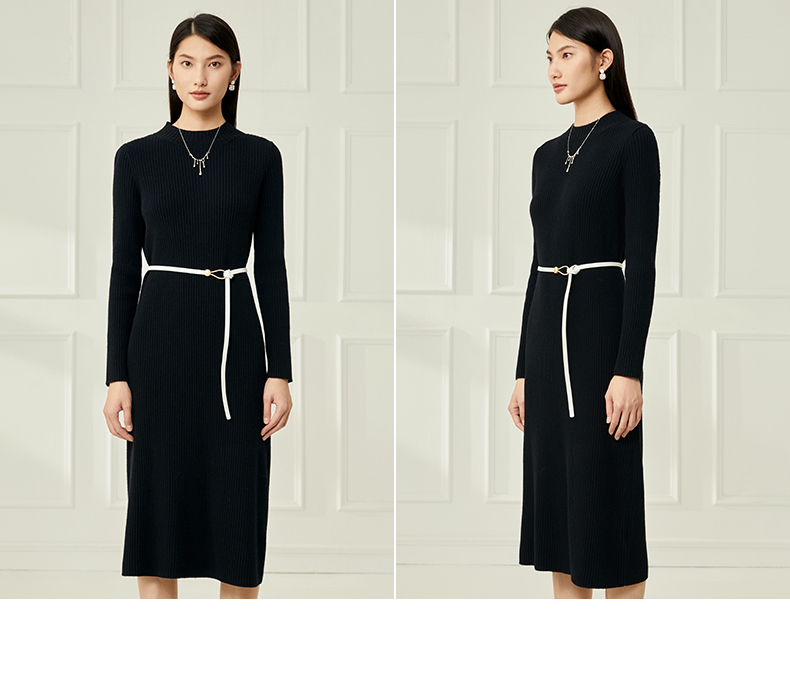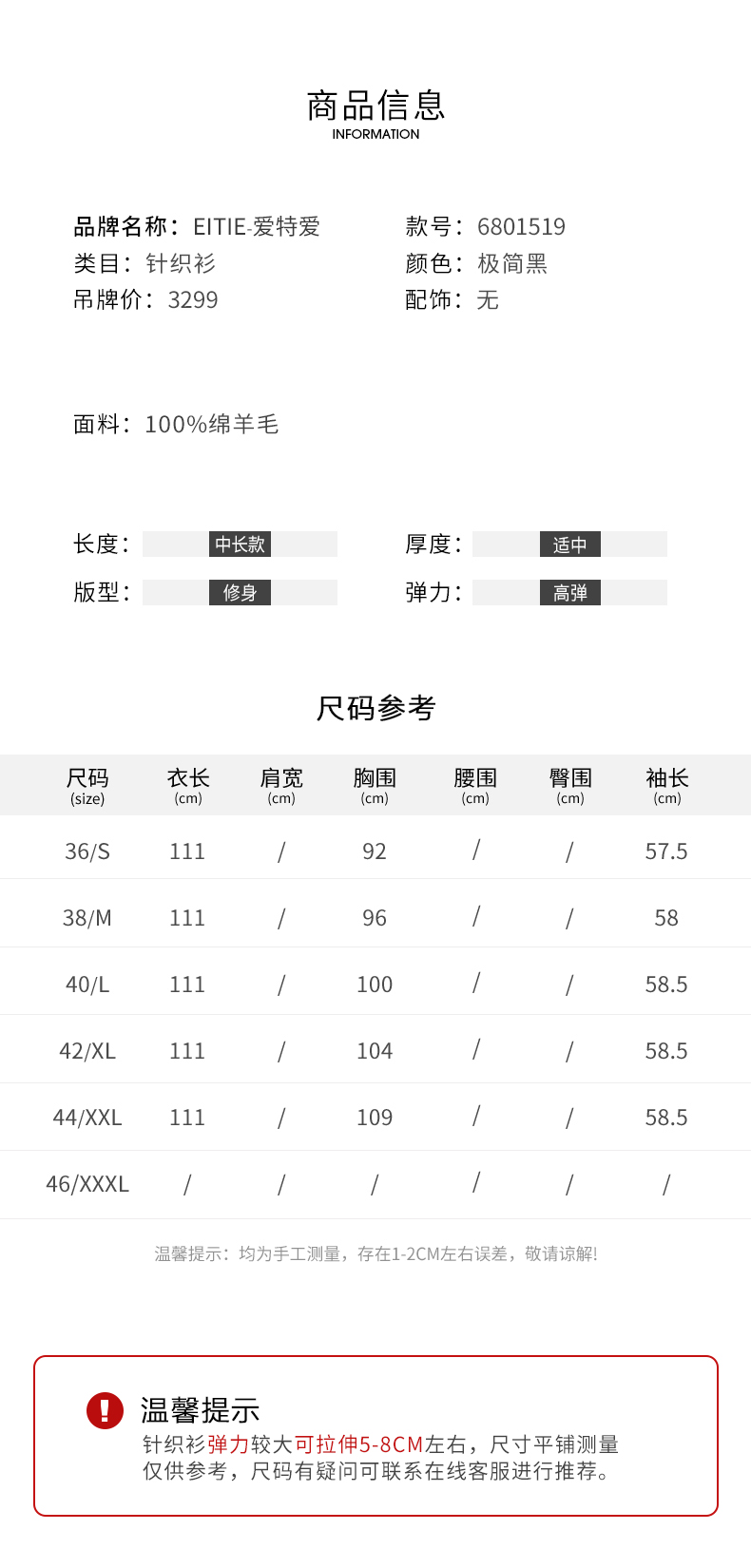 EITIE爱特爱冬季新款半高领针织显瘦修身连衣裙长裙6801519