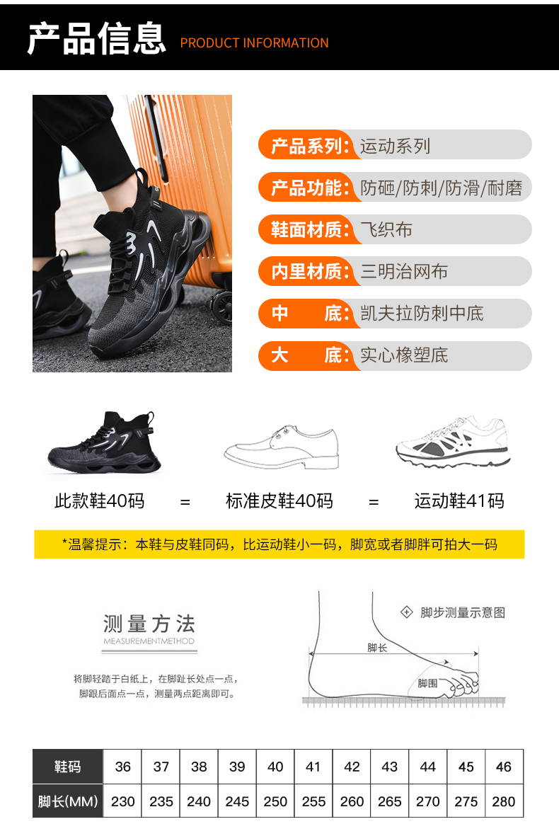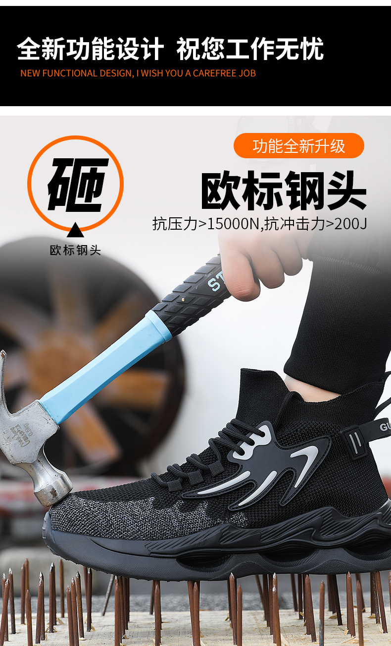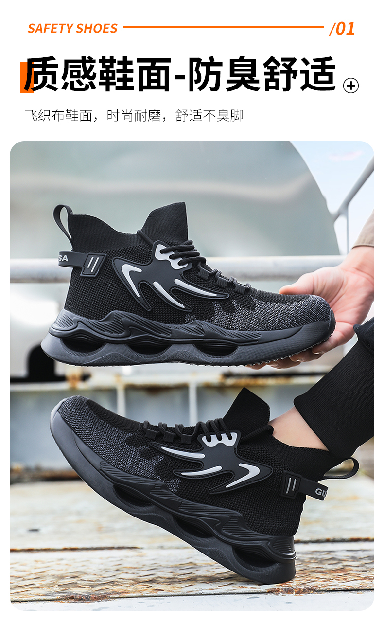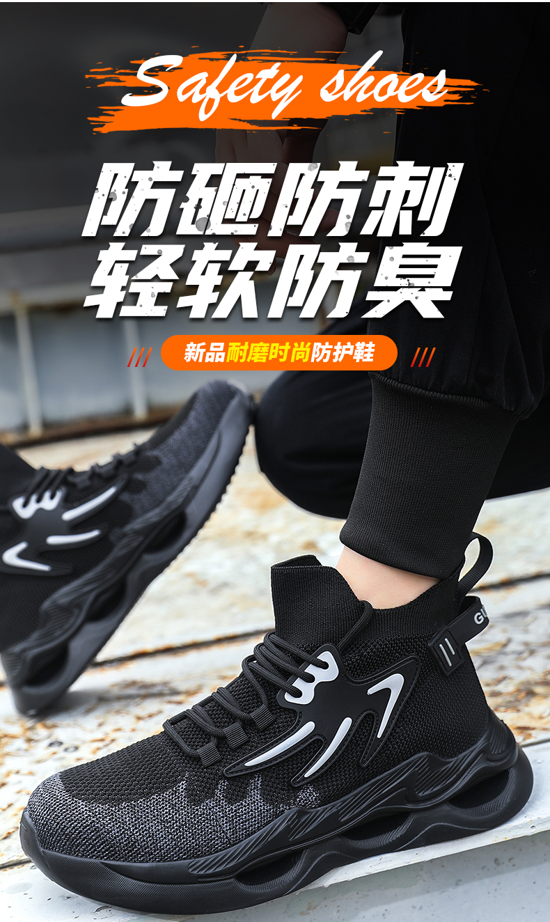 新品四季款高帮透气轻便劳保鞋男防砸防刺网布工地安全鞋