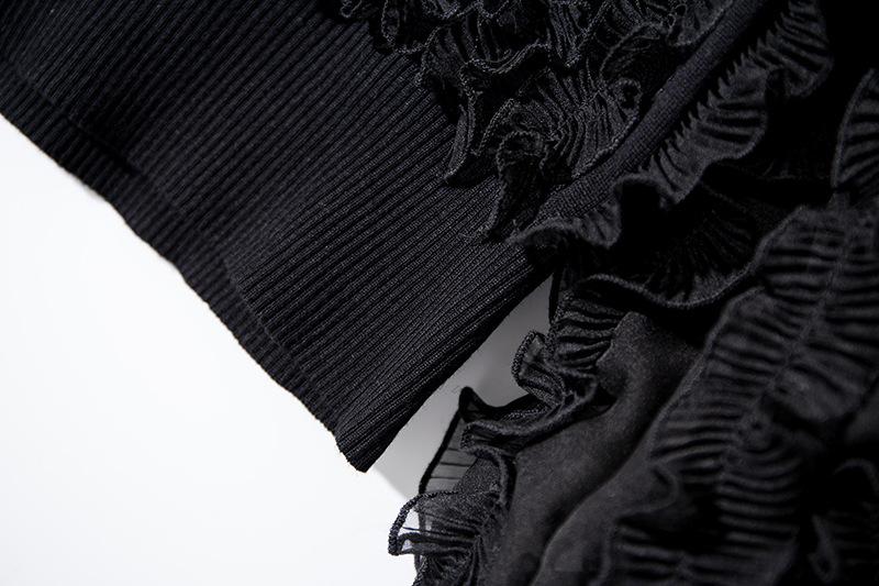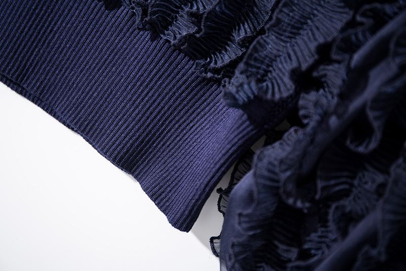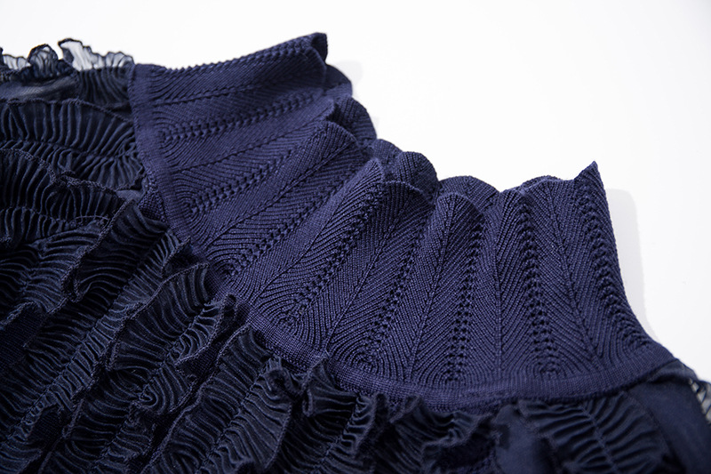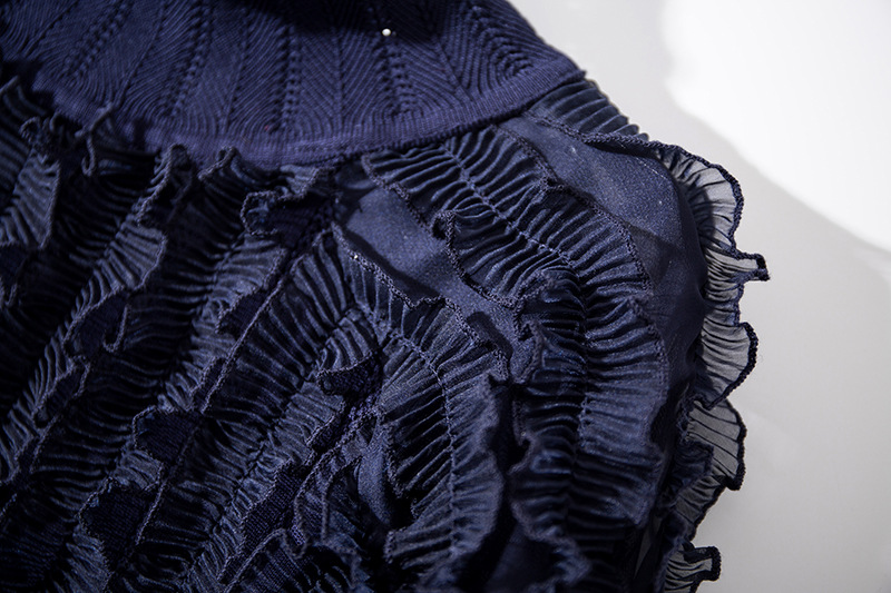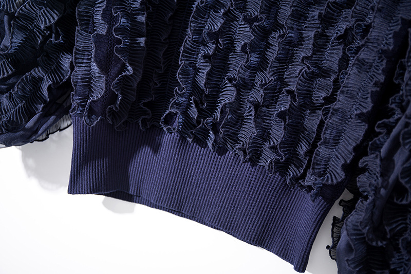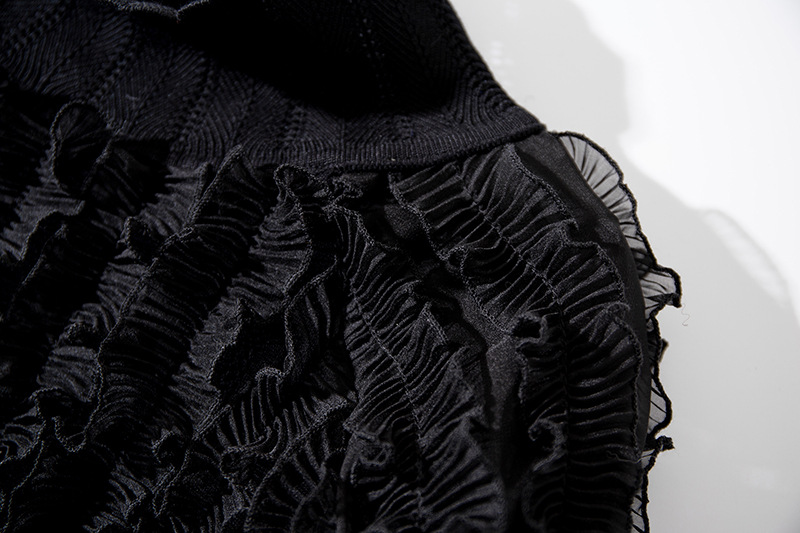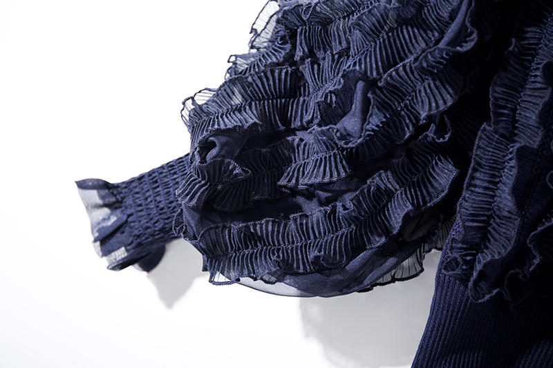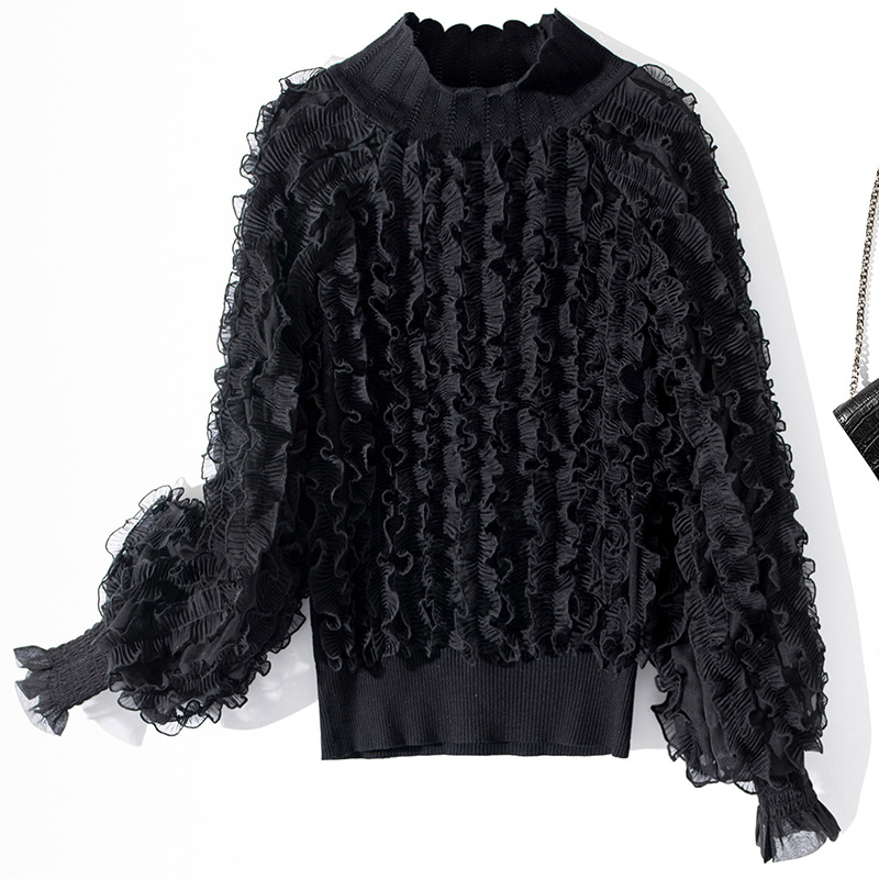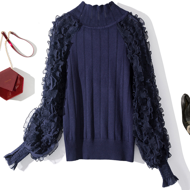 YLYM-M6283女装新款半高领褶皱木耳边灯笼袖显瘦气质针织衫
