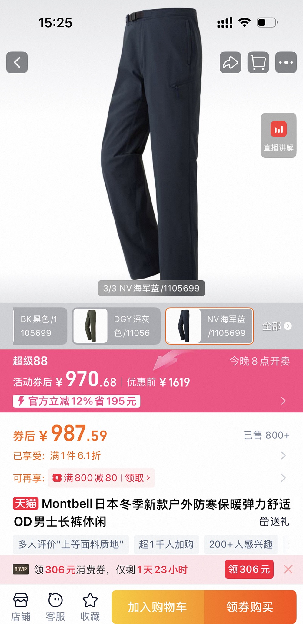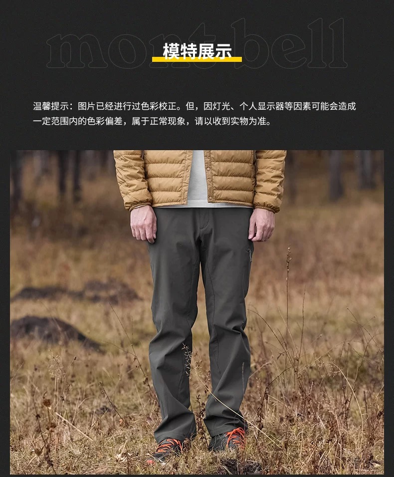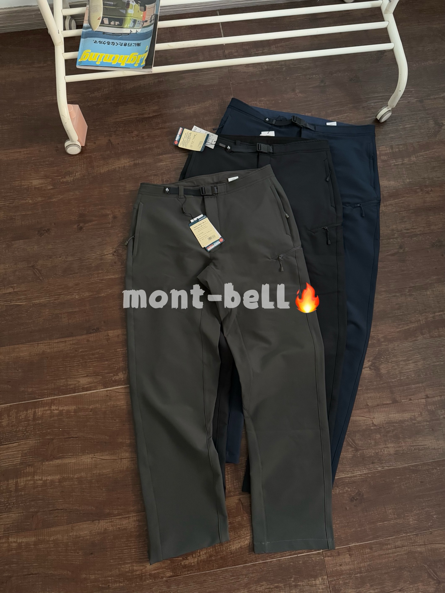 Montbell日本2025年冬季新款户外防寒保暖弹力舒适OD男士加绒户外软壳裤长裤