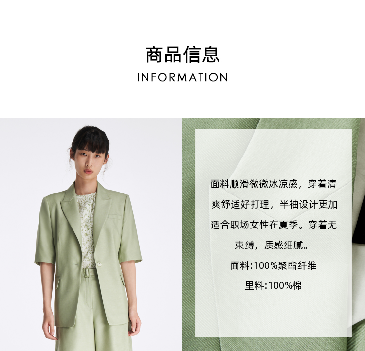 【抗皱纤维】Laurel劳芮 静谧淡绿短袖西装 LWL342T03500