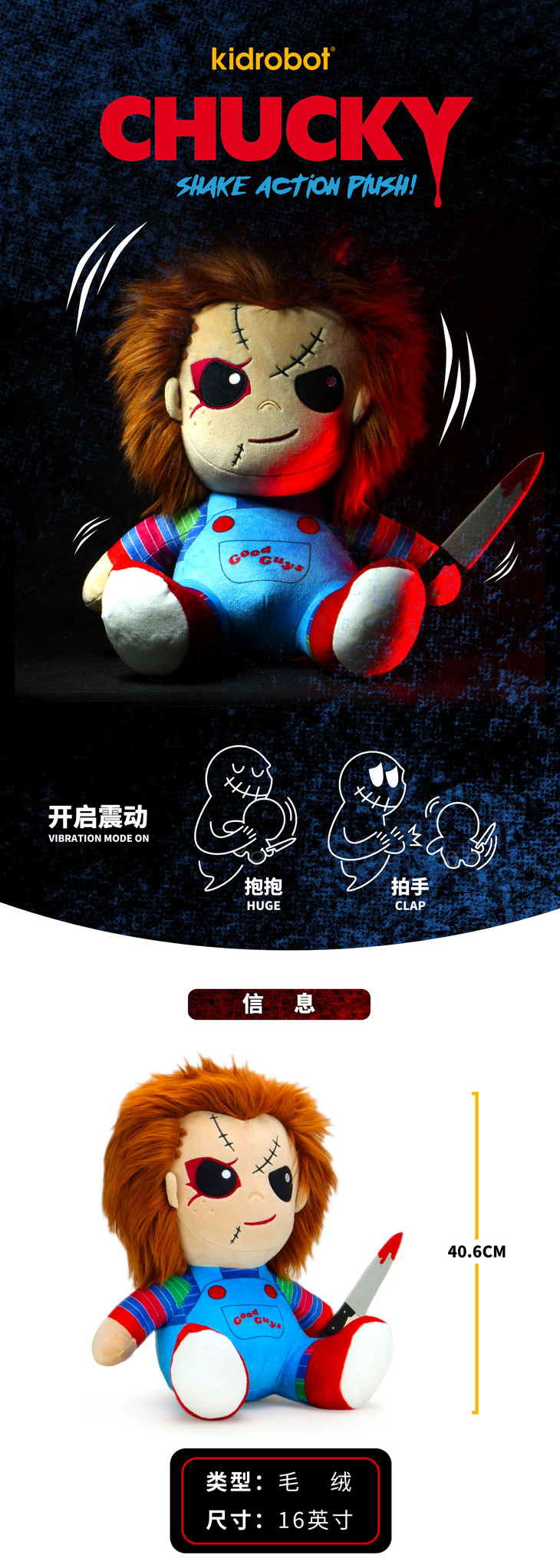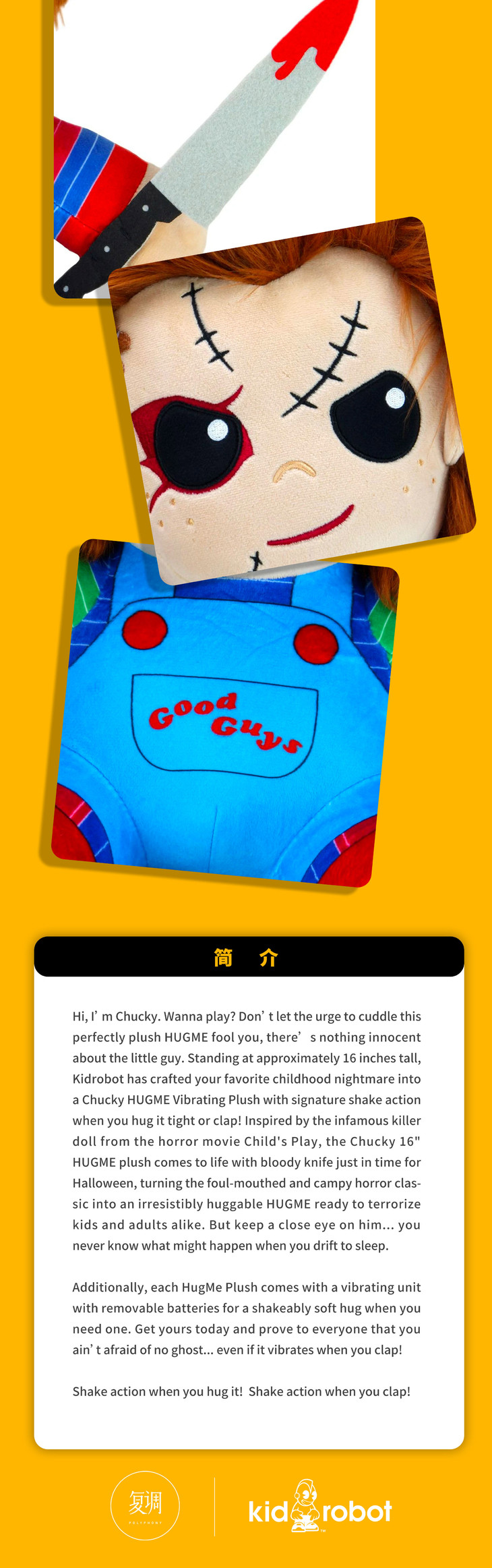 Kidrobot 鬼娃回魂 恰奇 Chucky 抱枕 毛绒 玩具 摆件