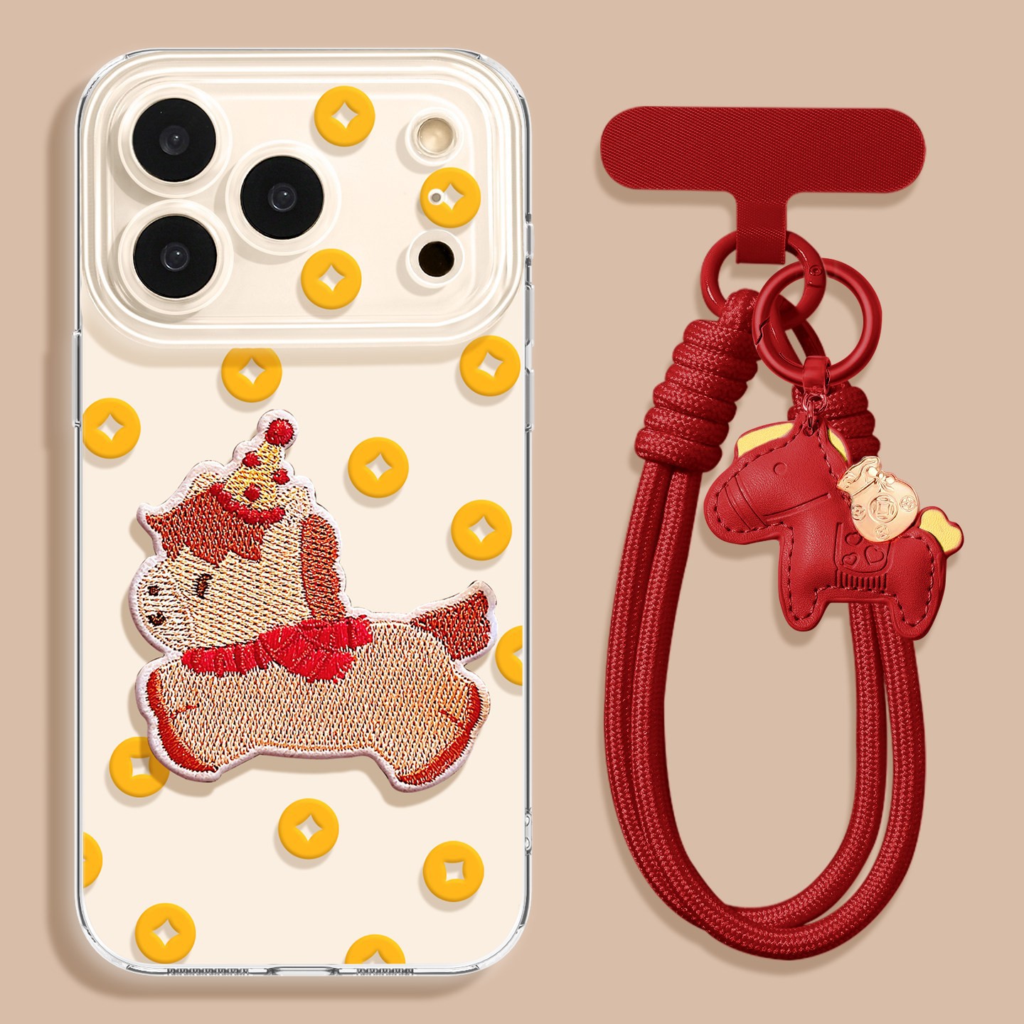 【手感舒适❗️耐脏防摔】铜钱刺绣小马挂绳适用VIVOIQ0015手机壳 X300PRO高颜值Y500少女14。jc