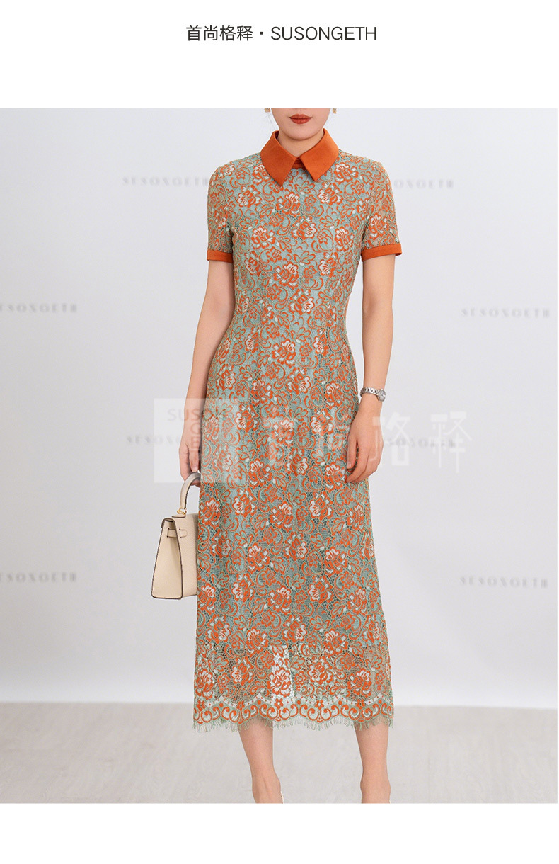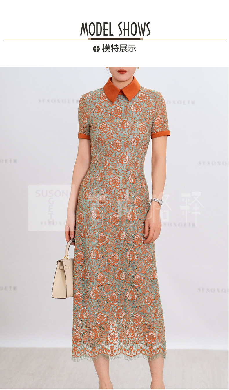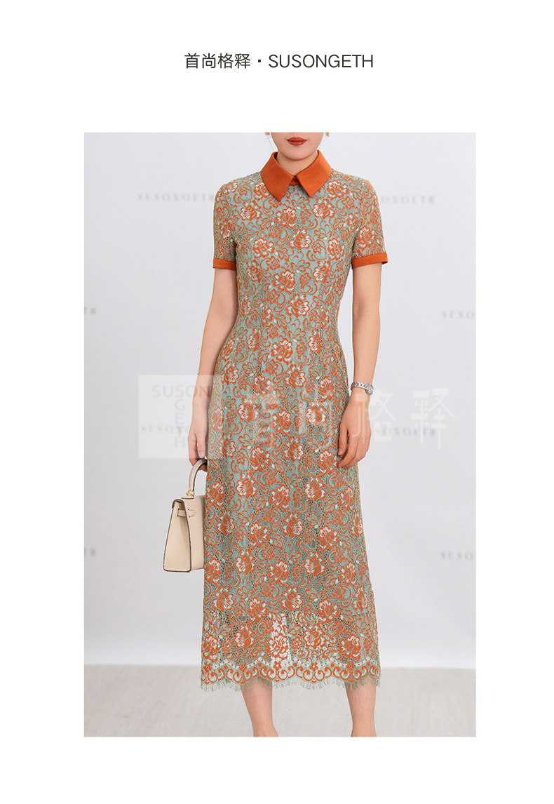 N252夏季蕾丝连衣裙女2025新款时尚减龄拼接醋酸短袖修身裙子